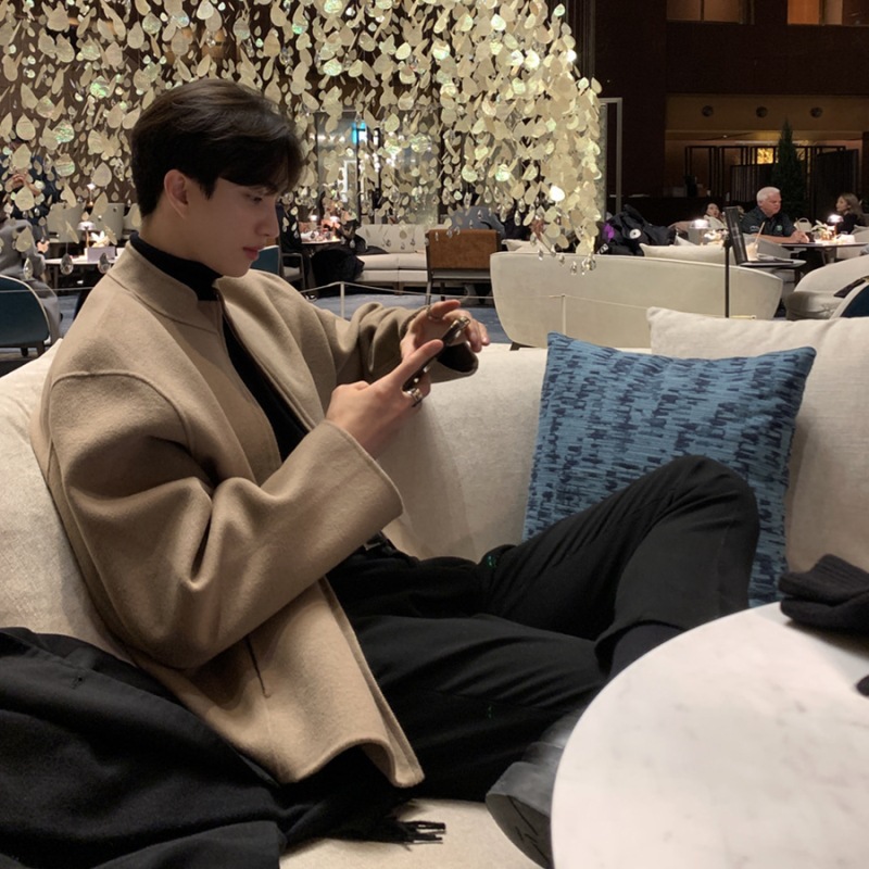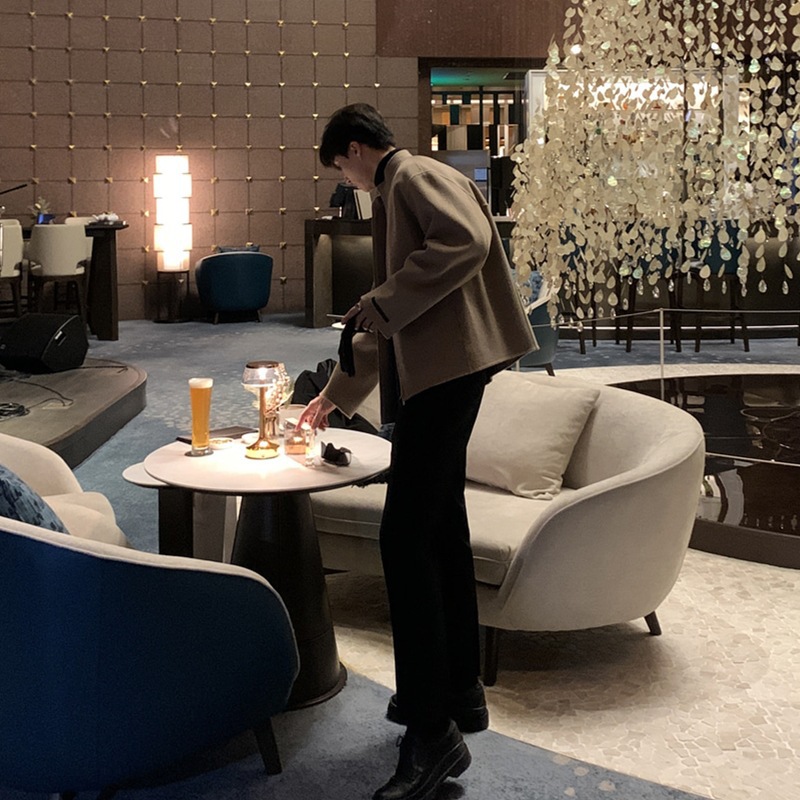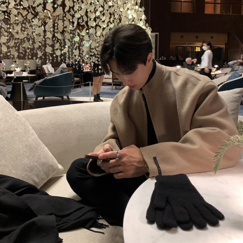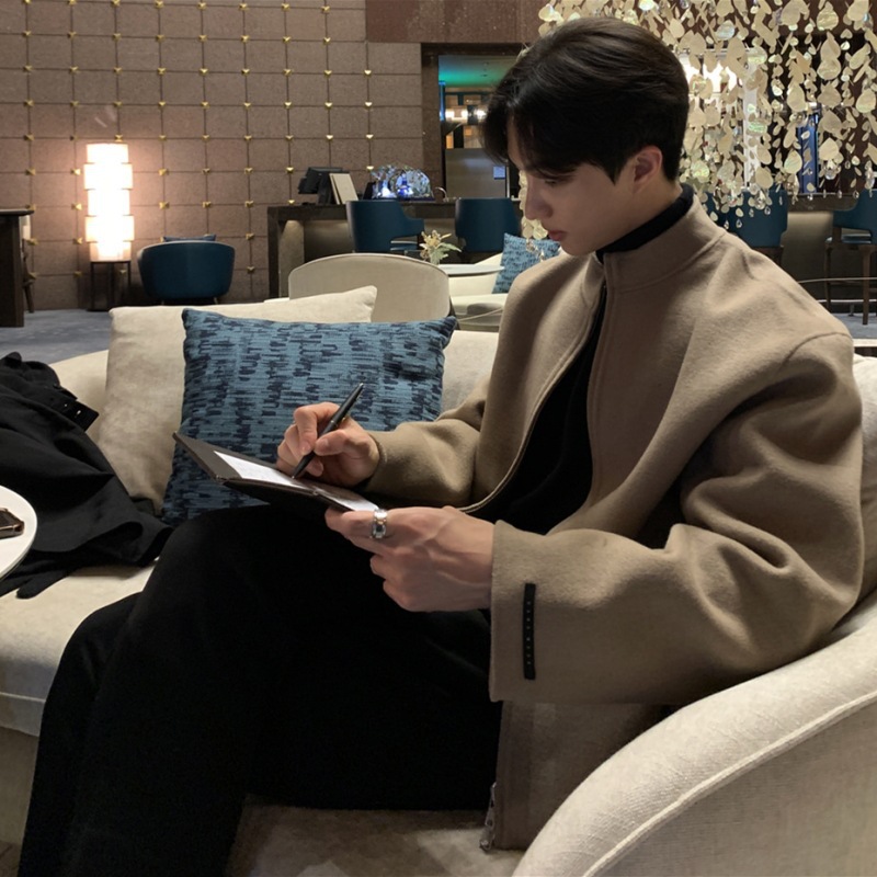 모직 코트 남성 봄 패션 브랜드 한국 스타일 스탠드 칼라 파일럿 재킷 트렌디 한 단색 루안 잘 생긴 탑스토어 가기
