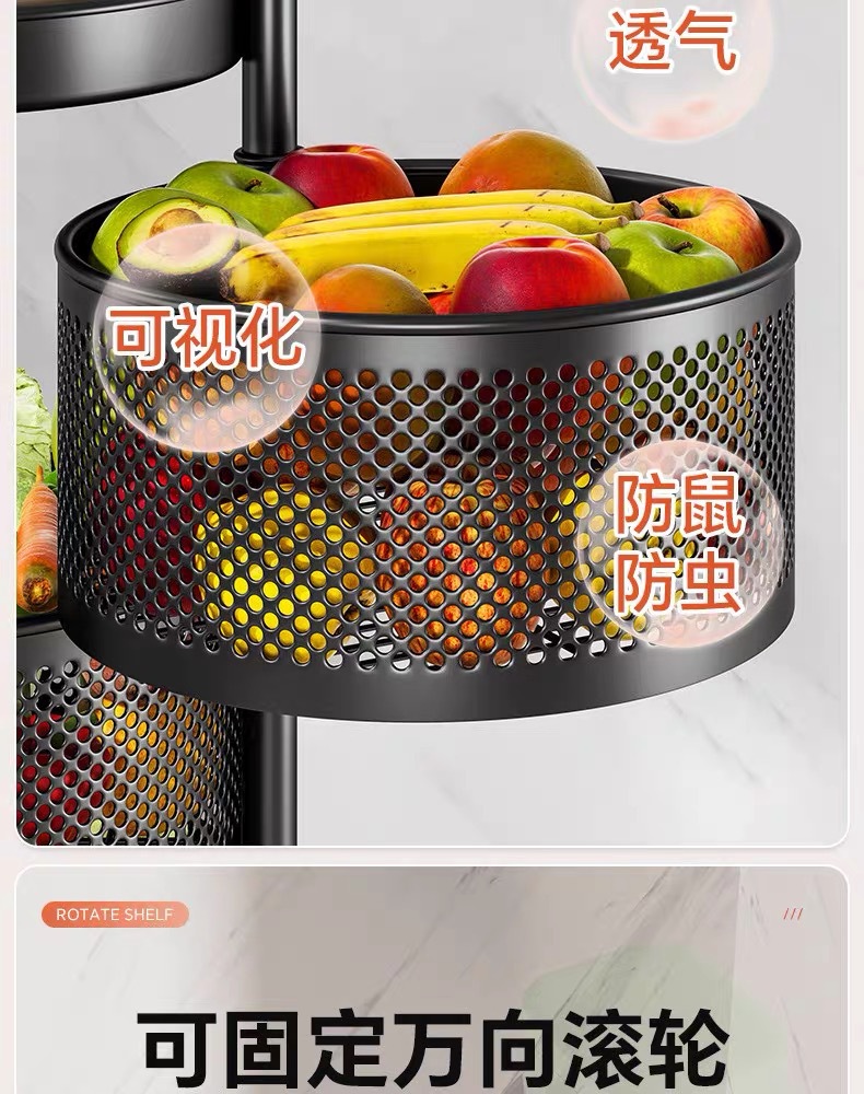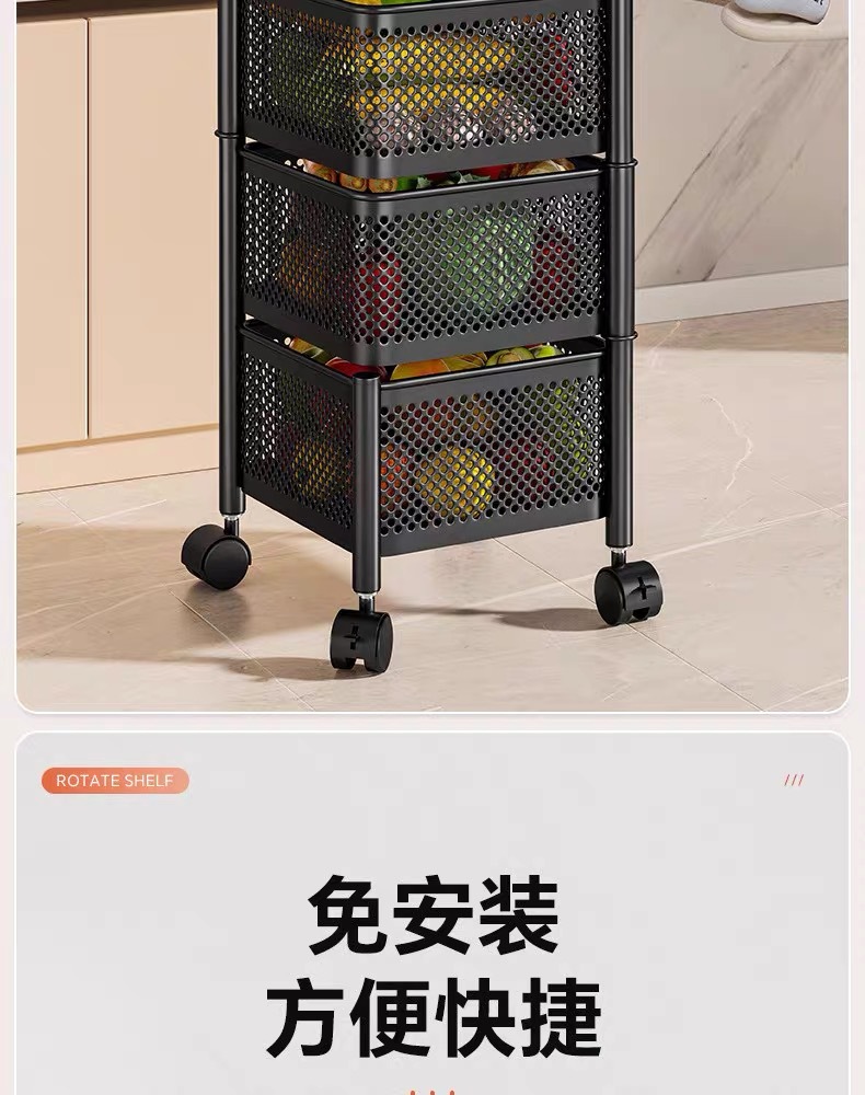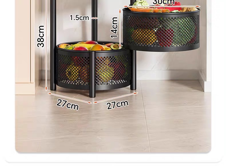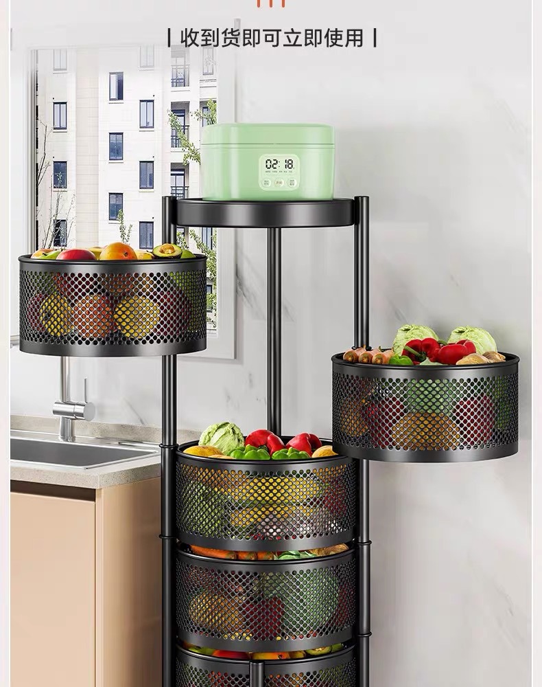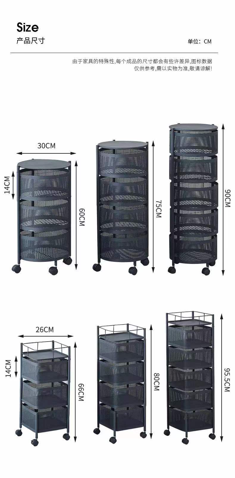 회전 저장 랙 주방 야채 바닥 다층 물 및 야채 바구니 가정용 다기능 모바일 스토리지 랙