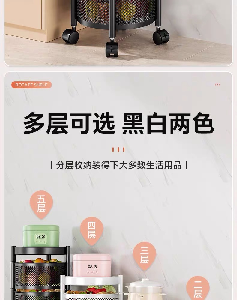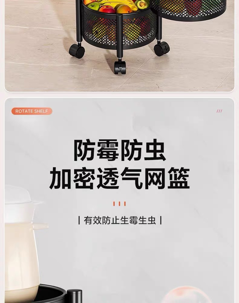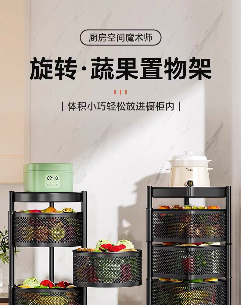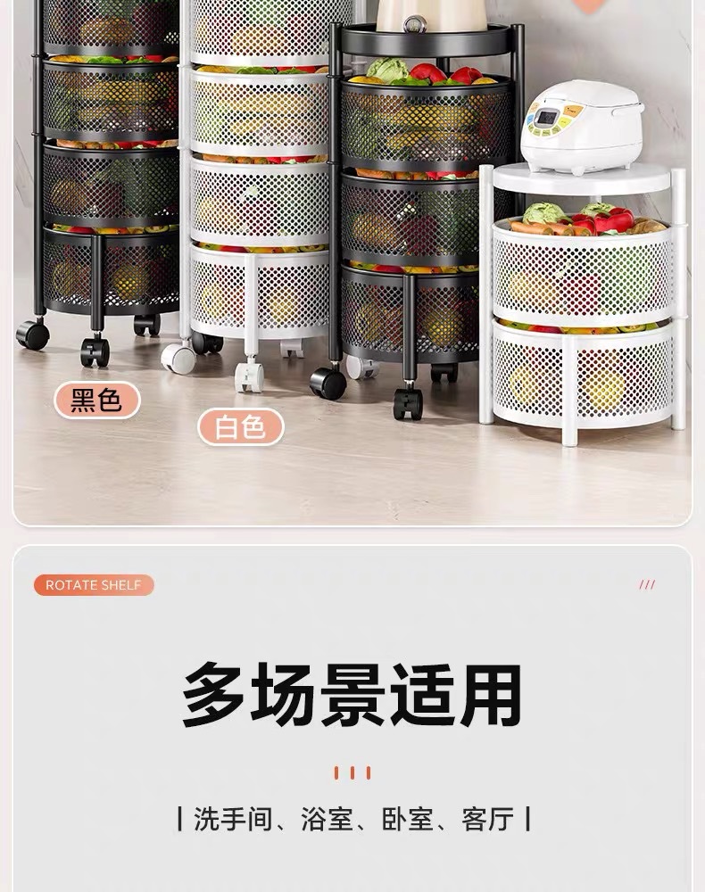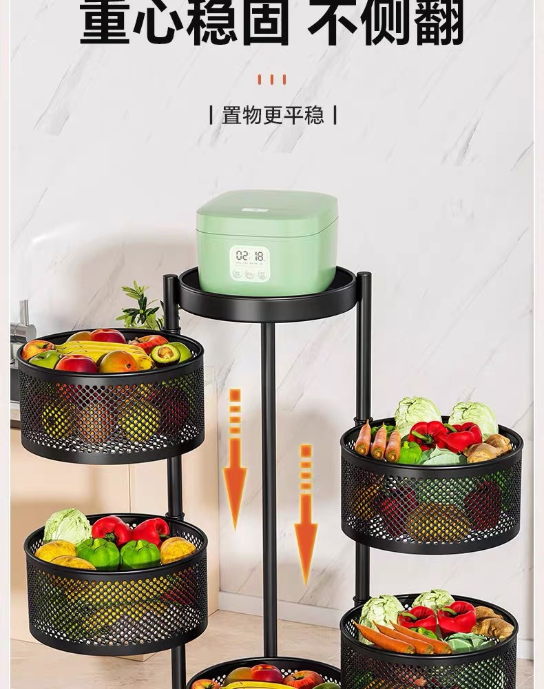 회전 저장 랙 주방 야채 바닥 다층 물 및 야채 바구니 가정용 다기능 모바일 스토리지 랙