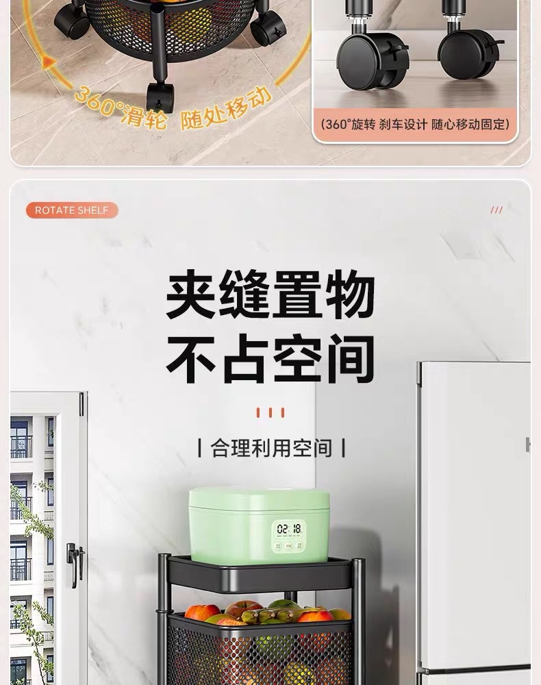 회전 저장 랙 주방 야채 바닥 다층 물 및 야채 바구니 가정용 다기능 모바일 스토리지 랙스토어 가기