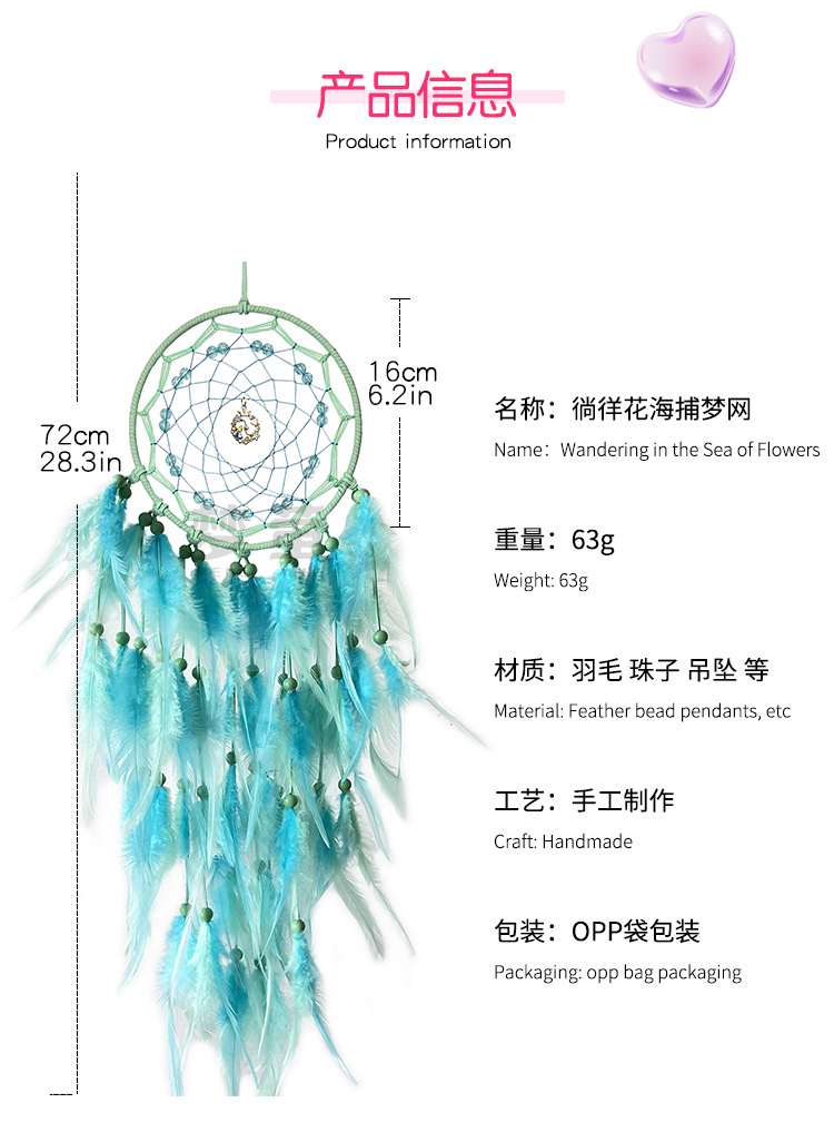 『몽잉 오리지널/해외 인기상품』 컬러풀 깃털 드림캐쳐 거실 침실 장식 풍경종 창의적인 선물스토어 가기