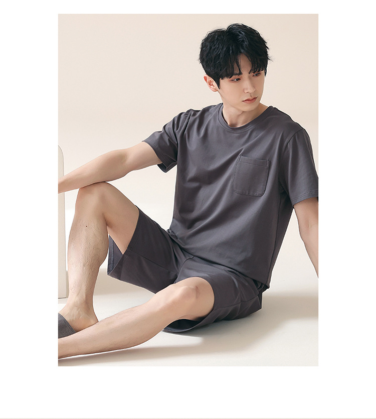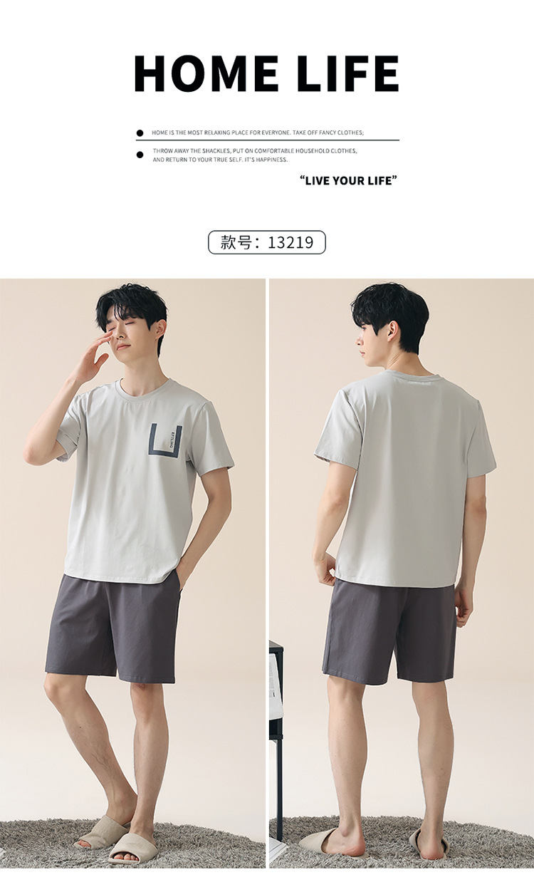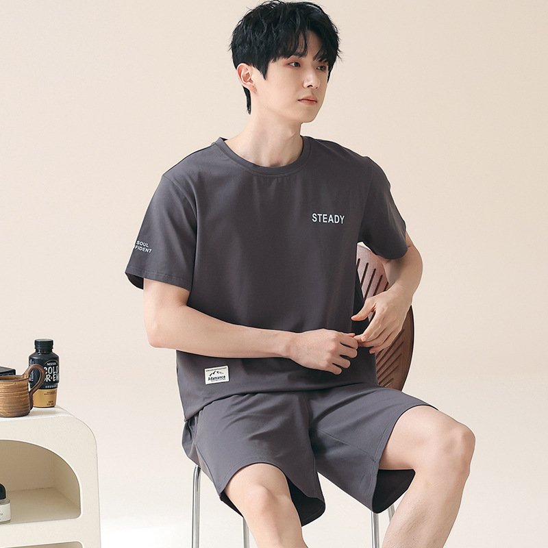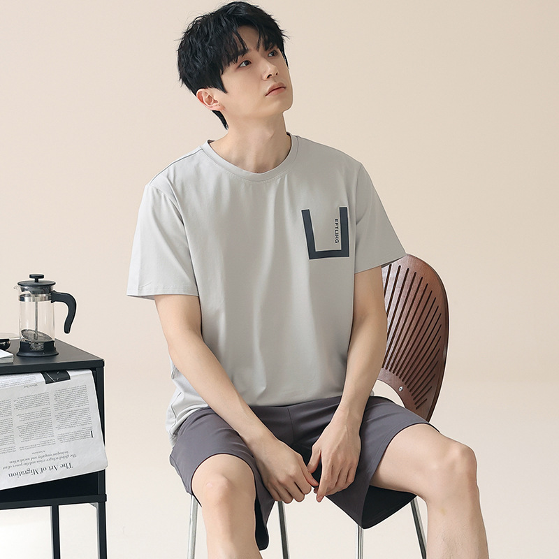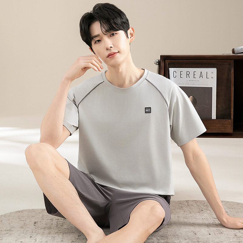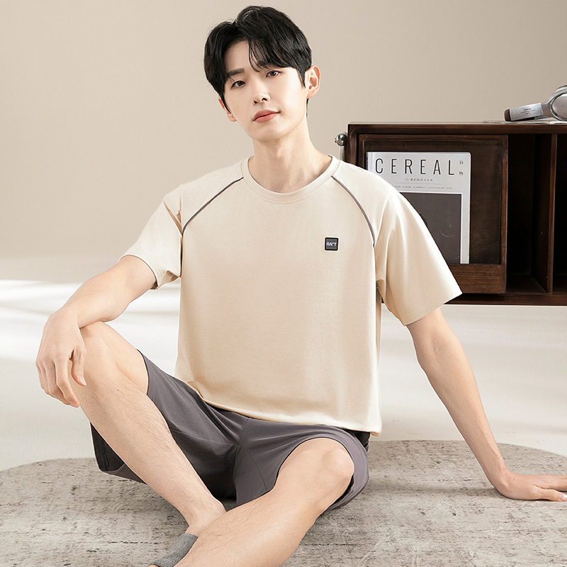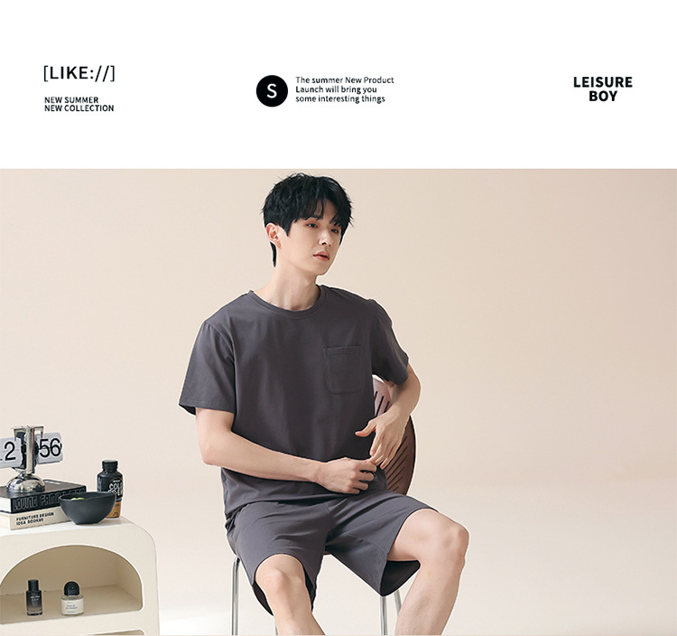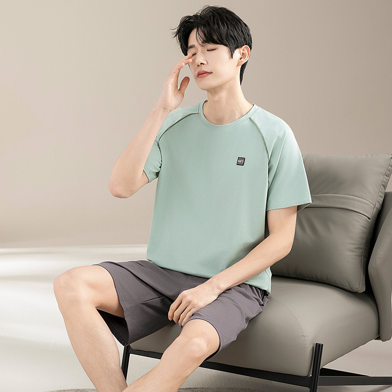 시원한 모달 파자마 남성 여름 반팔 심플 청년은 느슨한 국경 간 가정복 세트 밖에서 입을 수 있습니다.스토어 가기