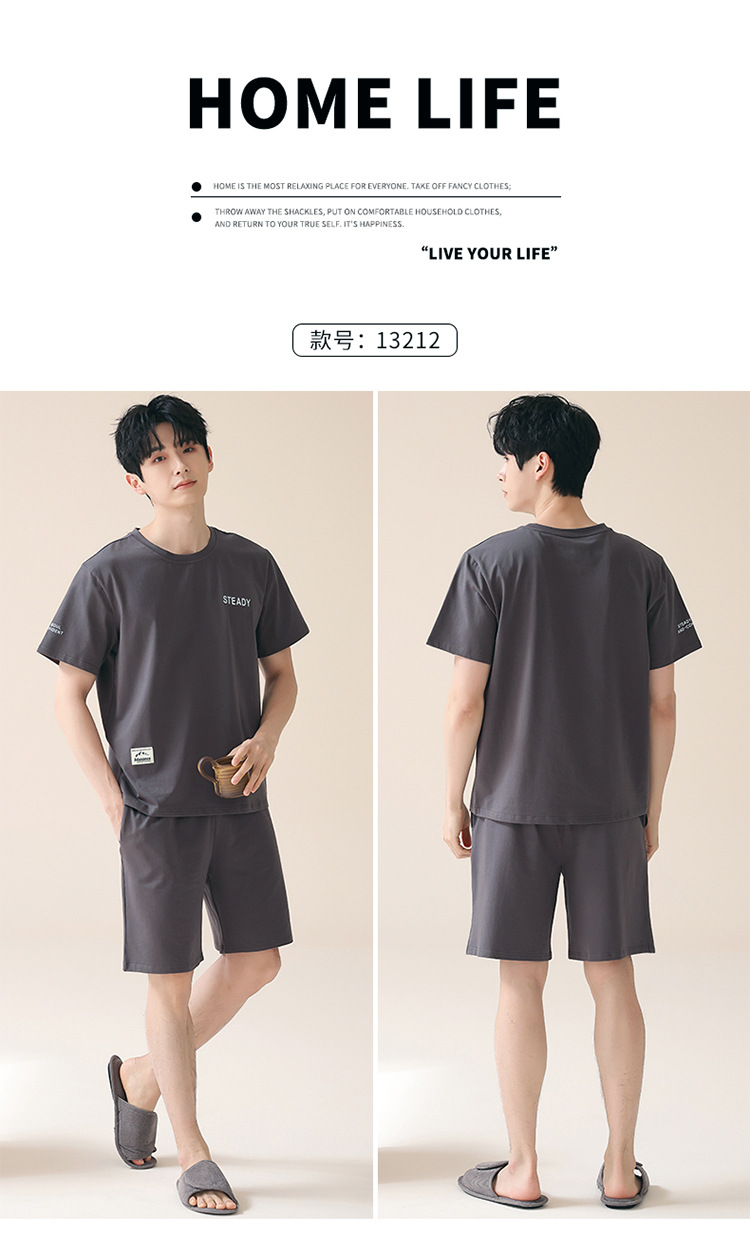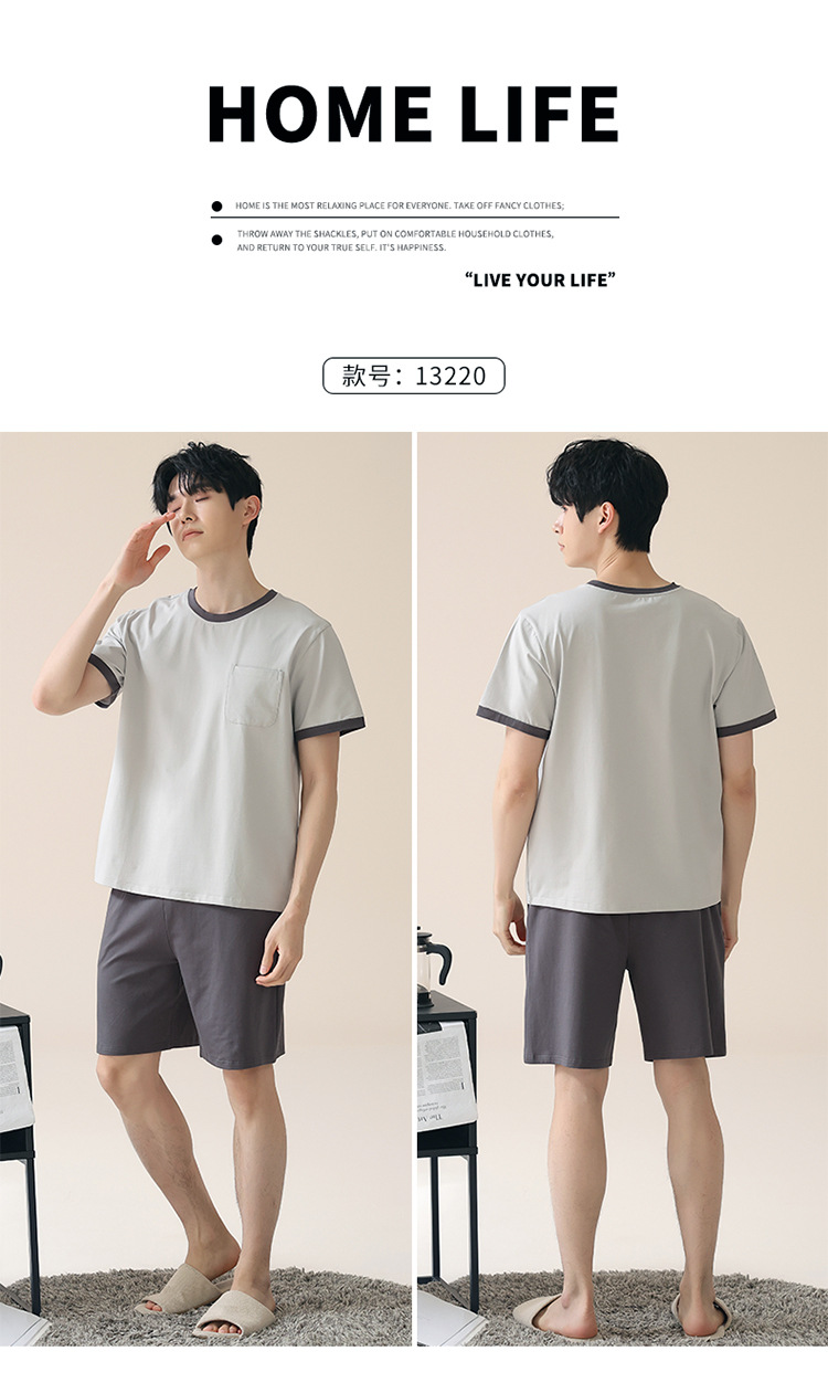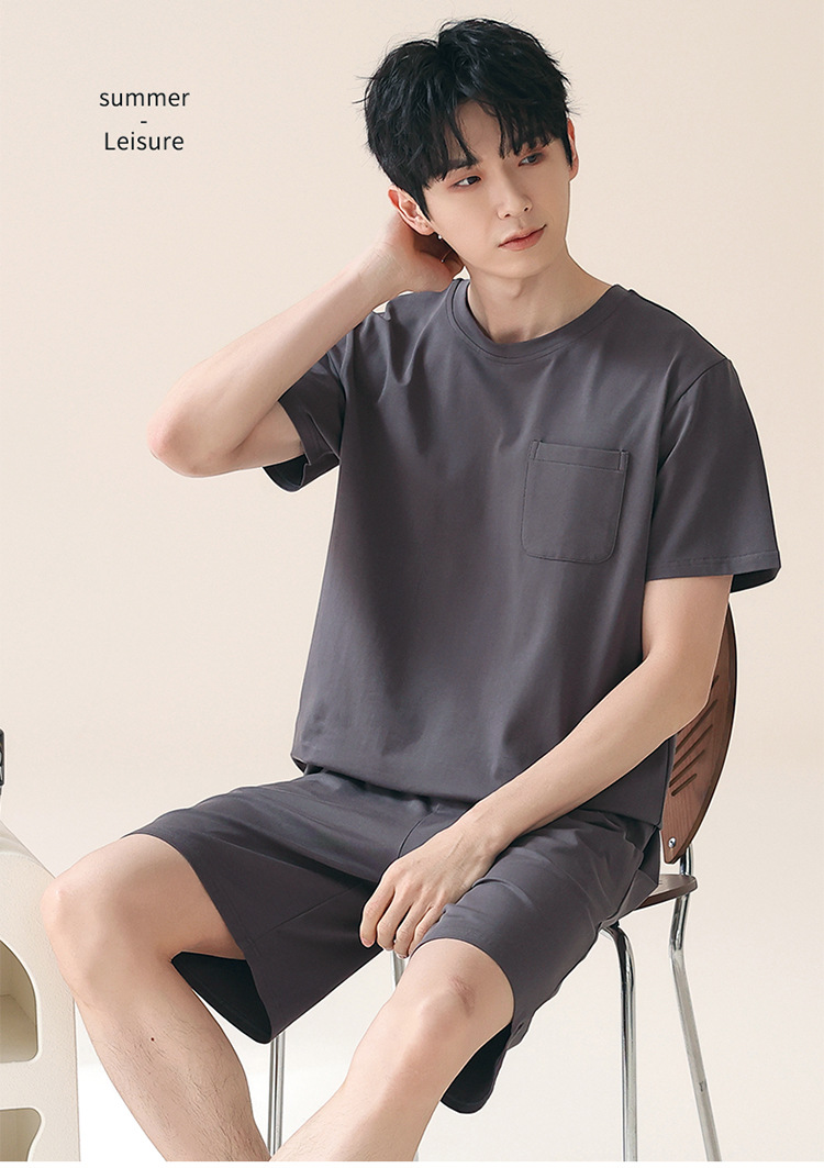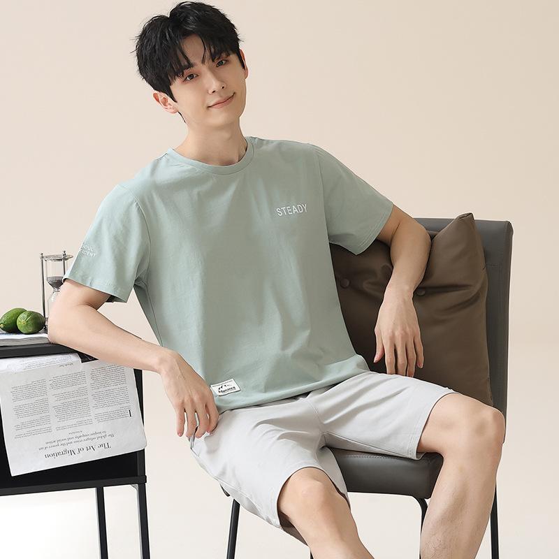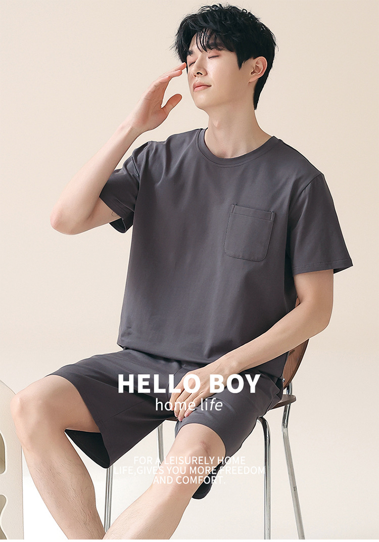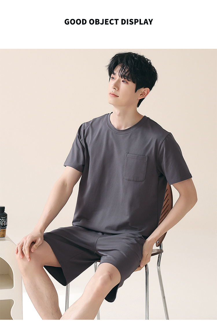 시원한 모달 파자마 남성 여름 반팔 심플 청년은 느슨한 국경 간 가정복 세트 밖에서 입을 수 있습니다.스토어 가기