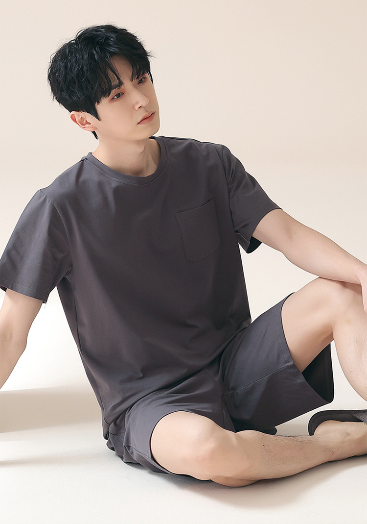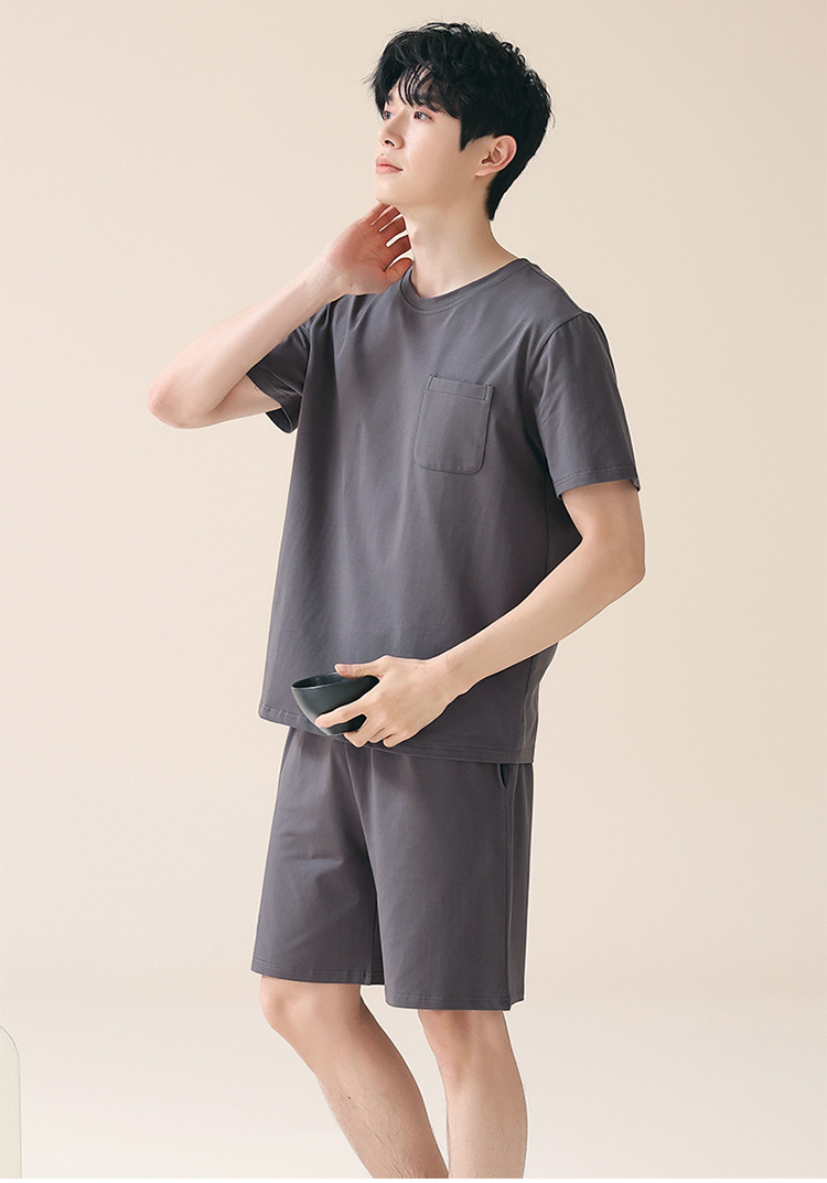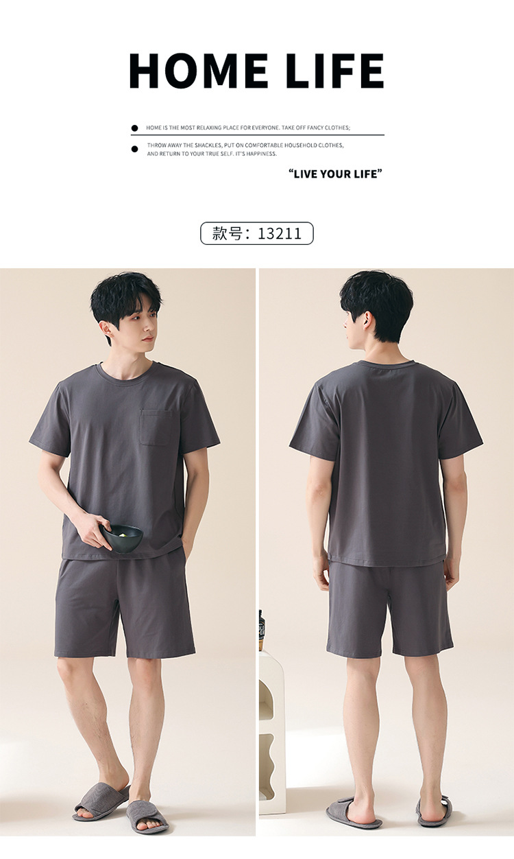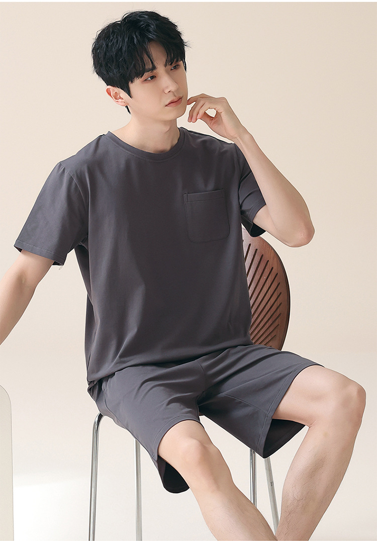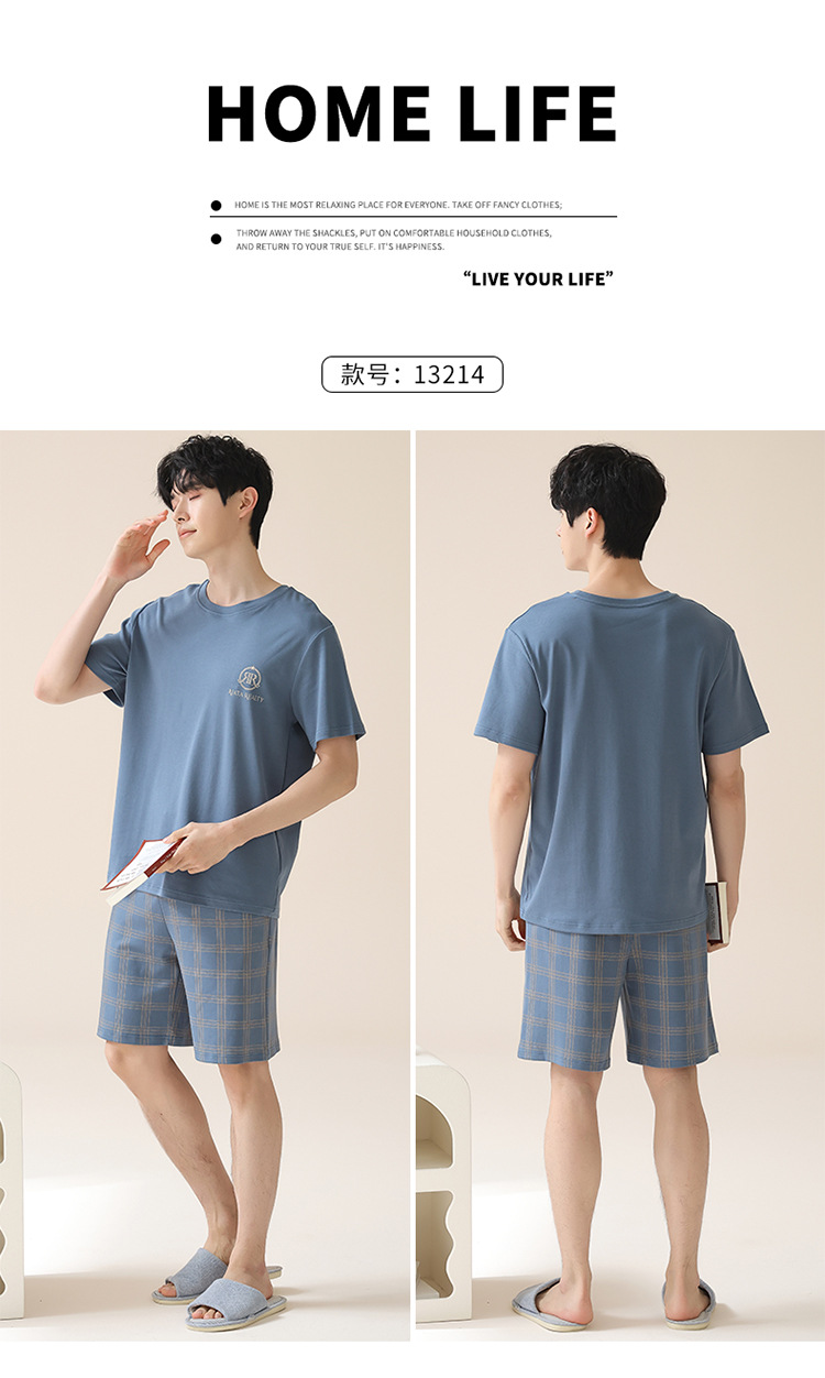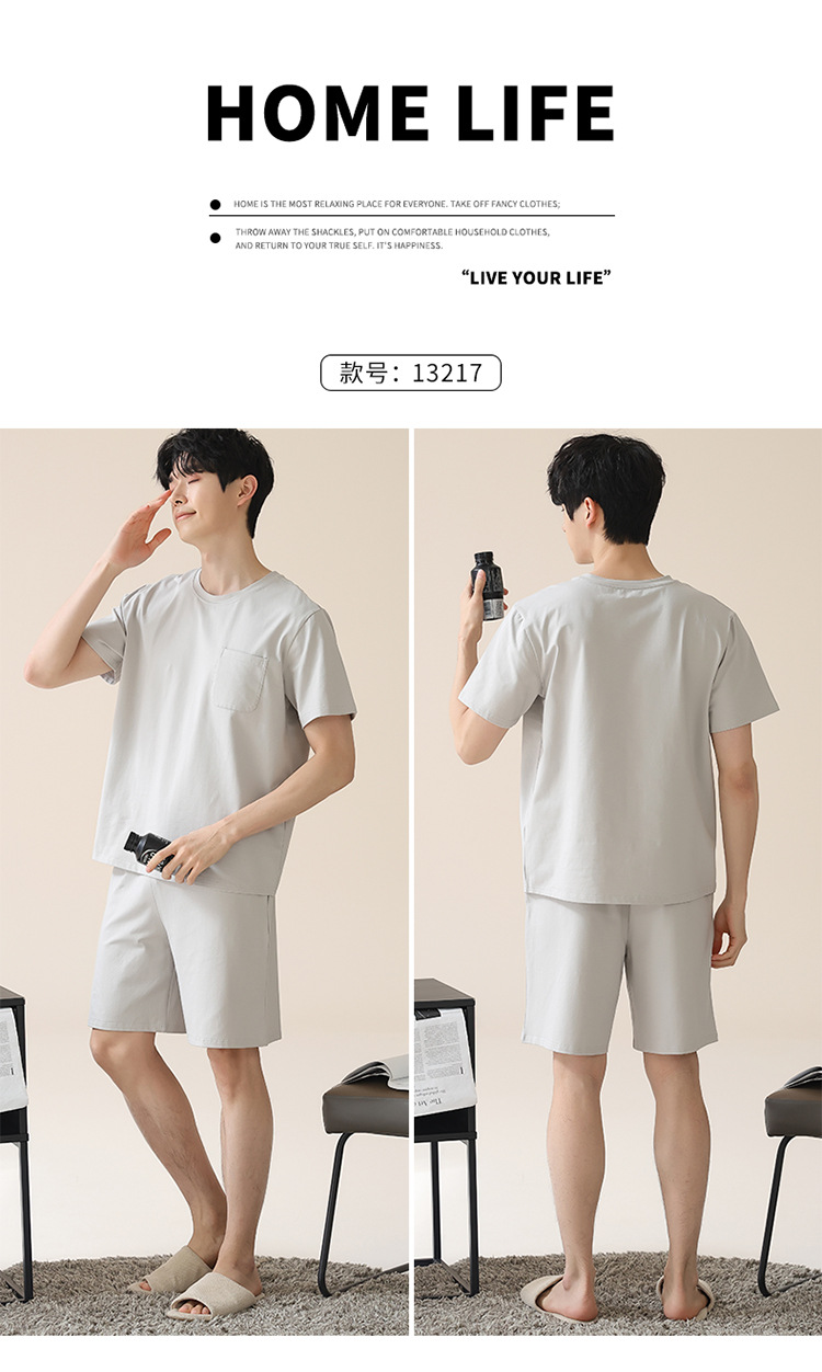 시원한 모달 파자마 남성 여름 반팔 심플 청년은 느슨한 국경 간 가정복 세트 밖에서 입을 수 있습니다.스토어 가기