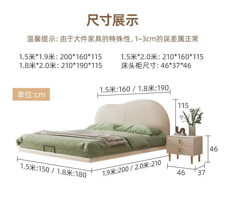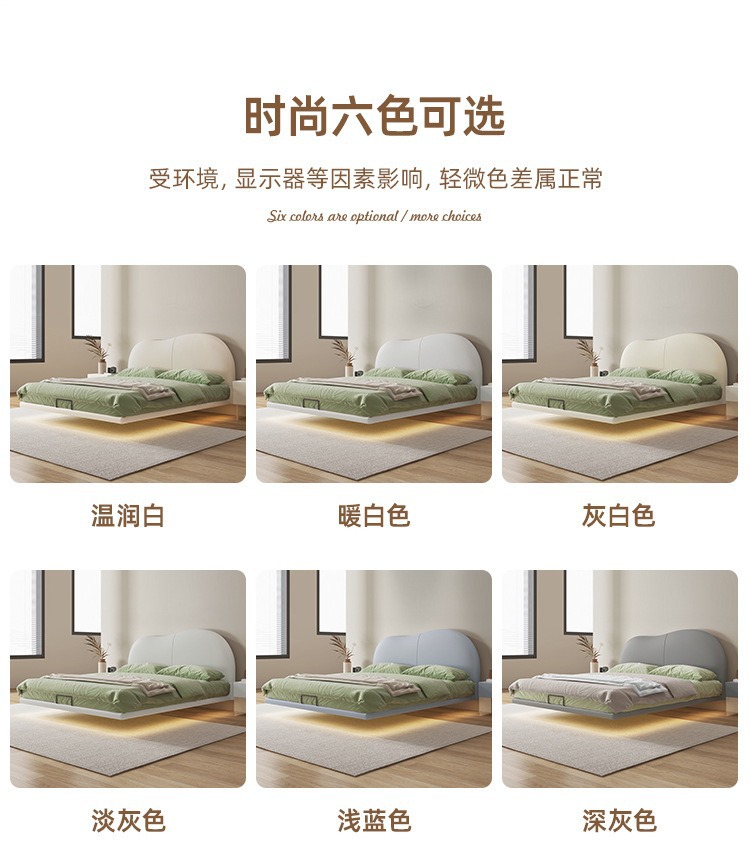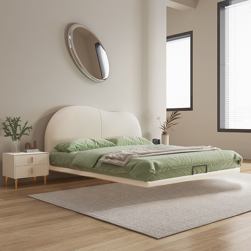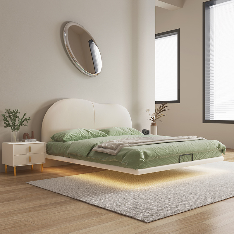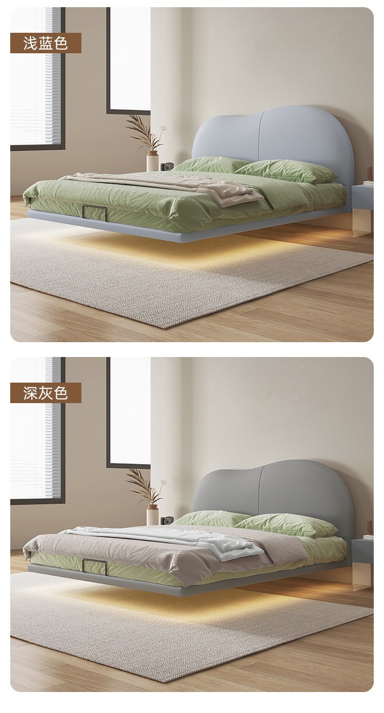 플로팅 침대 현대 간단한 가죽 침대 크림 fengyunduo 소프트 커버 침대 교수형 유도 램프 1.8 m 큰 침대 가장자리 침대