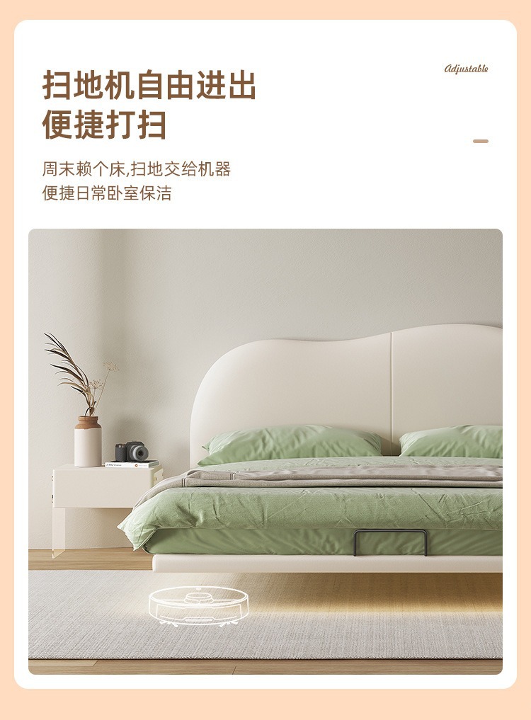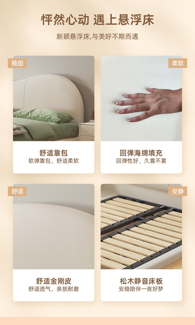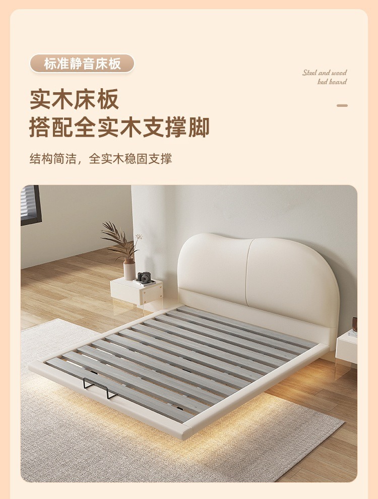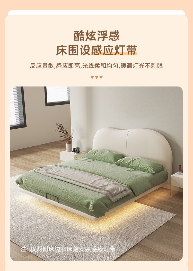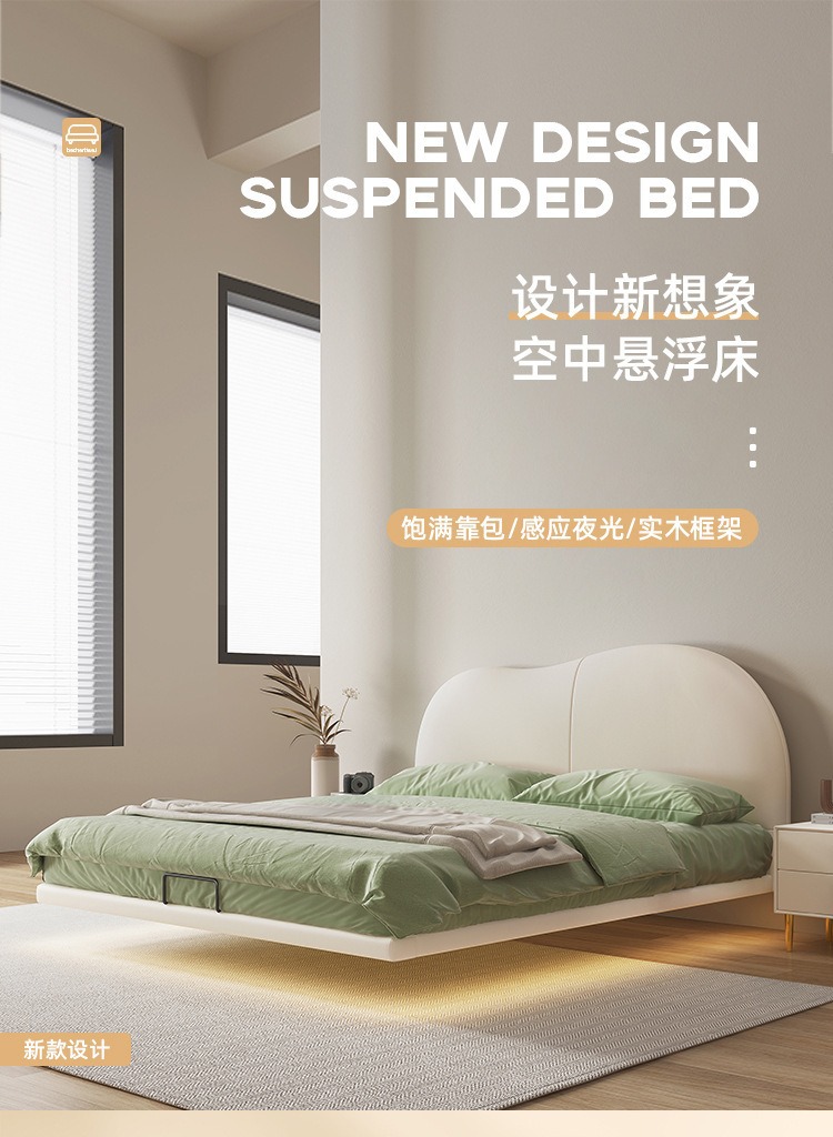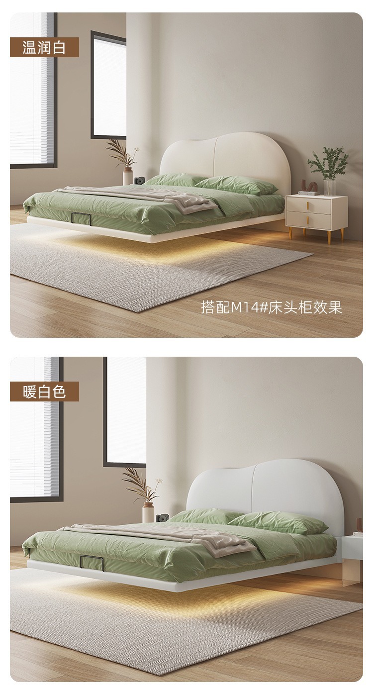 플로팅 침대 현대 간단한 가죽 침대 크림 fengyunduo 소프트 커버 침대 교수형 유도 램프 1.8 m 큰 침대 가장자리 침대스토어 가기