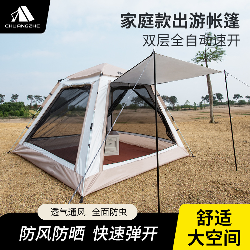 야외 휴대용 더블 레이어 자동 텐트 캠핑을 밤새 전체 세트의 장비를 두껍게 비 방지 자동 빠른 열기스토어 가기