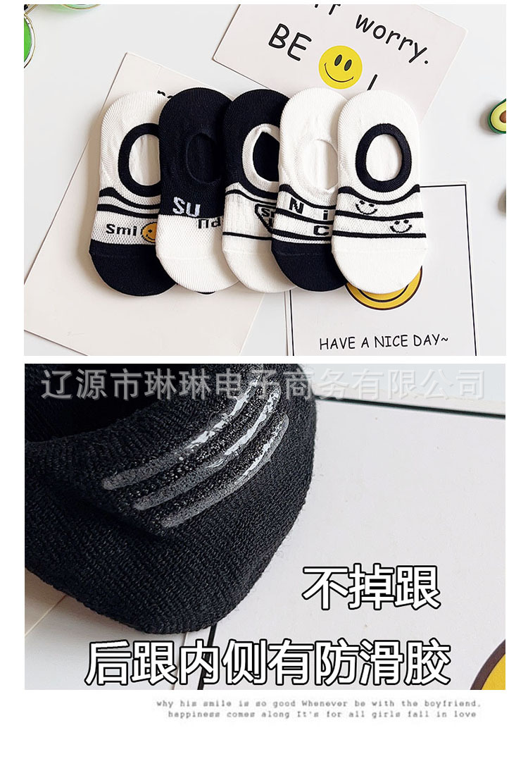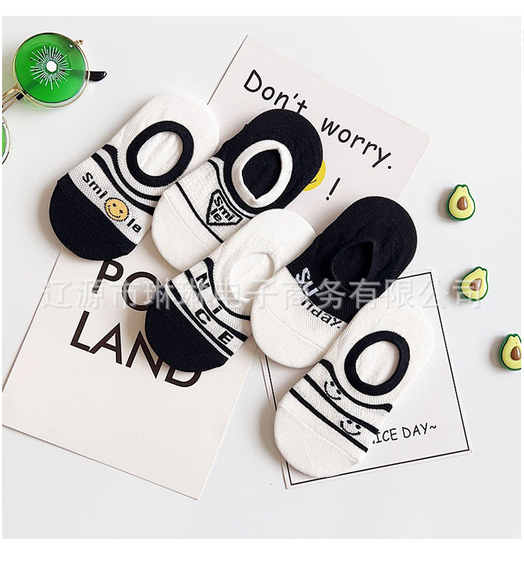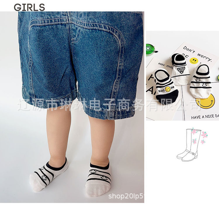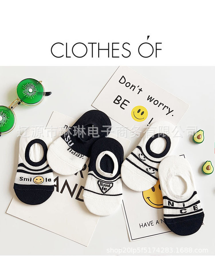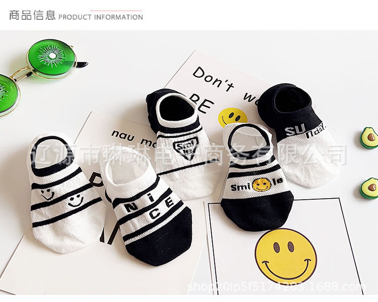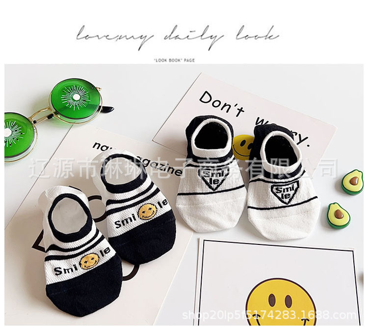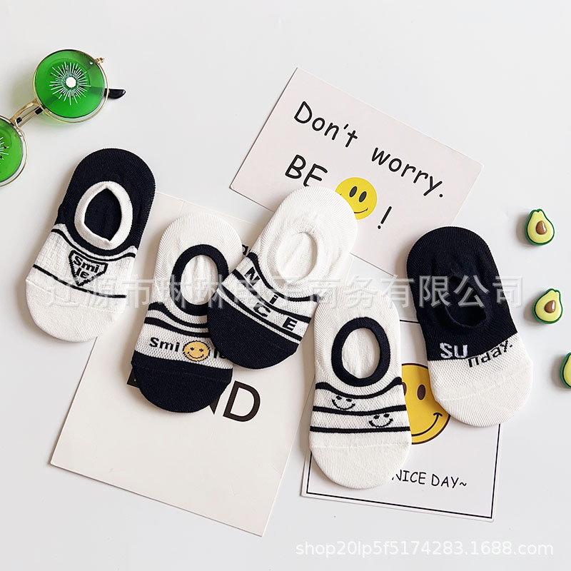 사랑의 진드기 어린이 양말 제조 업체 도매 재고 여름 얇은 통기성 땀 흡수성 흑백 미끄럼 방지 얕은 보이지 않는 양말스토어 가기