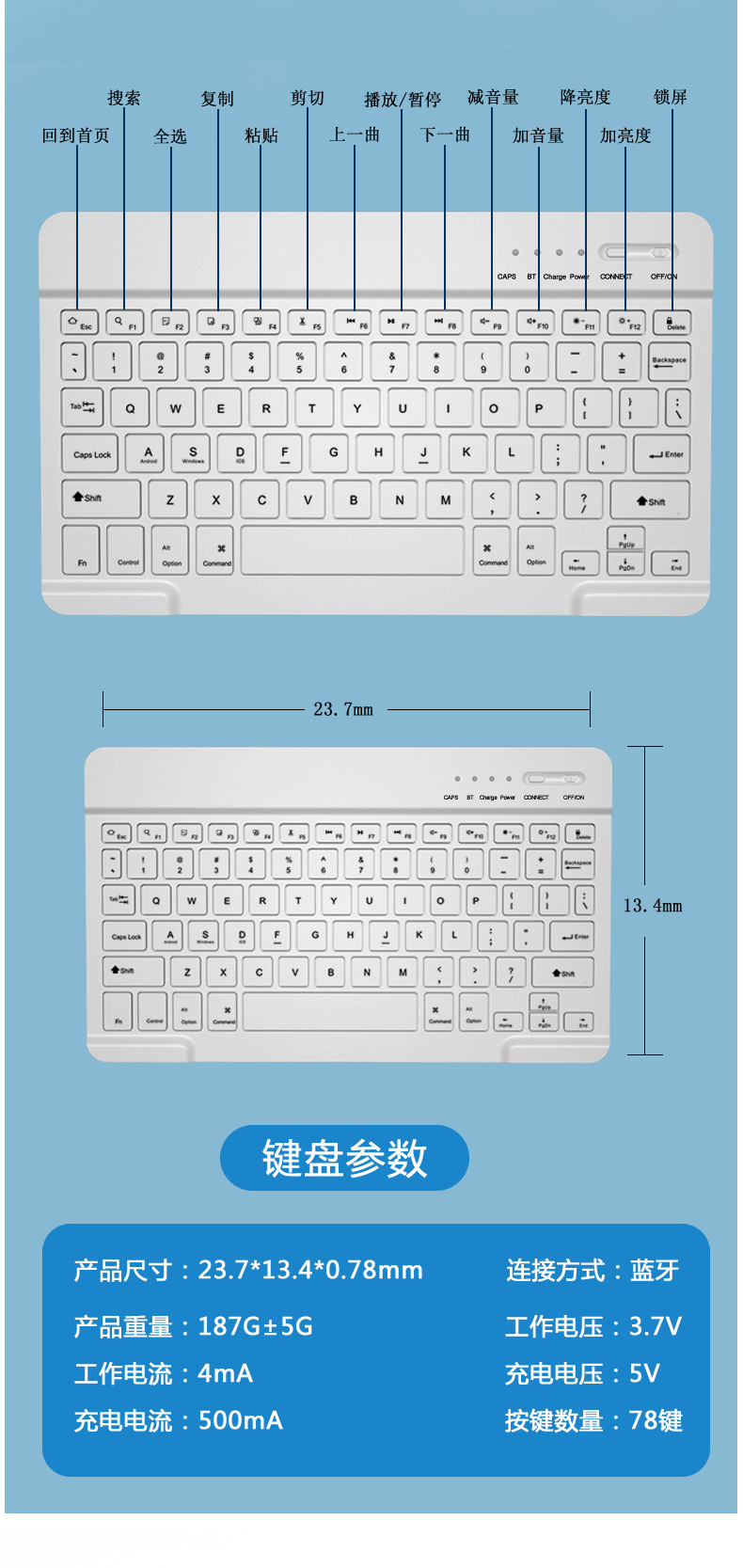국경 간 인기 있는 러시아어 소 언어 무선 블루투스 키보드 초박형 휴대용 도매 러시아어 한국어 무선 키보드스토어 가기