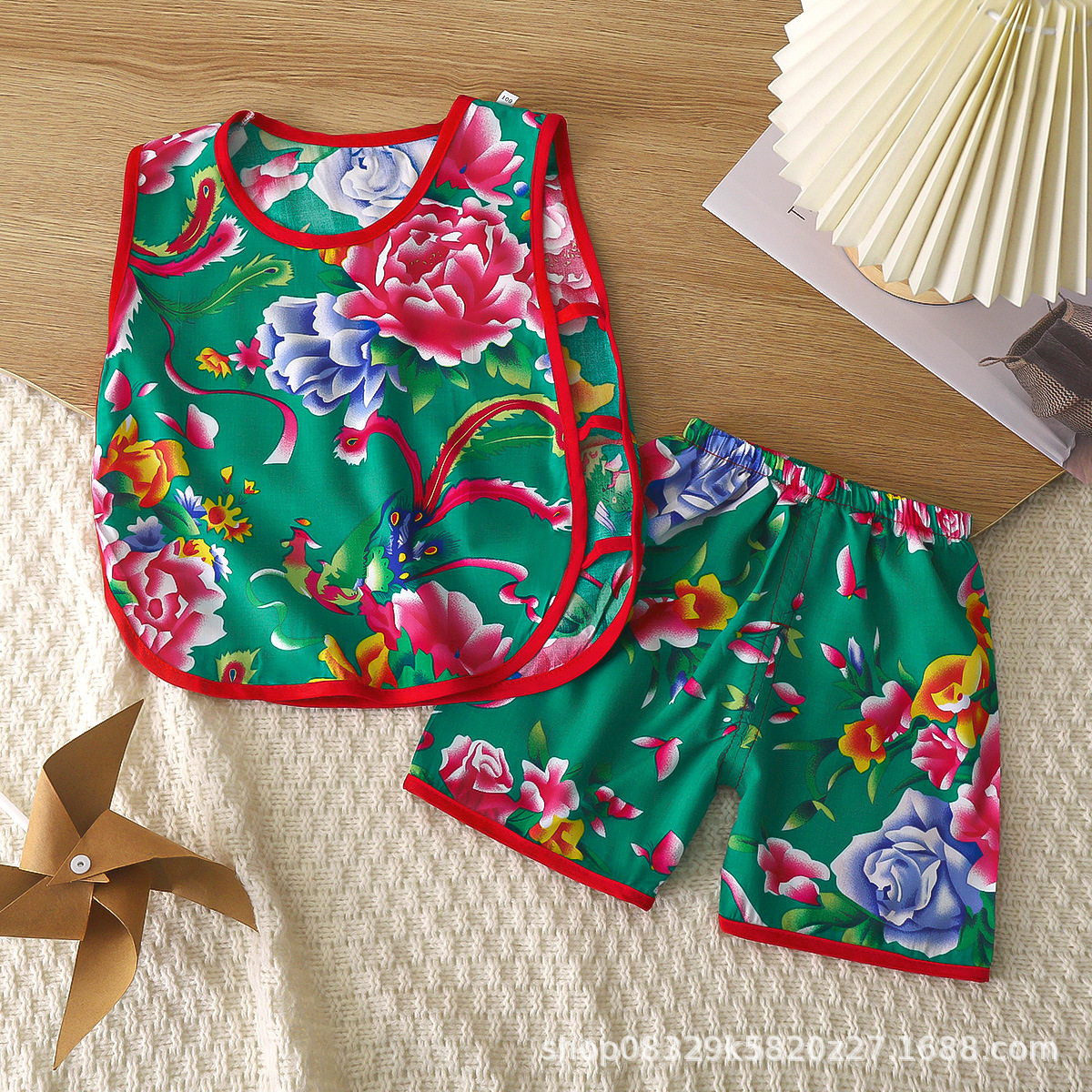 아기 조끼 아기 더블 레이어 원사 세트 민소매 아기 피파 투피스 세트 남성과 여성의 여름 새로운 아동복스토어 가기