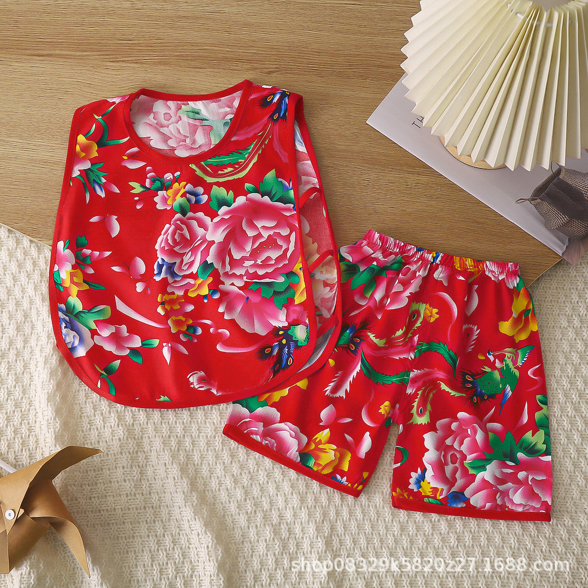 아기 조끼 아기 더블 레이어 원사 세트 민소매 아기 피파 투피스 세트 남성과 여성의 여름 새로운 아동복