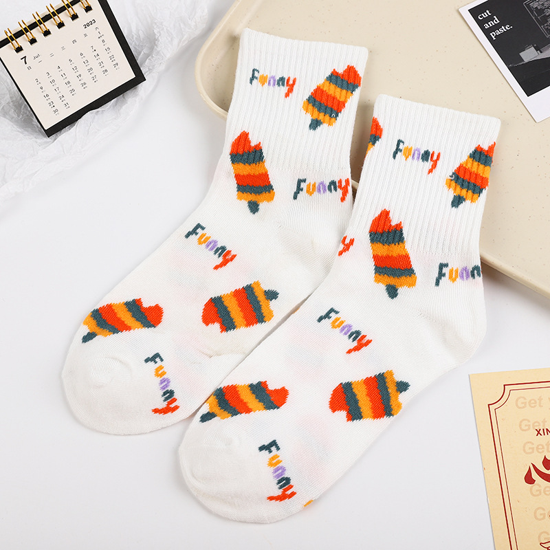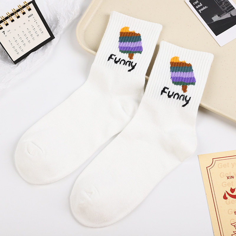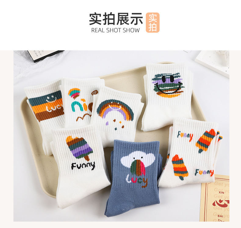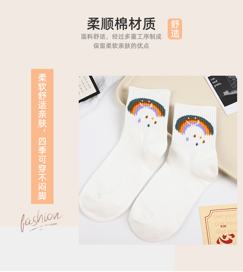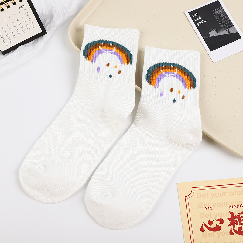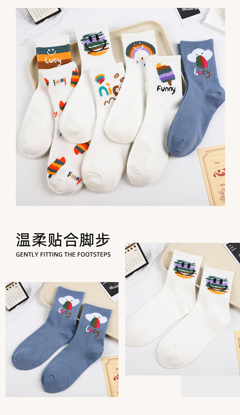 한국식 아카데미 스타일 화이트 양말 여성 자수 중견 양말 올매치 가을 · 겨울 고색 가치 스타킹 만화 스포츠 양말
