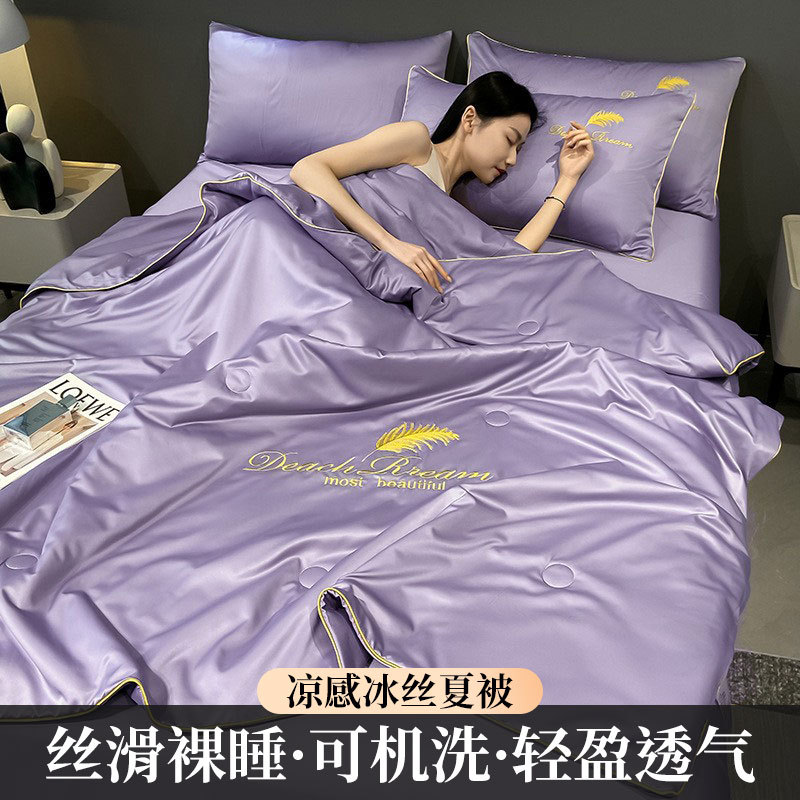 아이스 실크 여름 쿨 퀼렛 에어 컨디셔닝 퀼렛 쿨한 센스 홈 학생 기숙사 여름 쿨 퀼렛 4 피스 세트를 가열하기 위해 여름에 급속 냉각스토어 가기