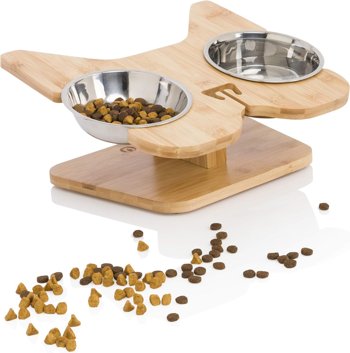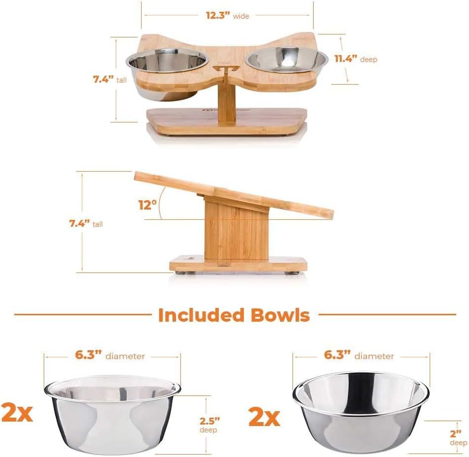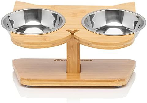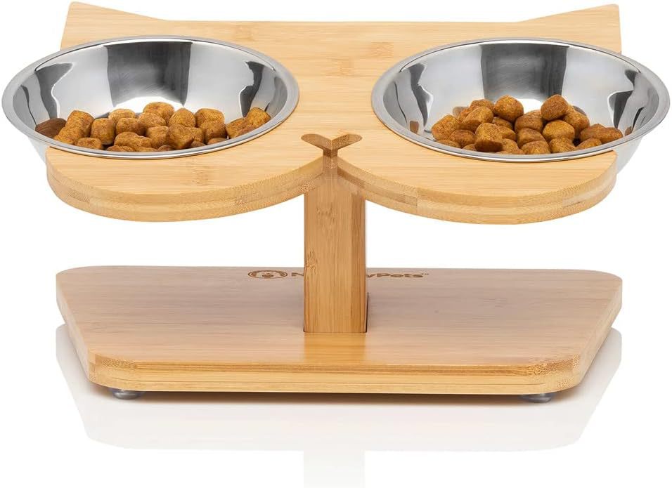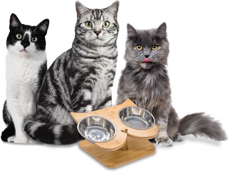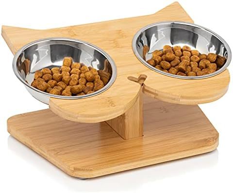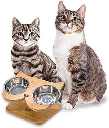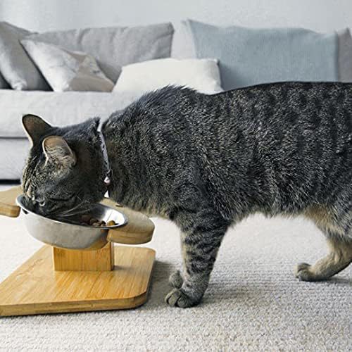 대나무 고양이 및 개 식기 보호대, 개 식기 및 물통, 고양이 그릇 홀더, 고양이 식기 뒤집힘 방지, 애완 동물 그릇 미끄럼 방지스토어 가기