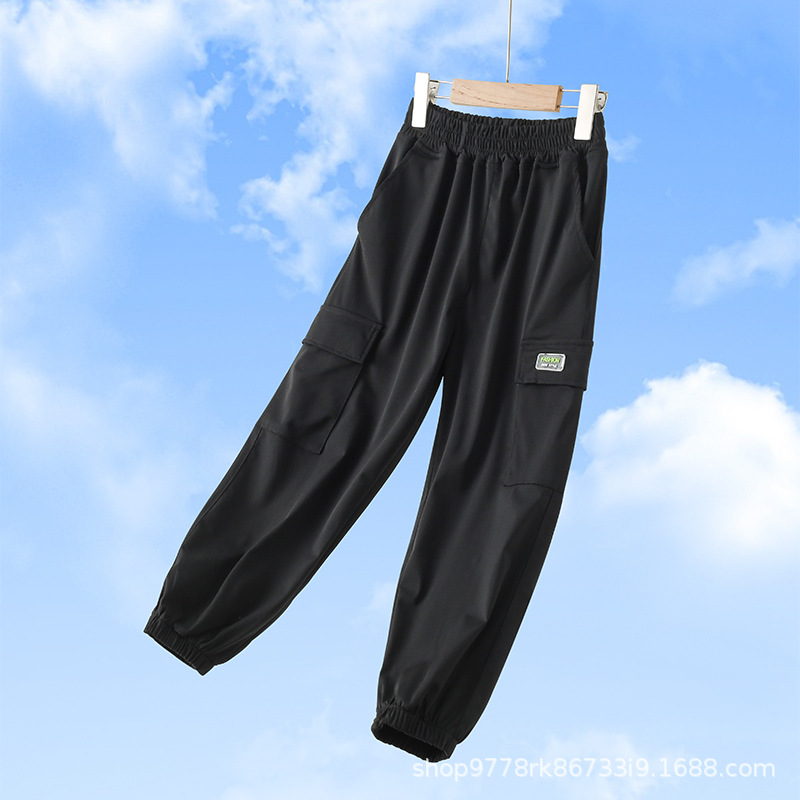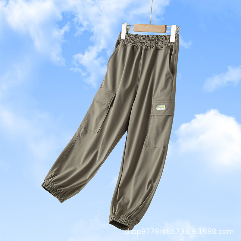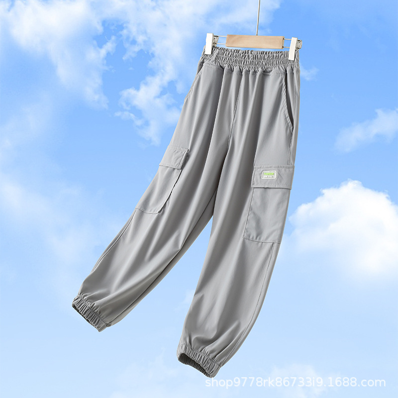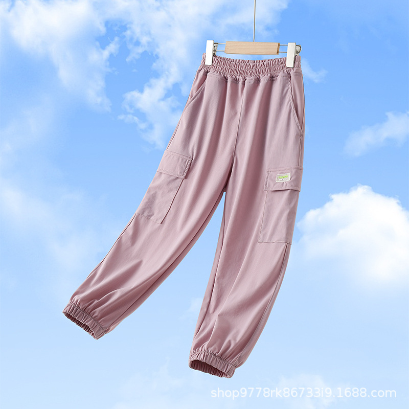 소년 소녀 바지 여름 얇은 어린이 바지 아이스 실크 모기 방지 바지 여름 소녀 캐주얼 빠른 건조 스포츠 도매