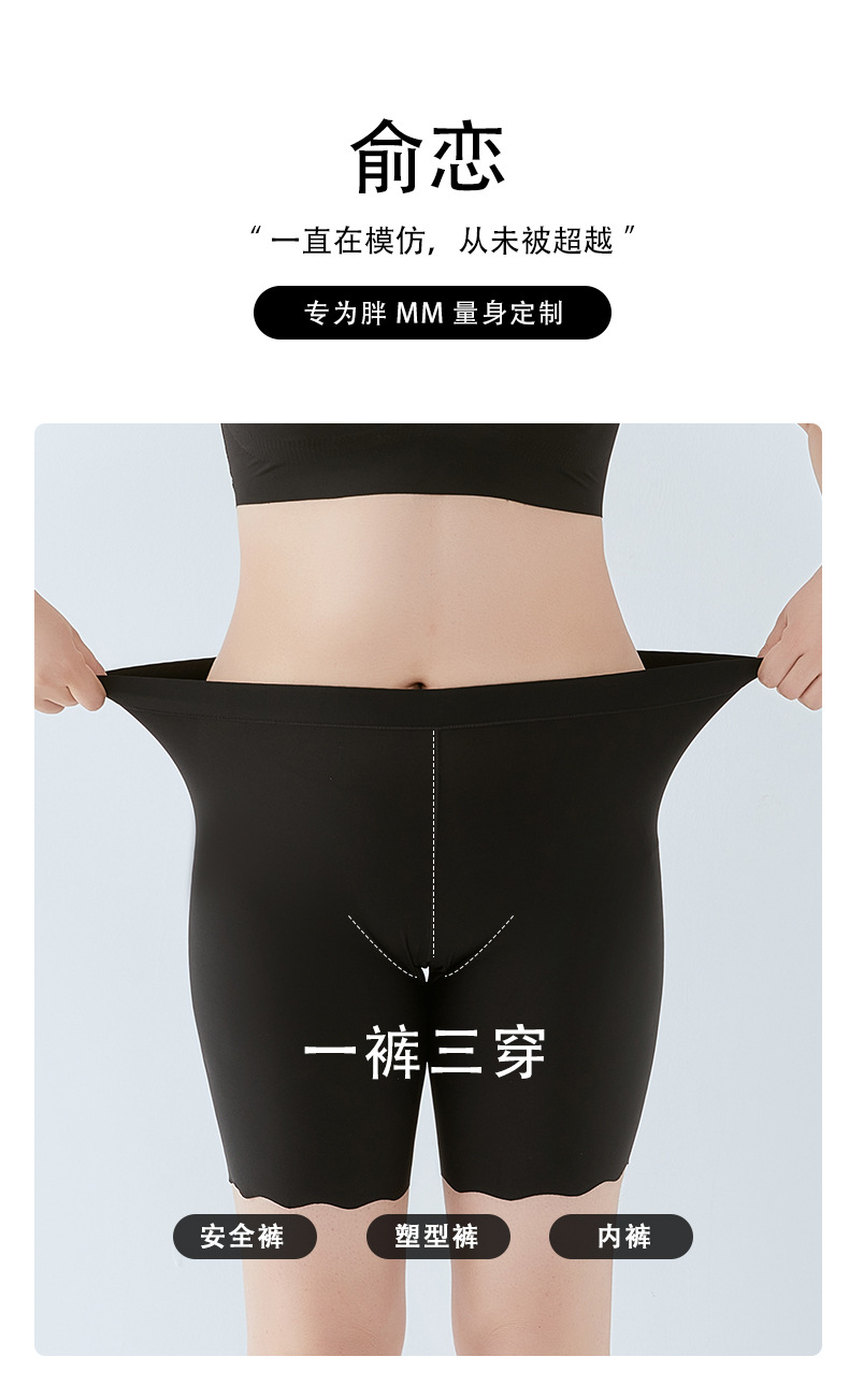 안전 바지 여성의 대형 안티 러닝 팬티 투인원 화이트 보험 바지 비 헴 다육 원활한 아이스 실크 레깅스