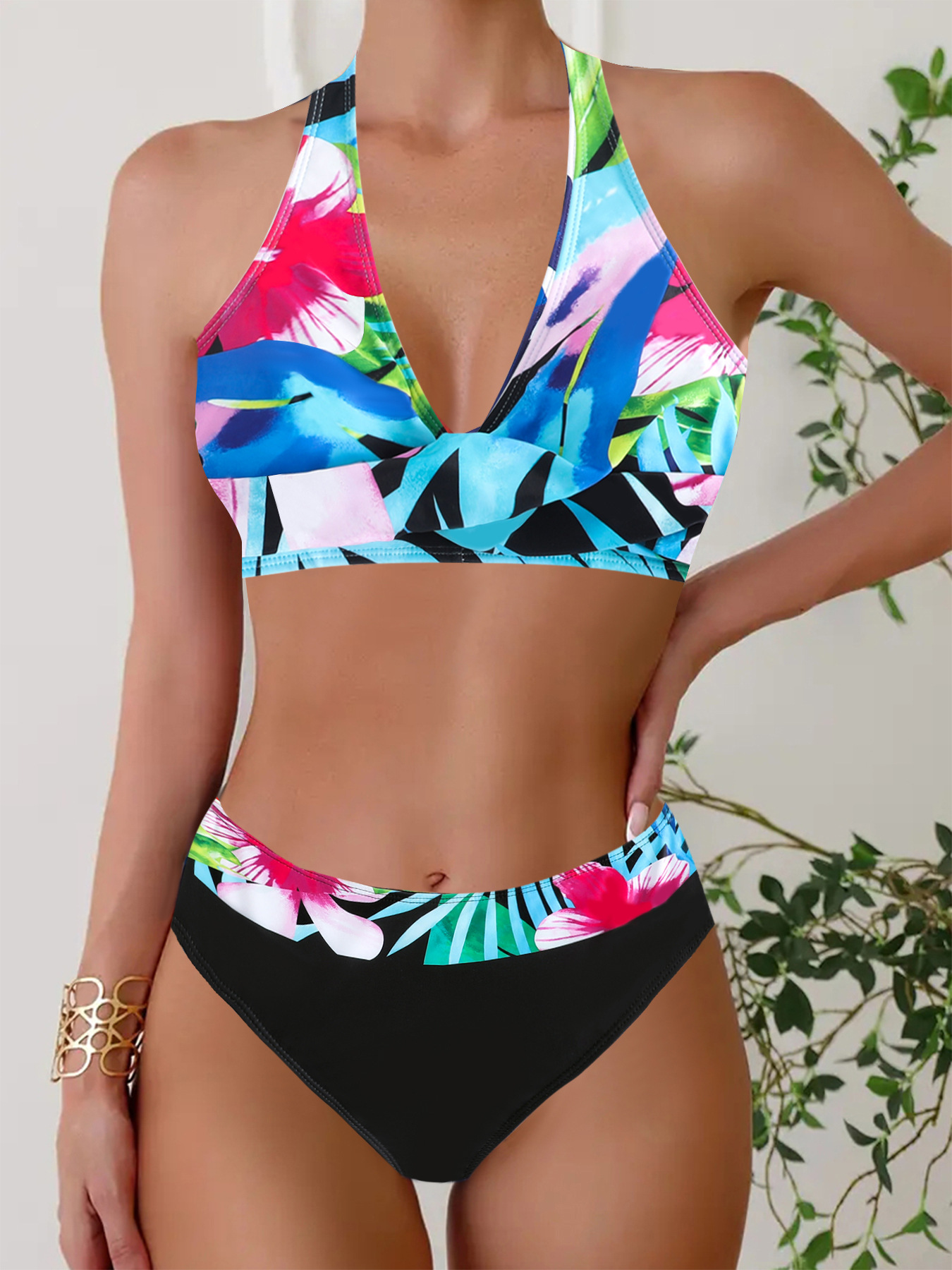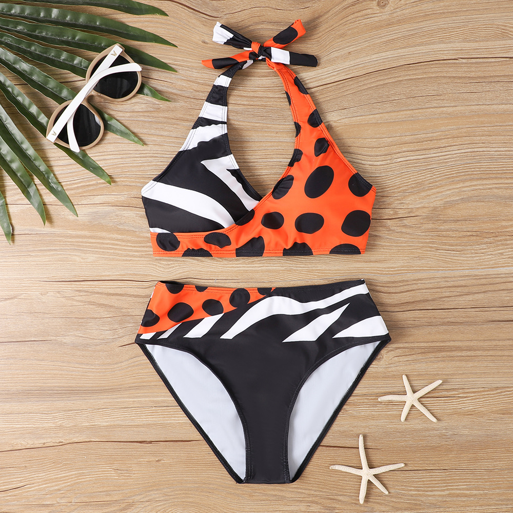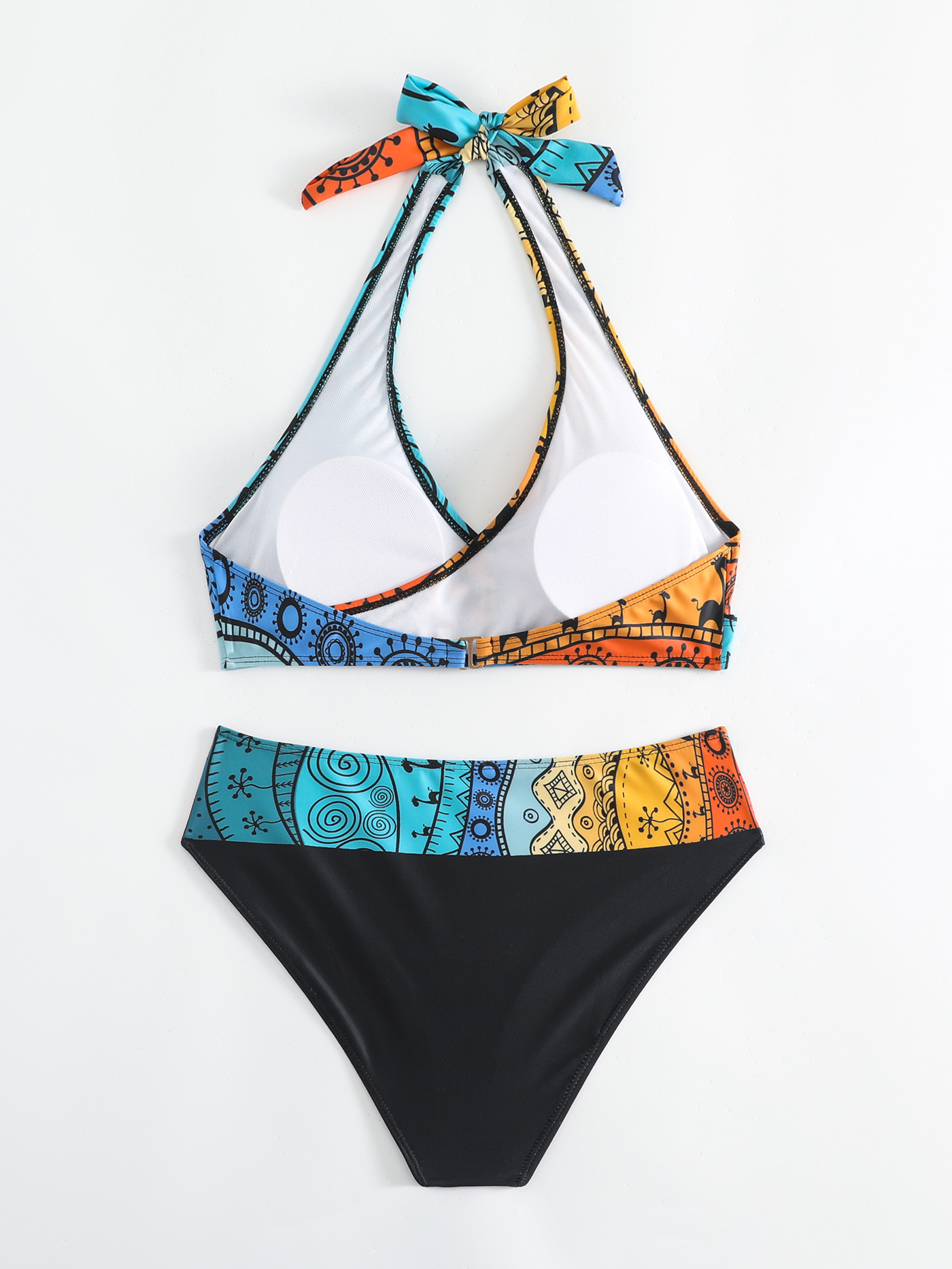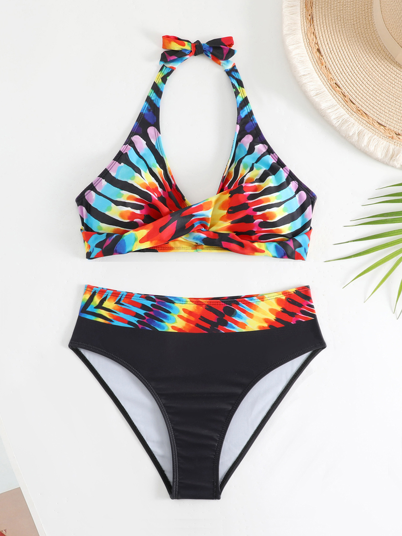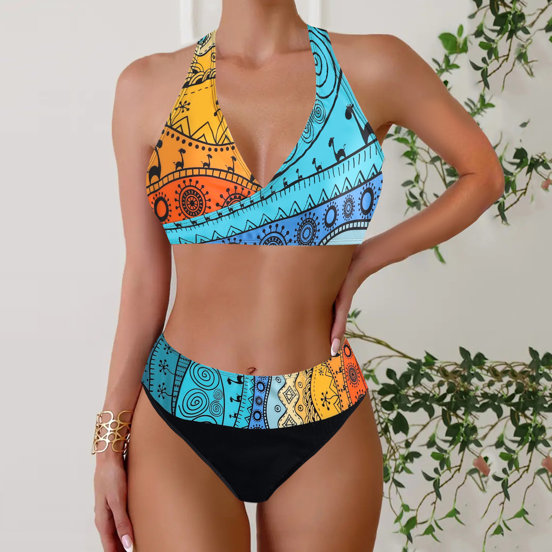 2024 새로운 유럽과 미국의 국경 멀티 컬러 인쇄 해변 섹시한 분할 수영복 비키니 대외 무역