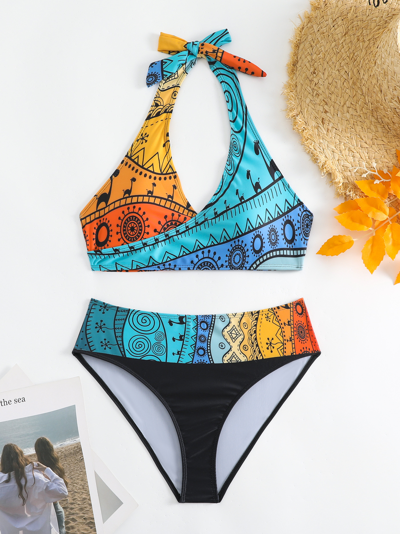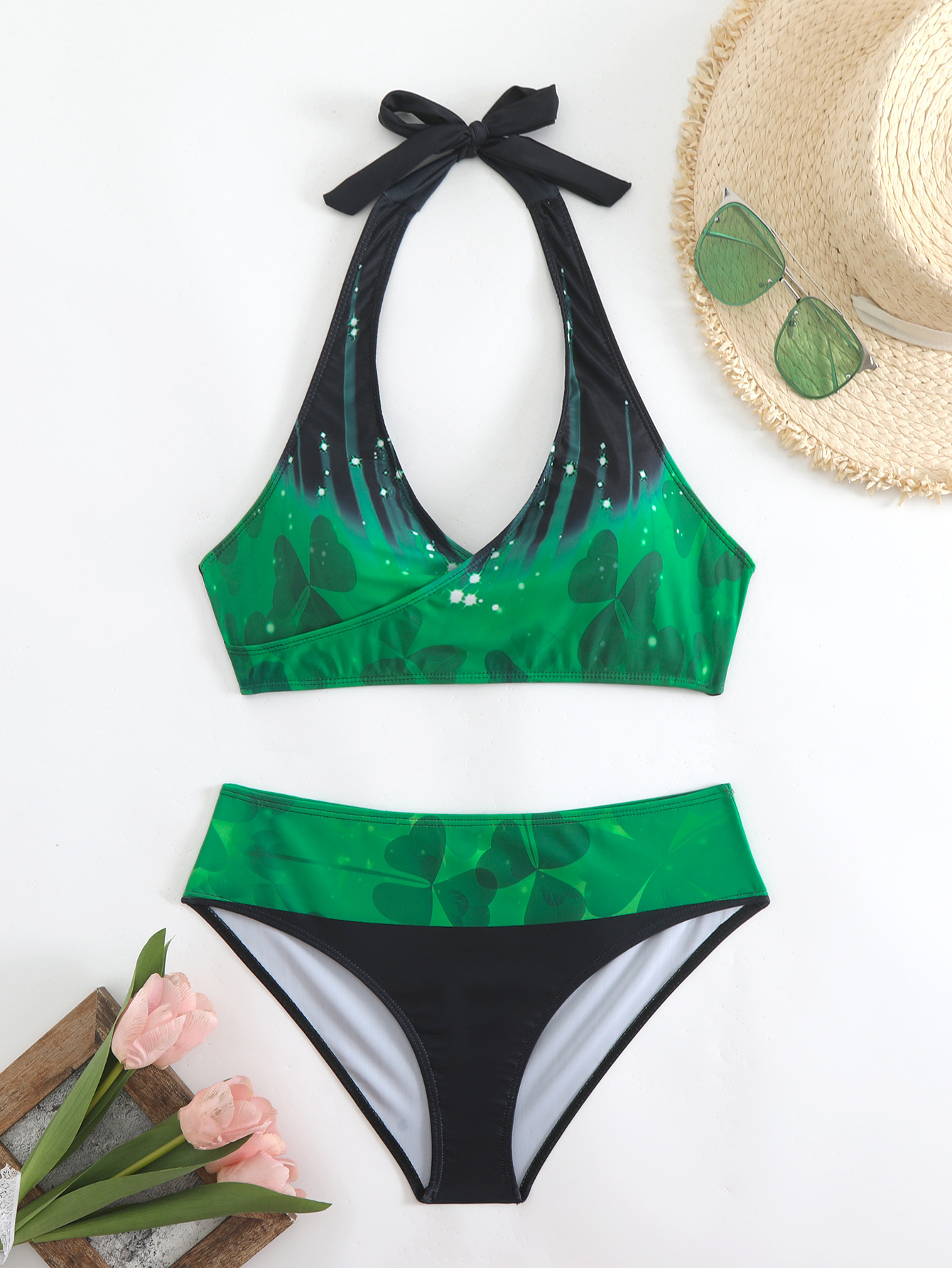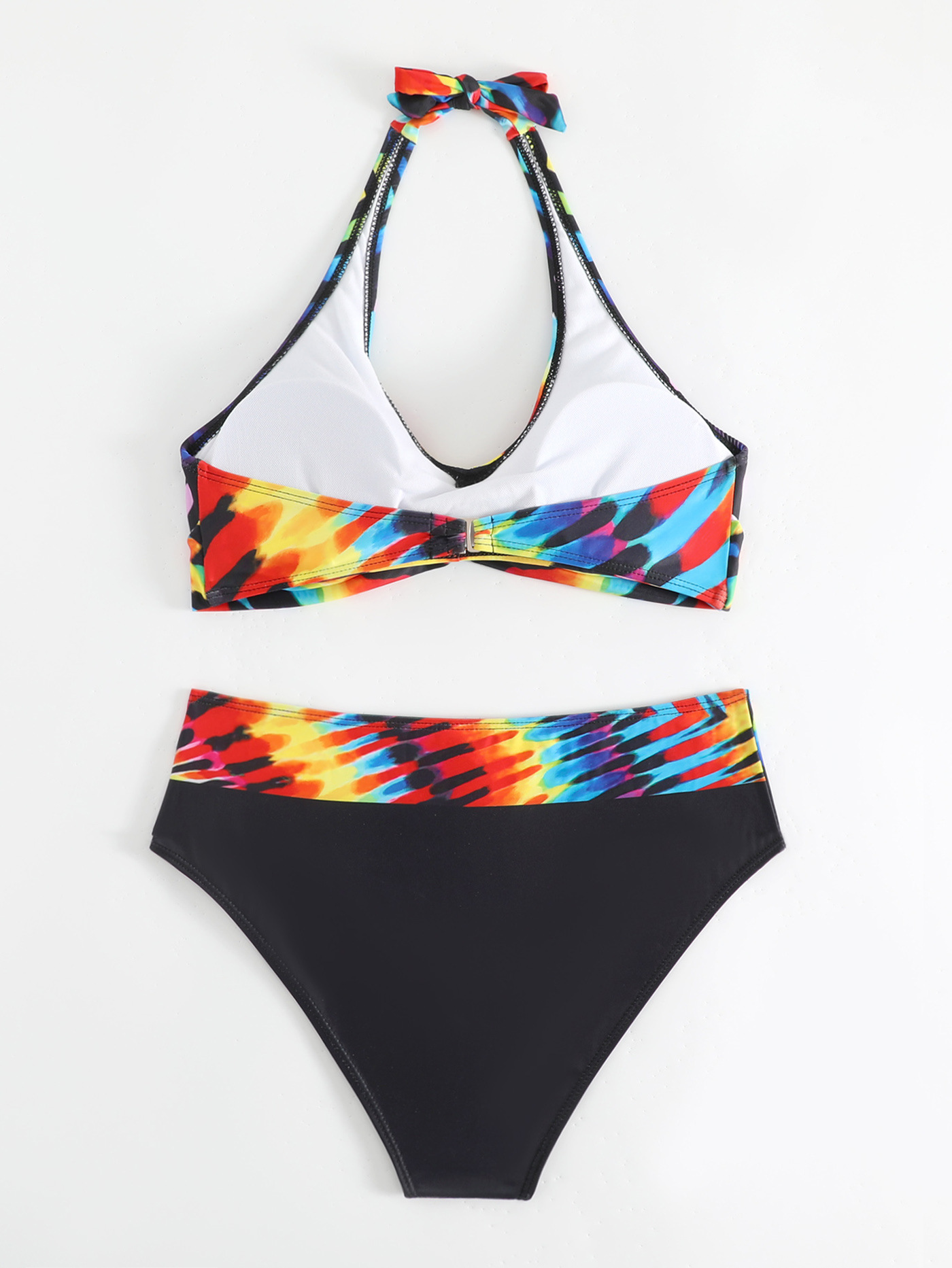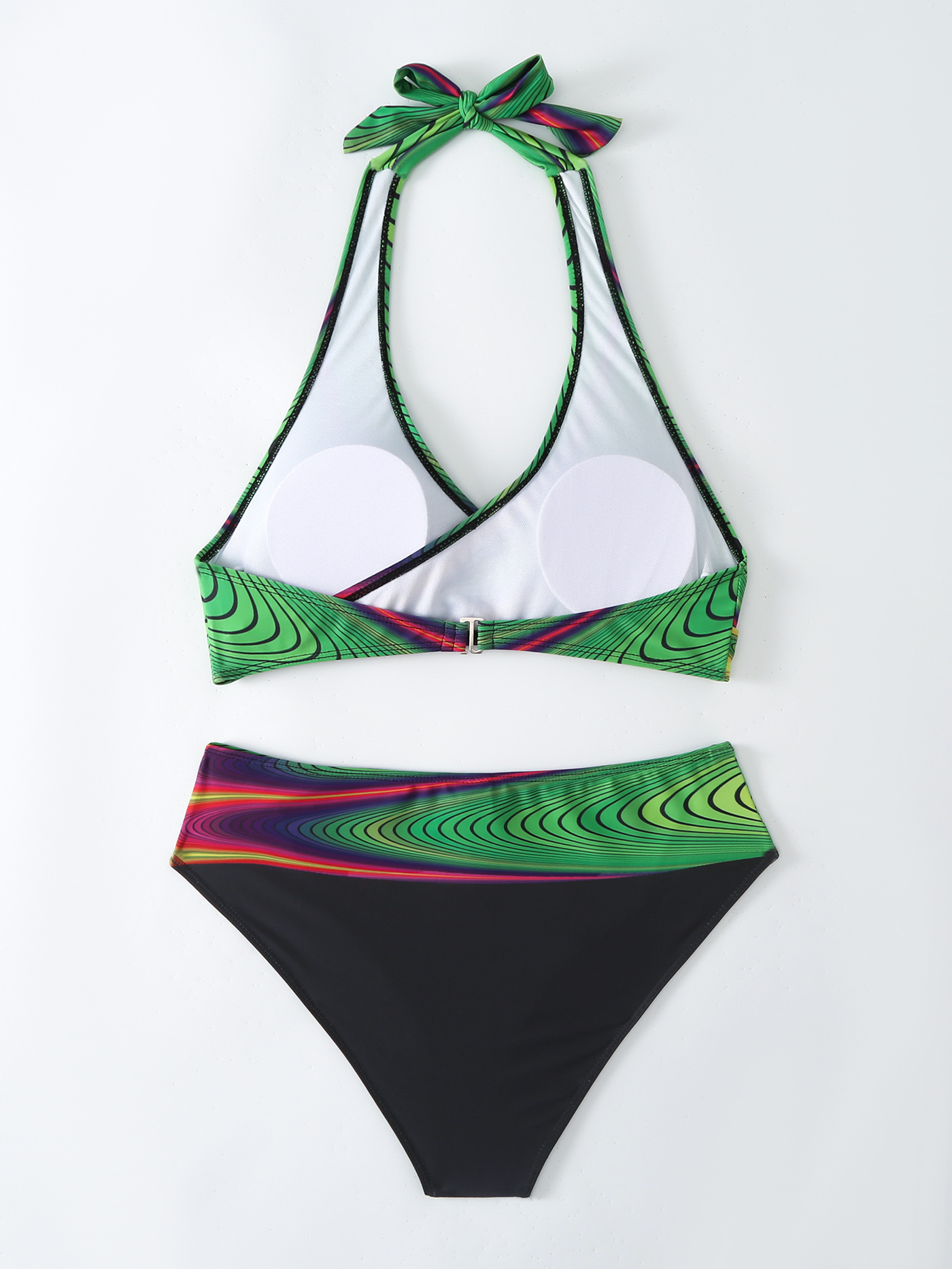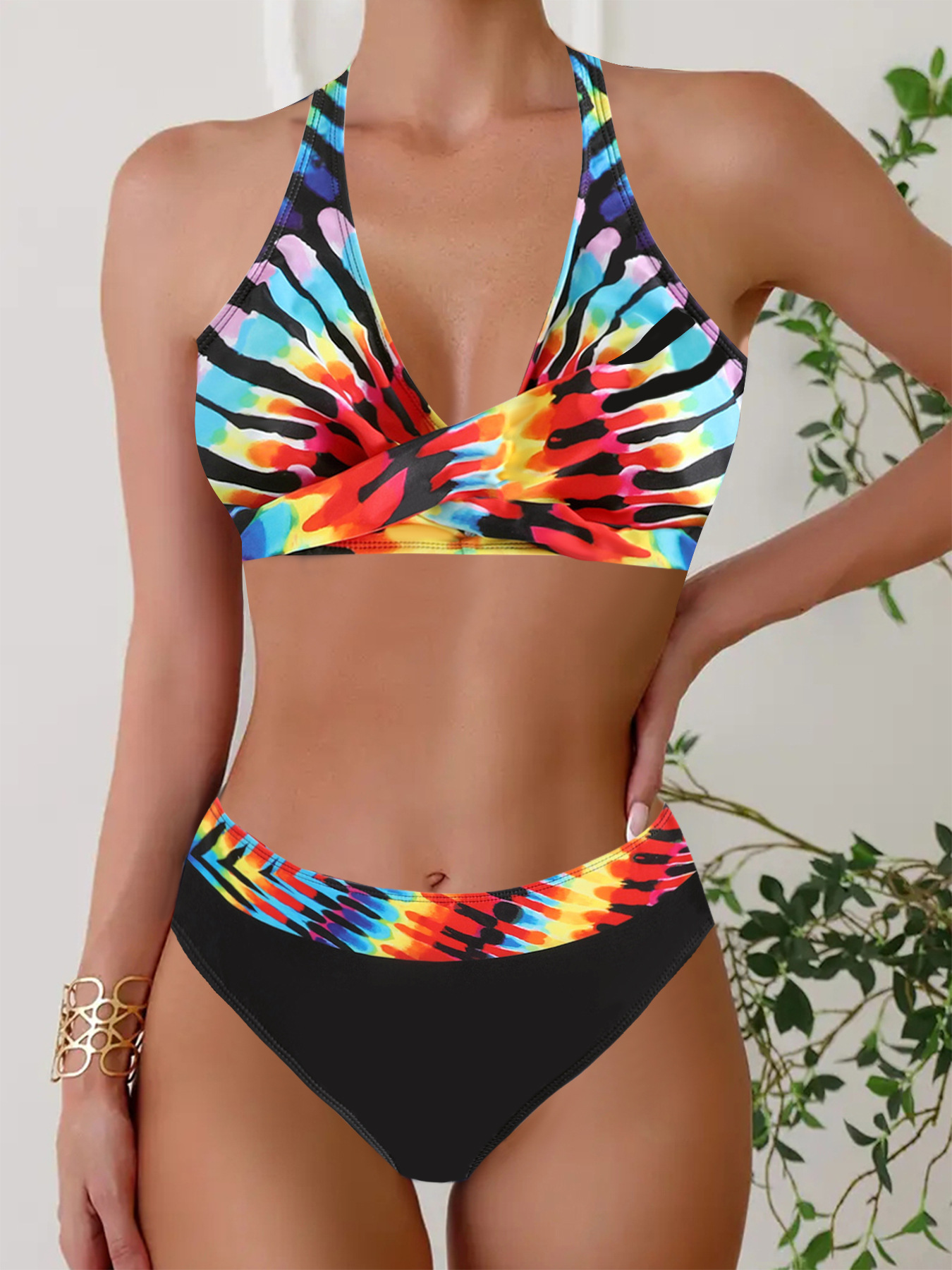 2024 새로운 유럽과 미국의 국경 멀티 컬러 인쇄 해변 섹시한 분할 수영복 비키니 대외 무역