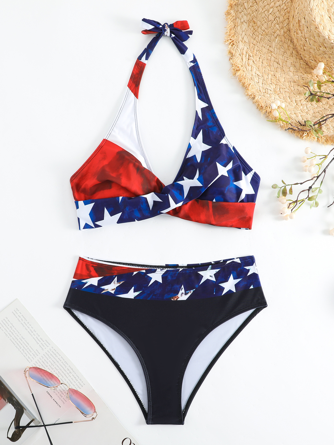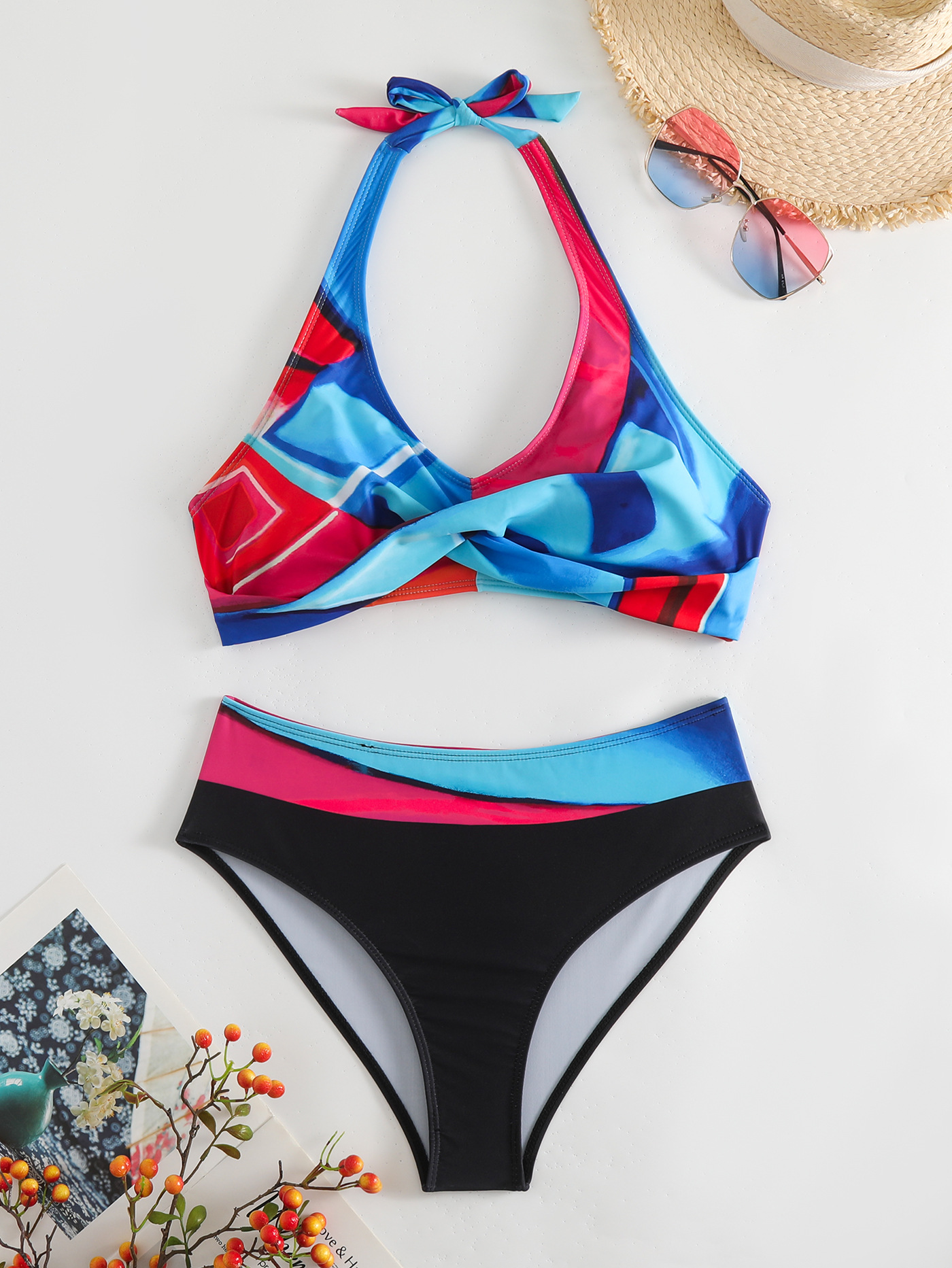 2024 새로운 유럽과 미국의 국경 멀티 컬러 인쇄 해변 섹시한 분할 수영복 비키니 대외 무역스토어 가기