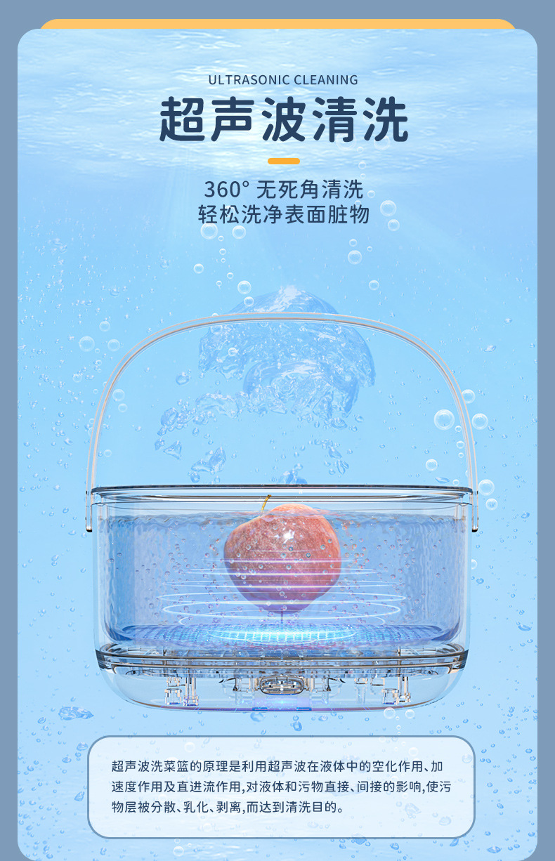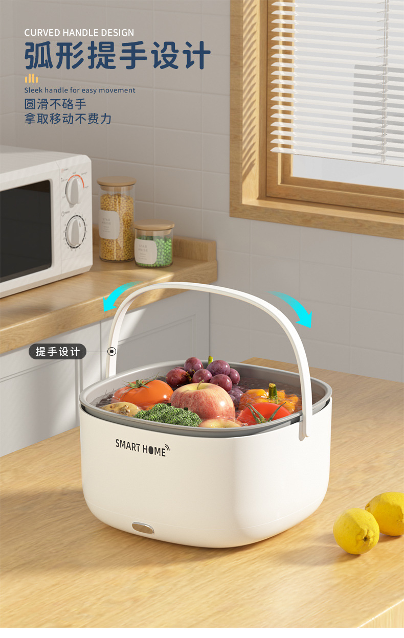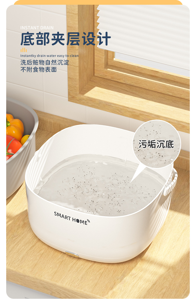 AD 초음파 야채 세척 배수 바구니 가정용 야채 세탁기 야채 세탁기 과일 성분 자동 먼지 제거