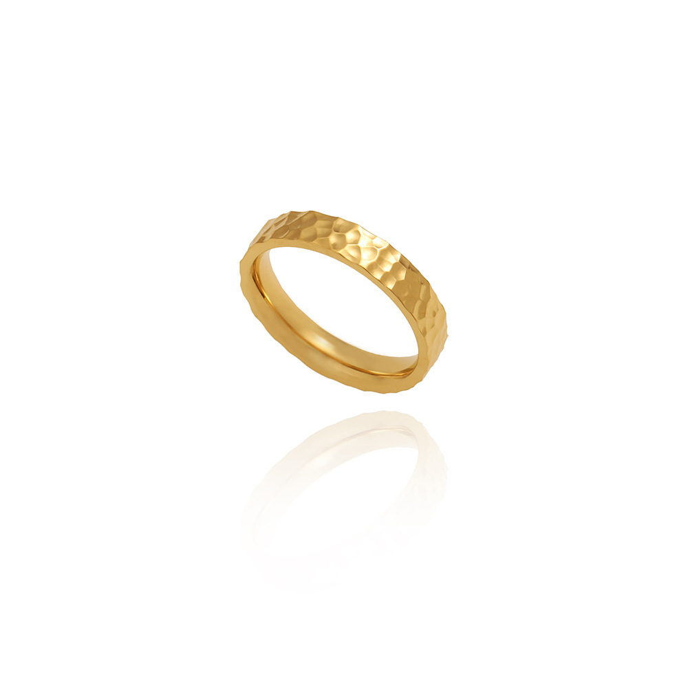 티타늄 강철 도금 짓 눌린 얼음 고대 방법 물 리플 손으로 두드리는 질감 디자인 여성 좁은 버전 패션 기능 반지 여성