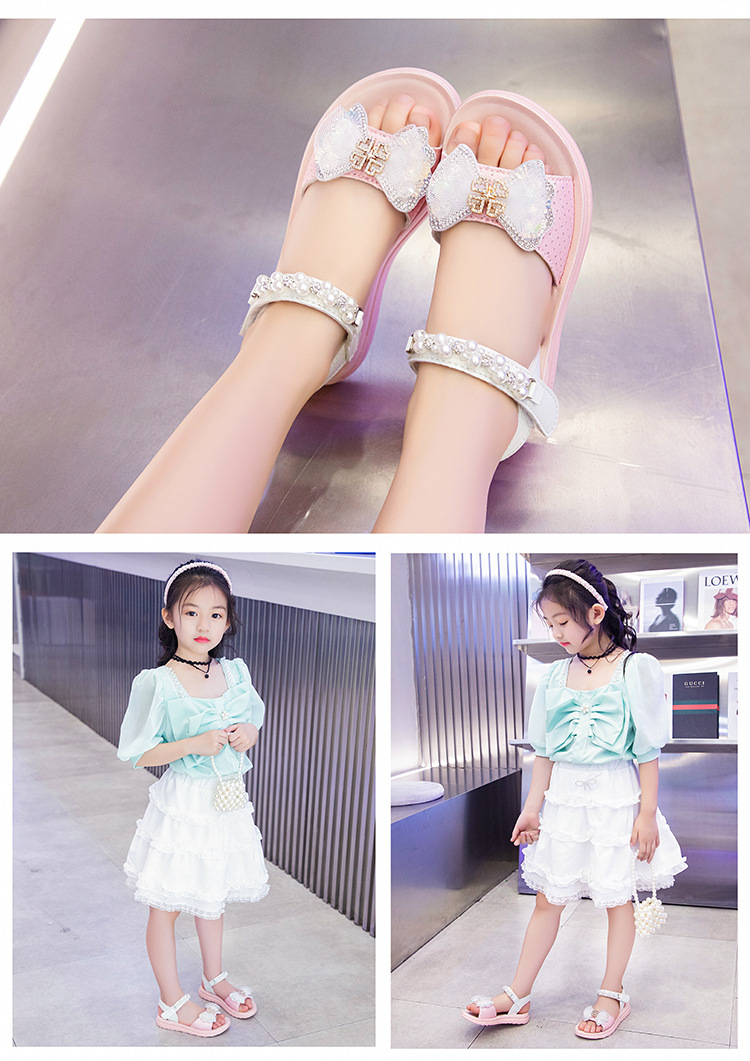소녀 신발 여름 새로운 올 매치 소프트 하단 소녀의 활 공주 샌들 미끄럼 캐주얼 비치 어린이 신발스토어 가기