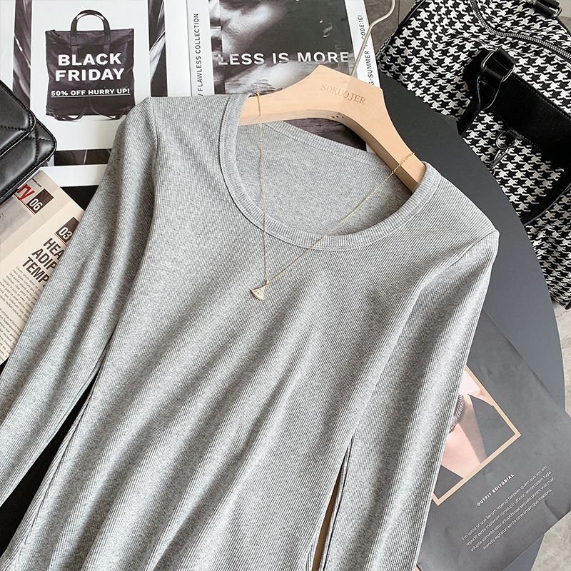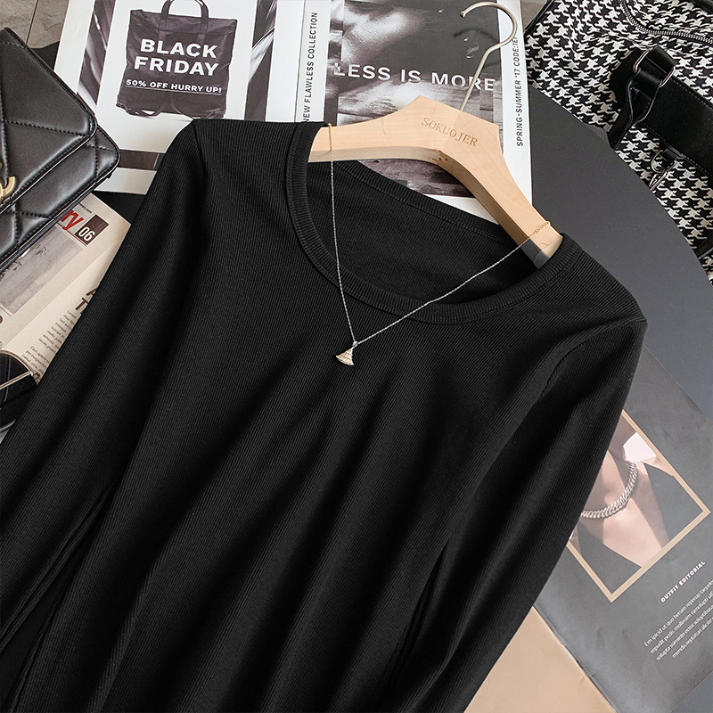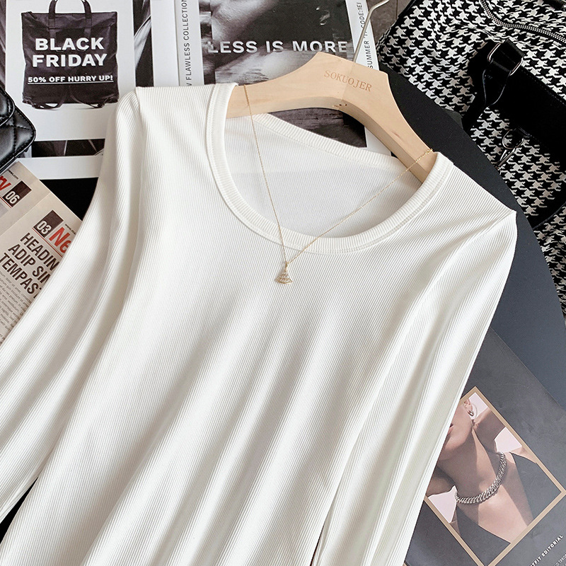 가을 겨울 여성용 고품질 스레드 바닥 셔츠, 양면 기모 한국식, 라운드 넥, 고탄성, 슬림핏, 따뜻한 긴 소매