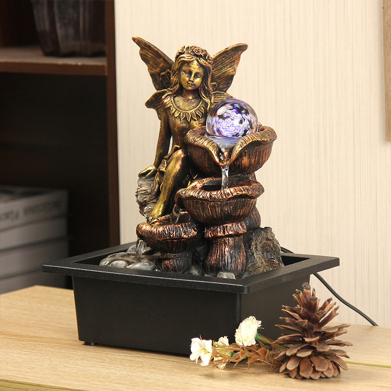 국경을 넘는 새로운 사무실 실내 거실 연구 데스크탑 TV 캐비닛 순환 공을 달리는 물 장식품 수지 공예