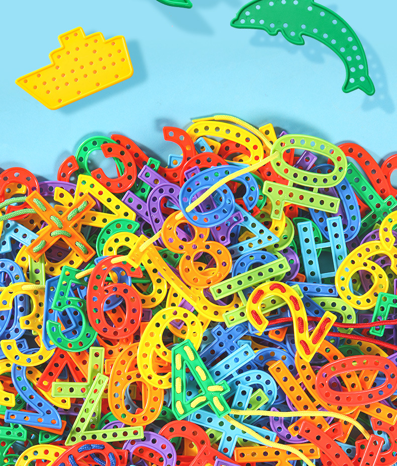 유치원 어린이 교육 스레딩 보드 아기 장난감 로프 미세 행동 손 눈 훈련 손가락 구멍 빌딩 블록스토어 가기