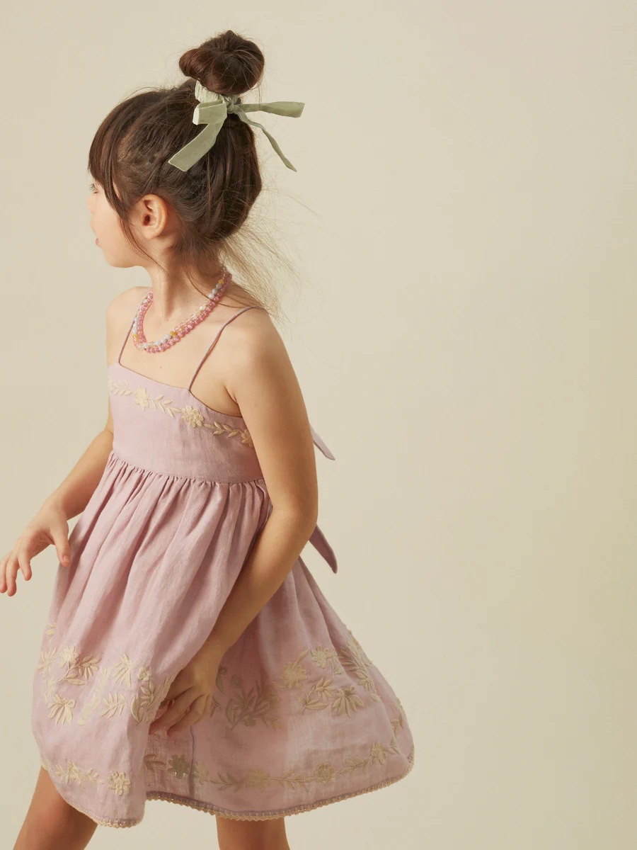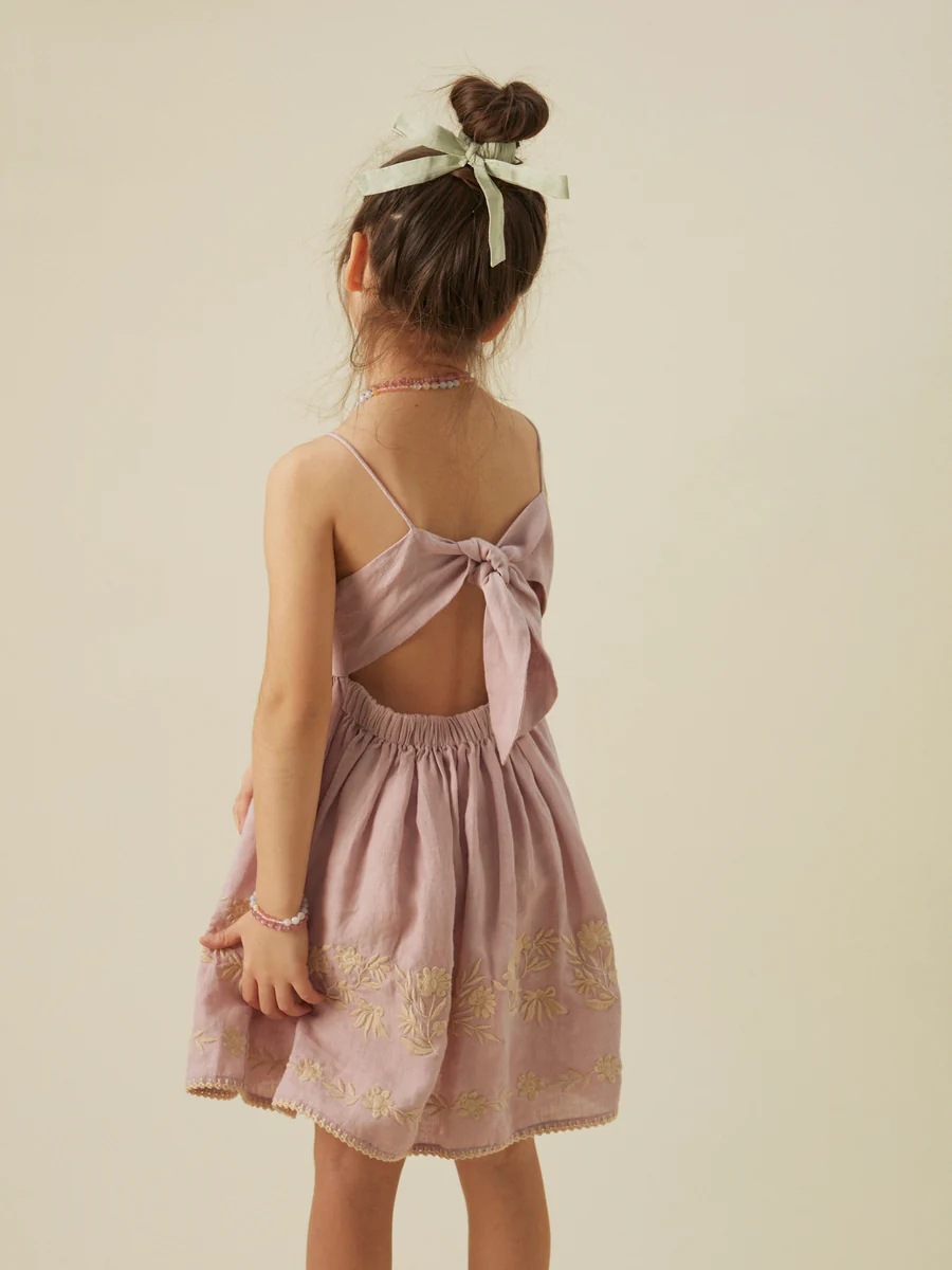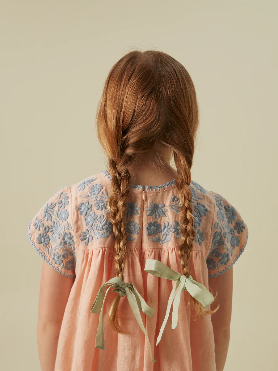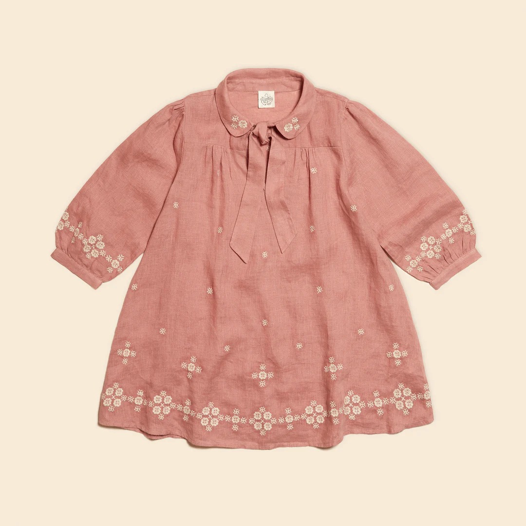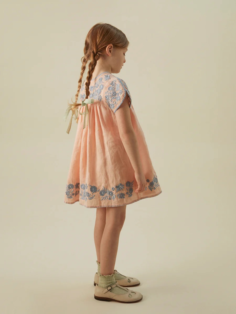 • 복숭아 분말 자수 레이스 업 원피스 [스팟]