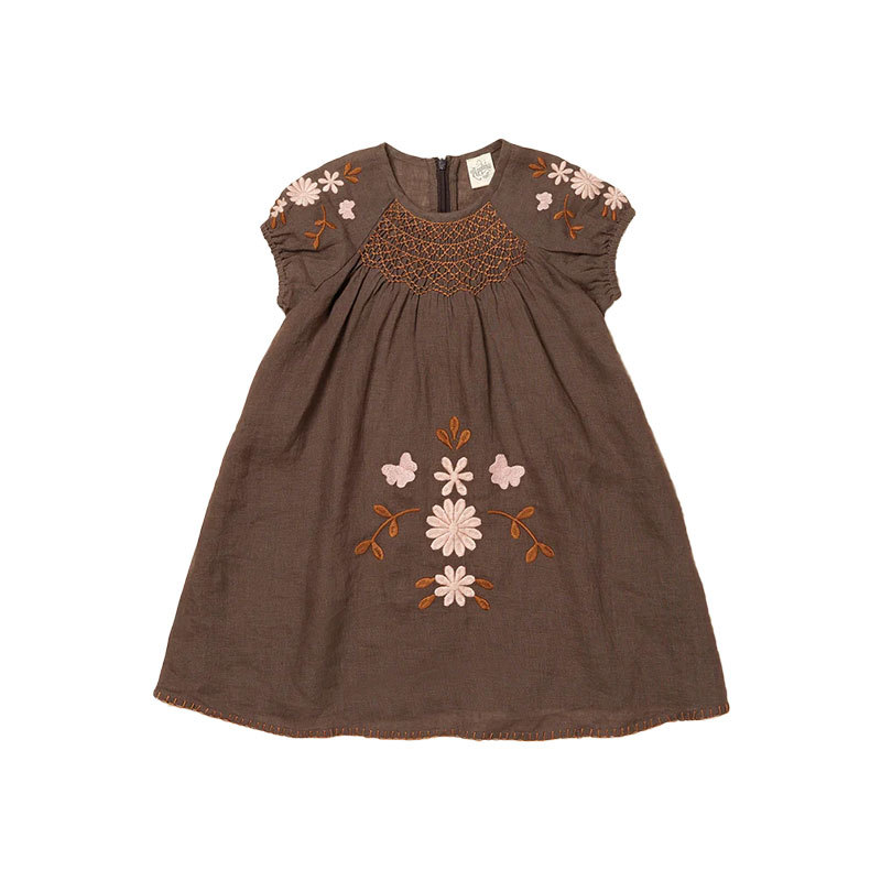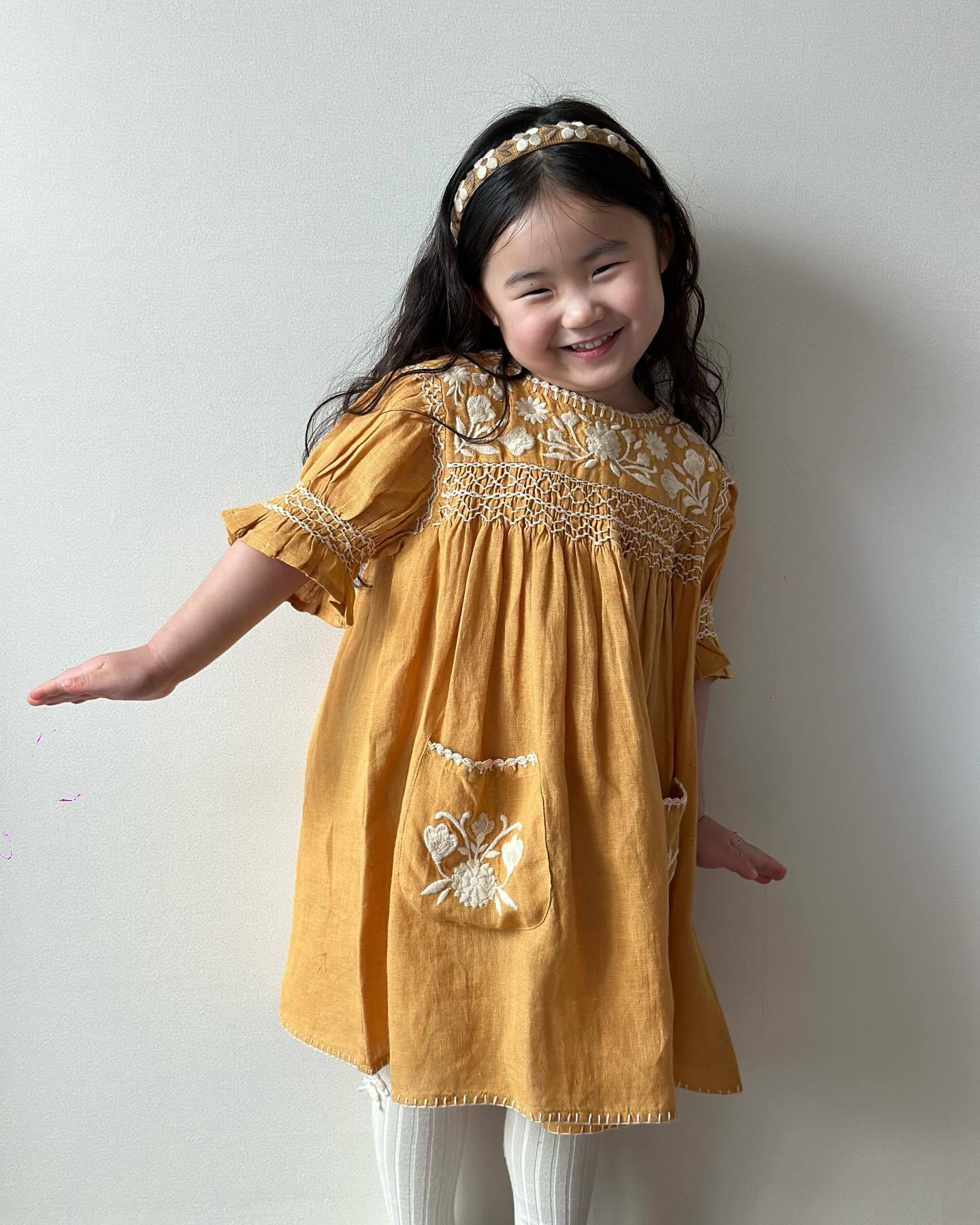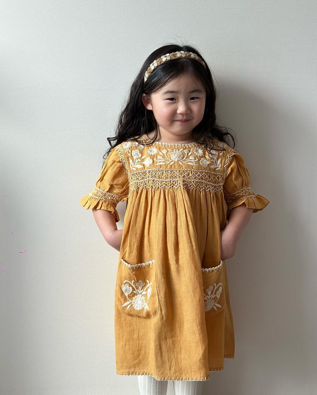 • 다크 브라운 노란색 자수 원피스 [스팟]]