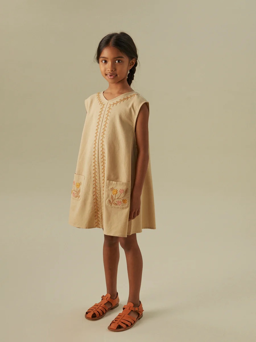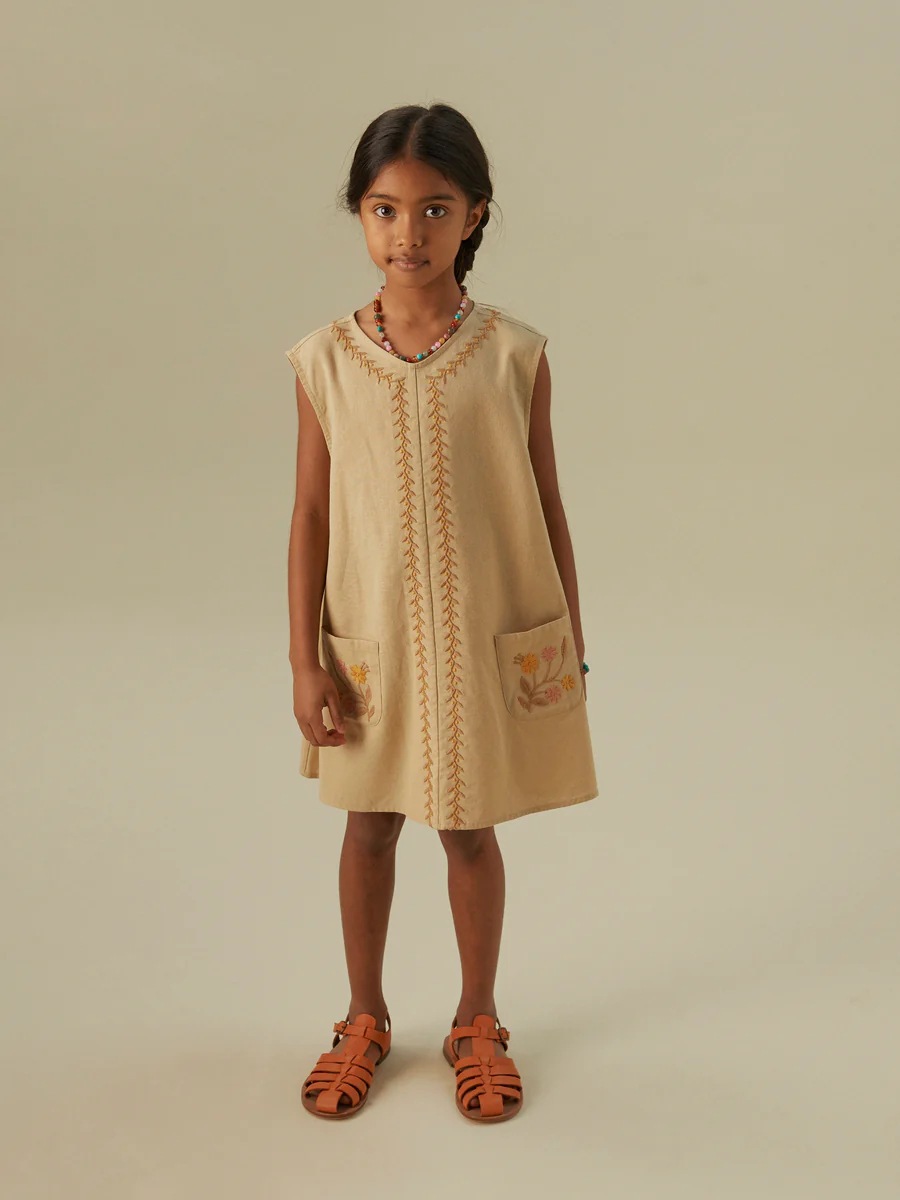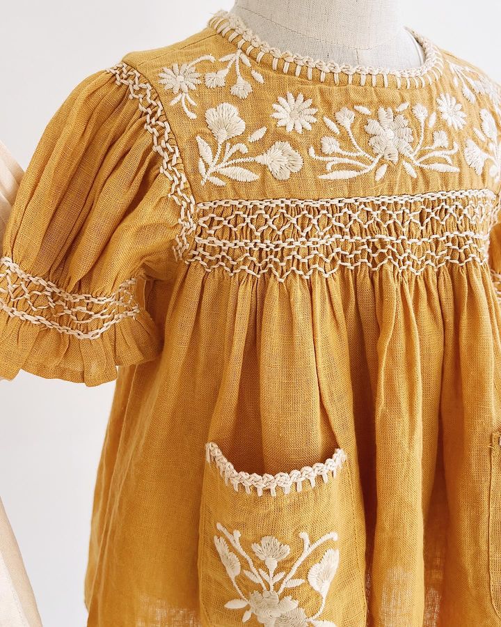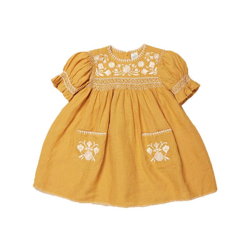 • 다크 브라운 노란색 자수 원피스 [스팟]]