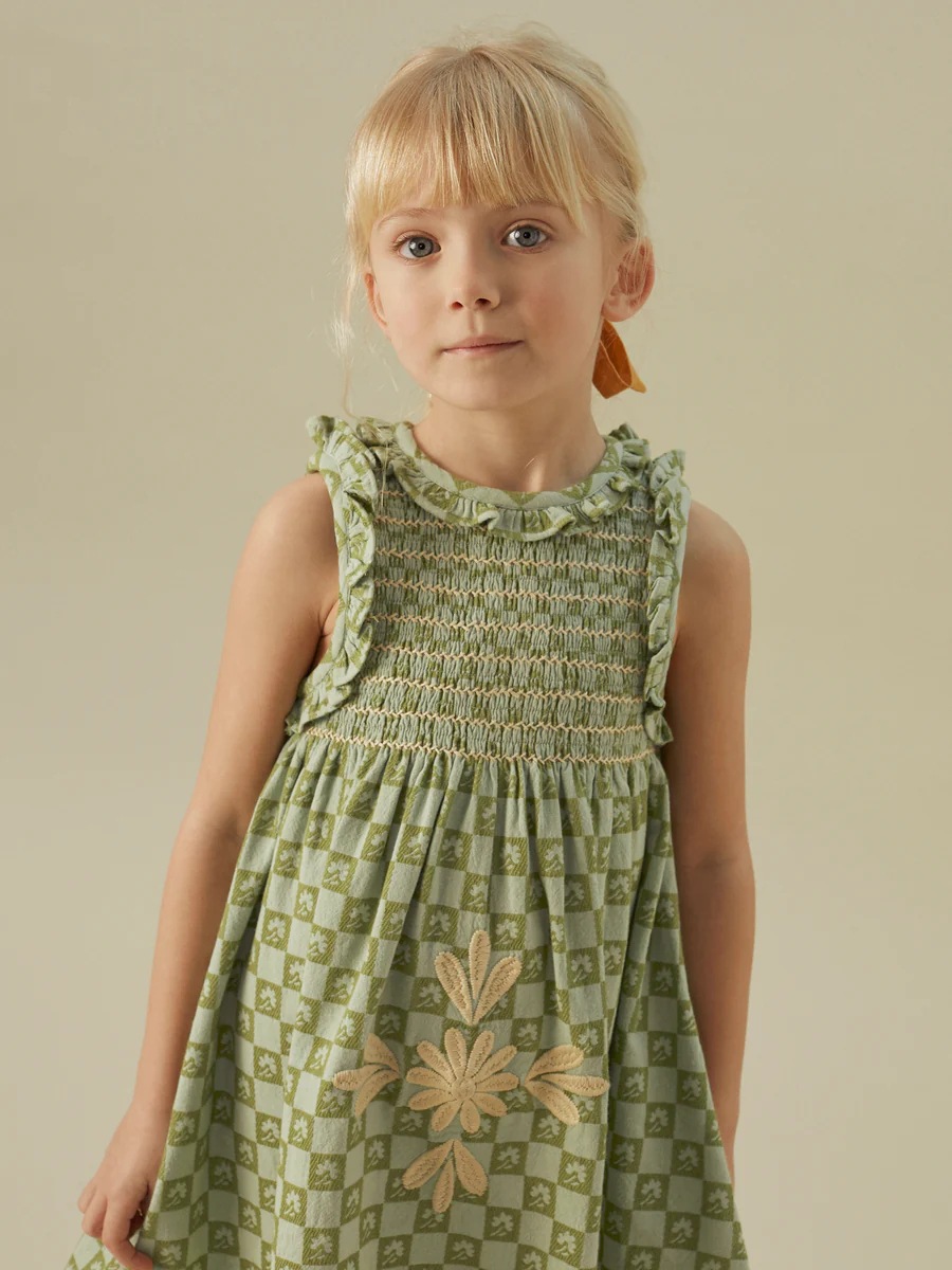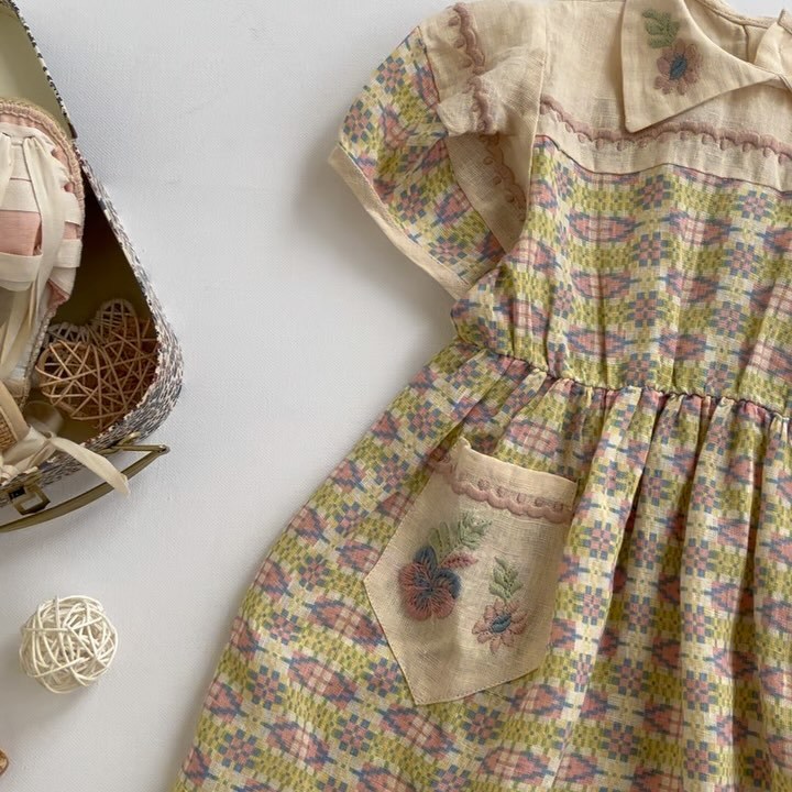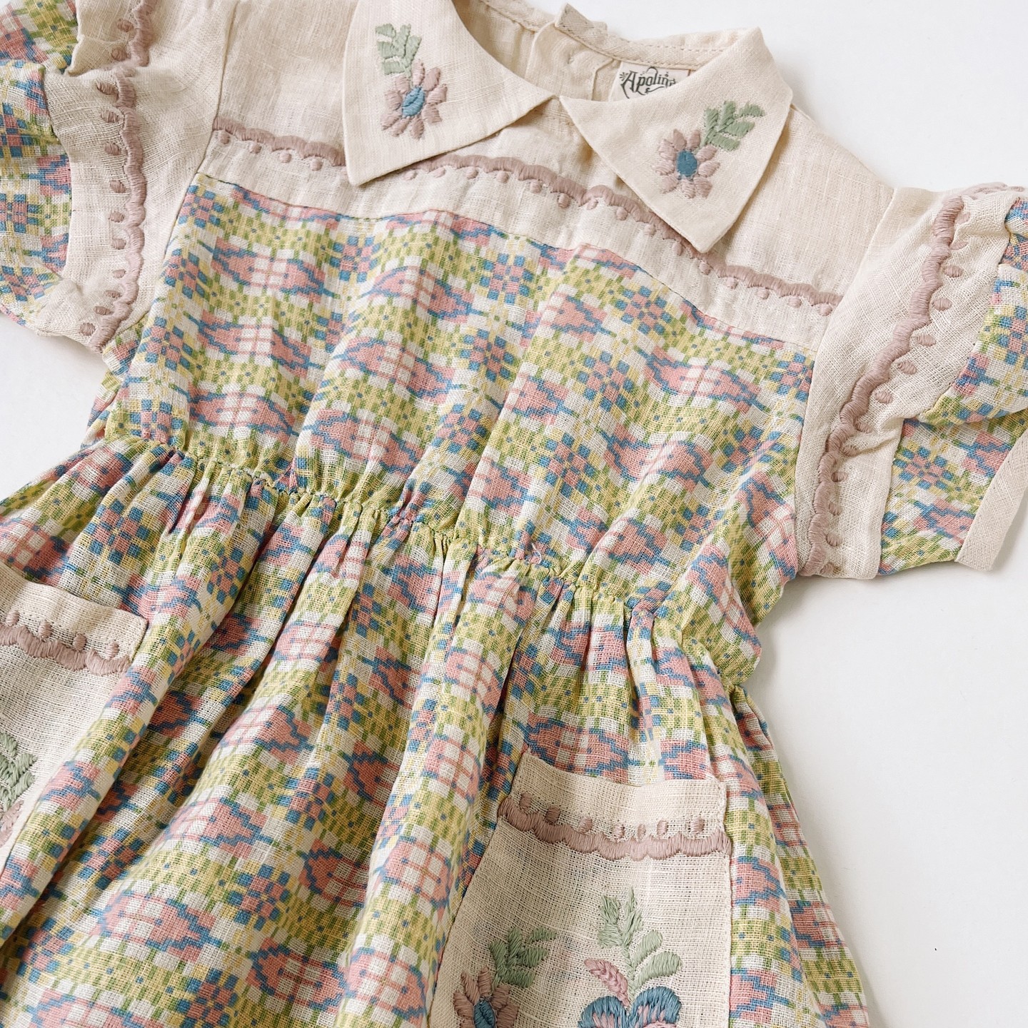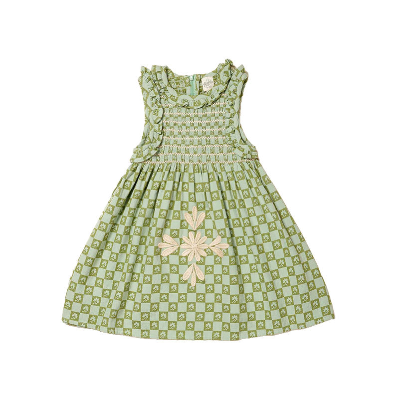 • 녹색 격자 무늬 자수 선 드레스 [스팟]