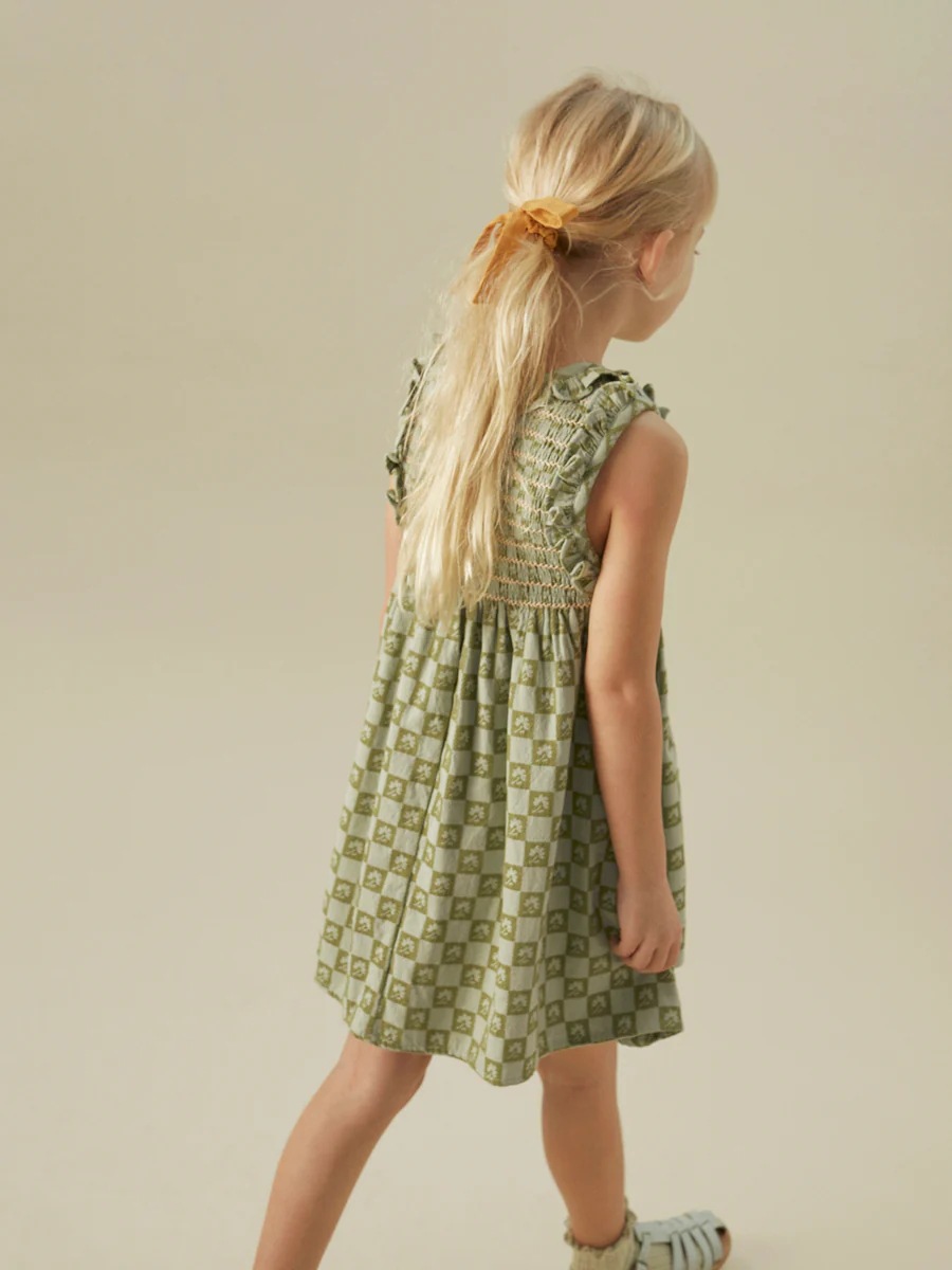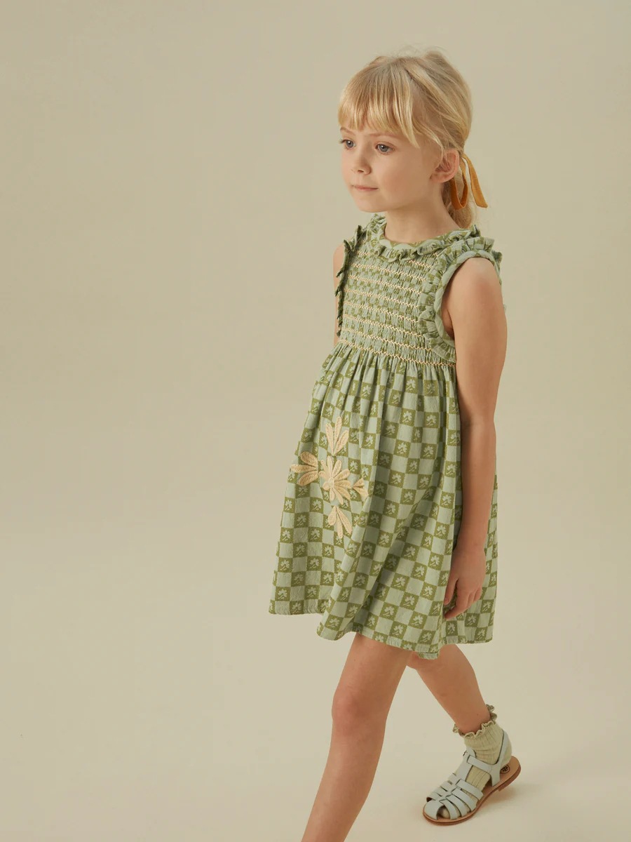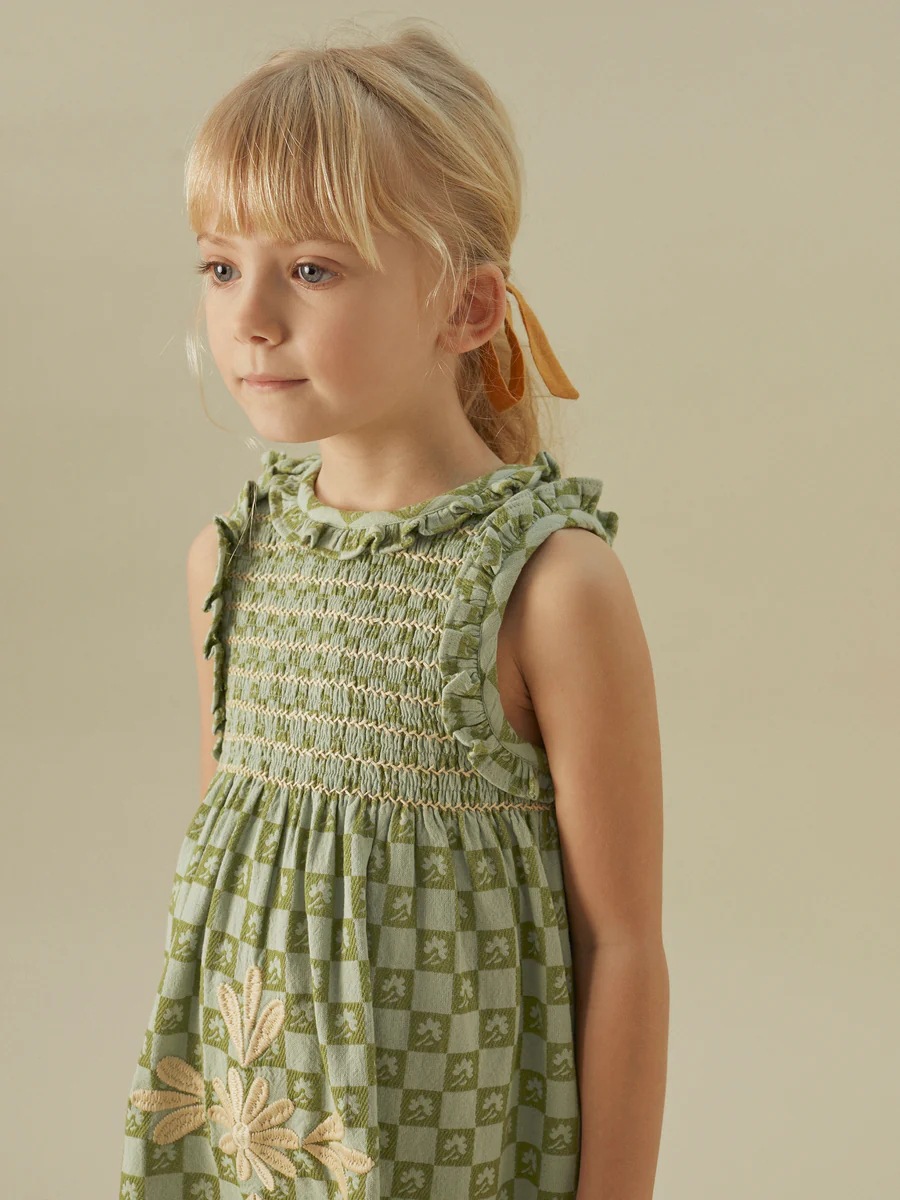 • 녹색 격자 무늬 자수 선 드레스 [스팟]