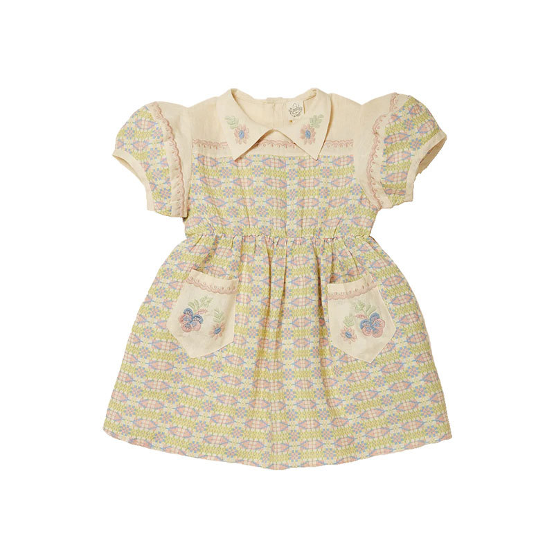 • 컬러 매칭 패턴 자수 원피스 [스팟]