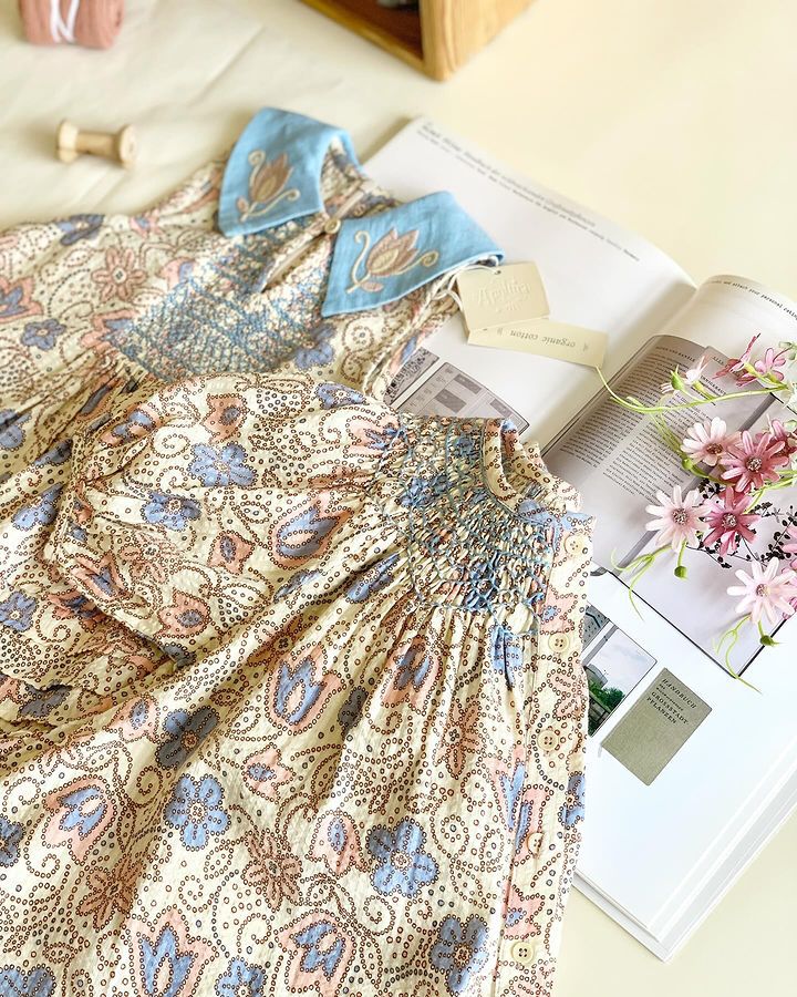 • 연꽃 뿌리 분말 자수 원피스 [스팟]]