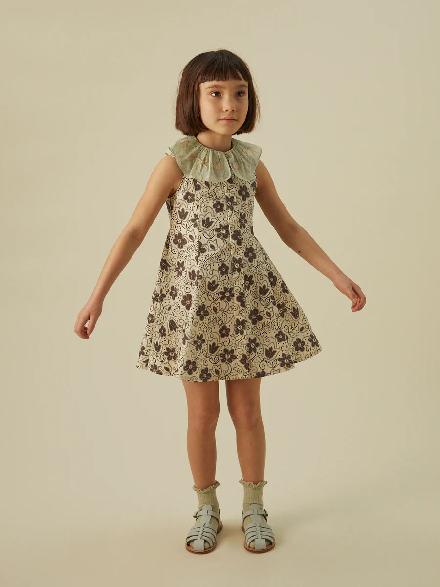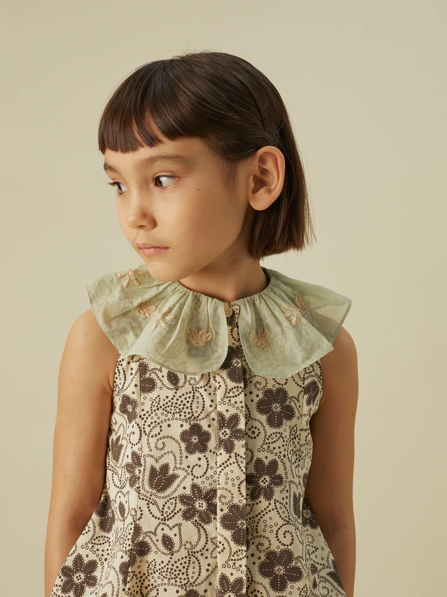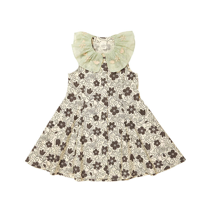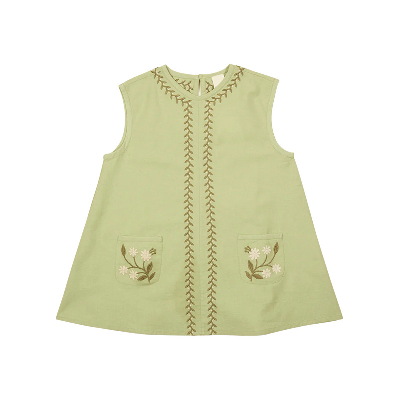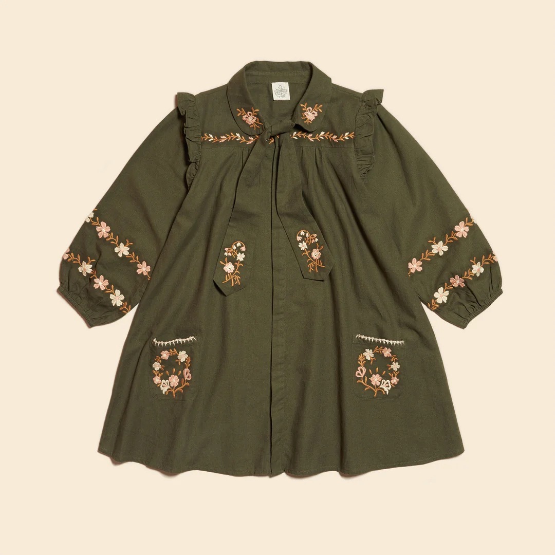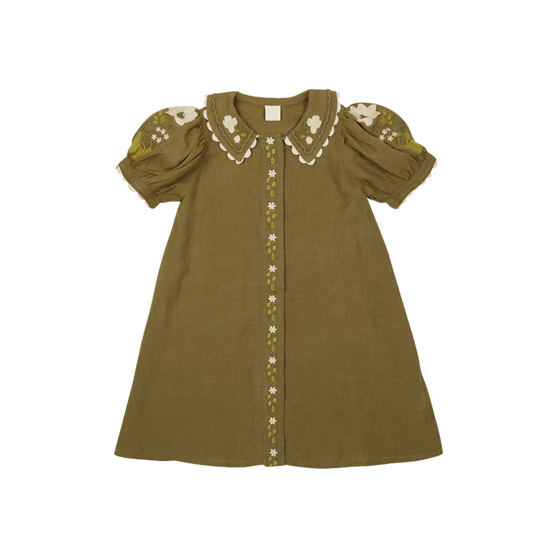 • 올리브 그린 자수 옷깃 원피스 [스팟]