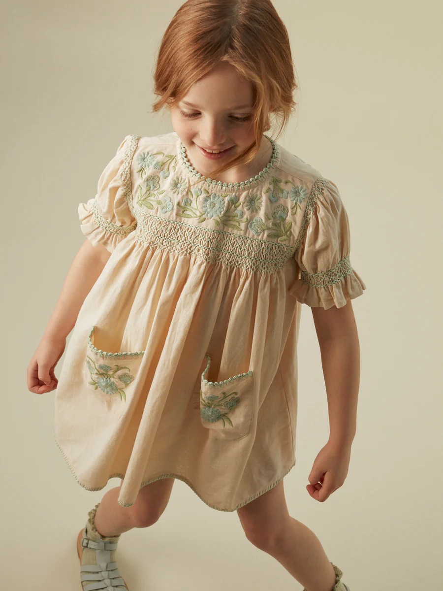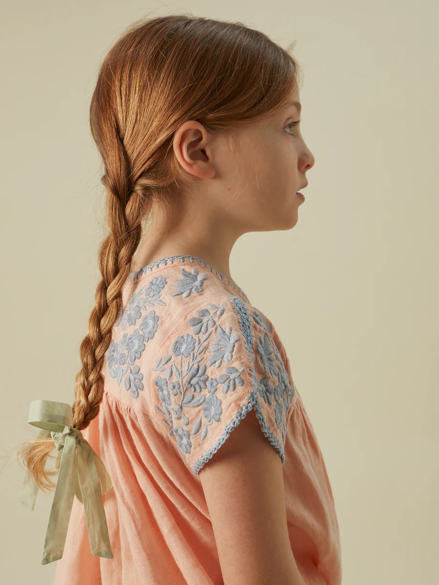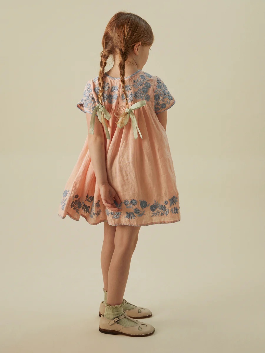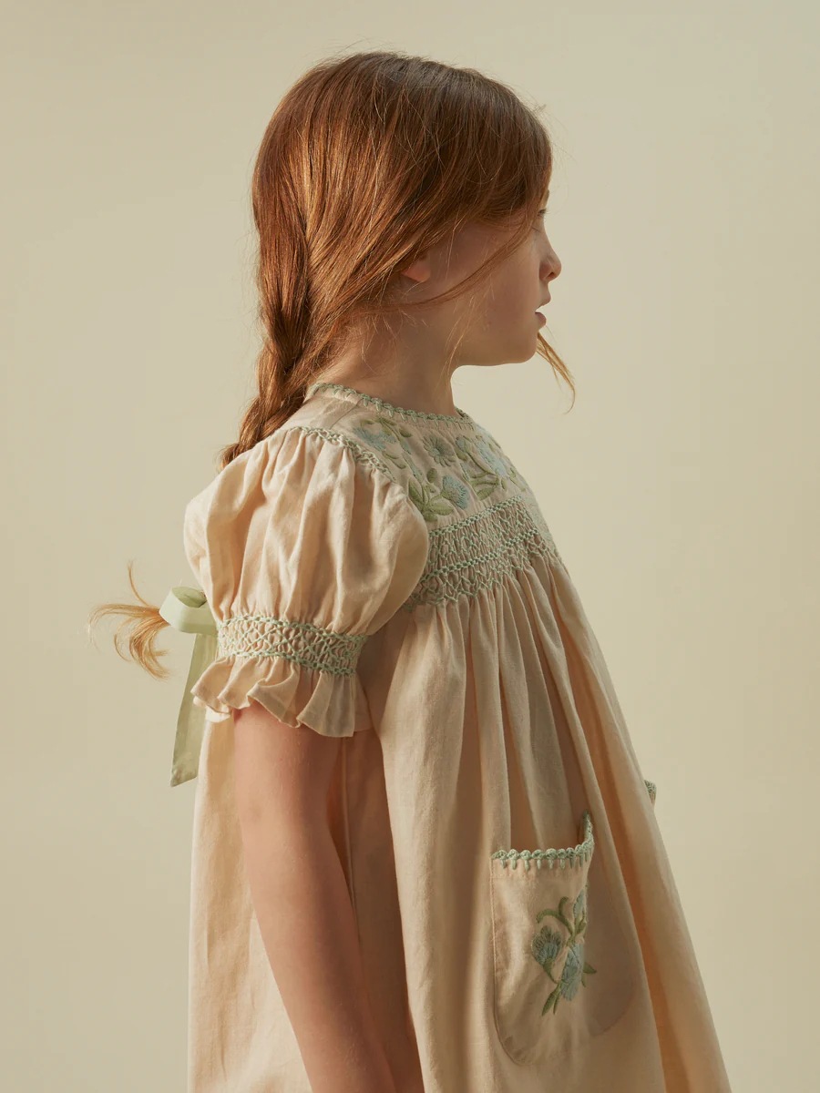 여아 드레스 2025 여름 신상품 전원풍 소녀 고급 자수 드레스 공주 드레스
