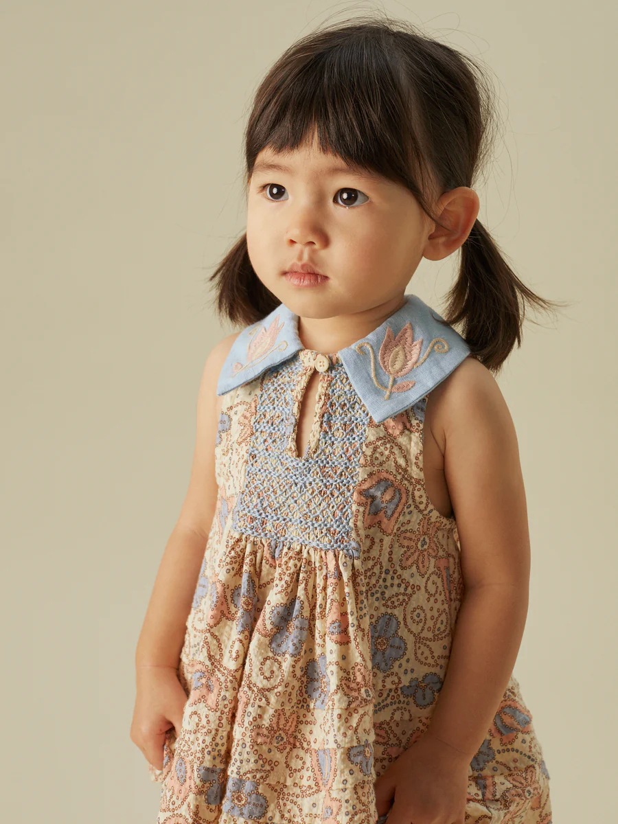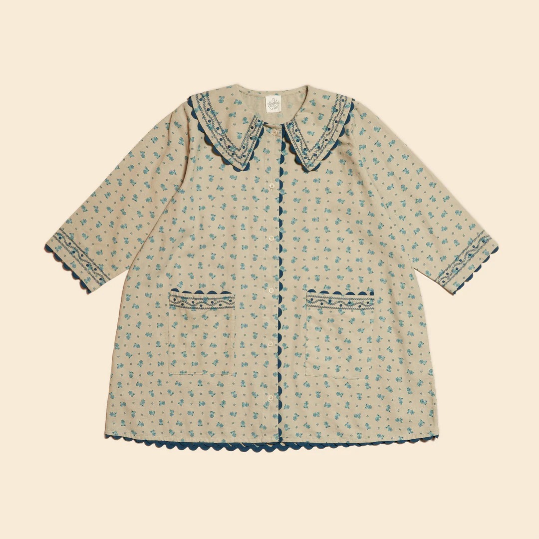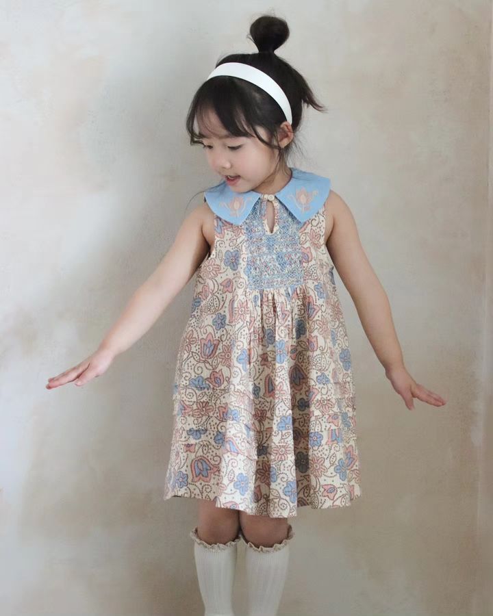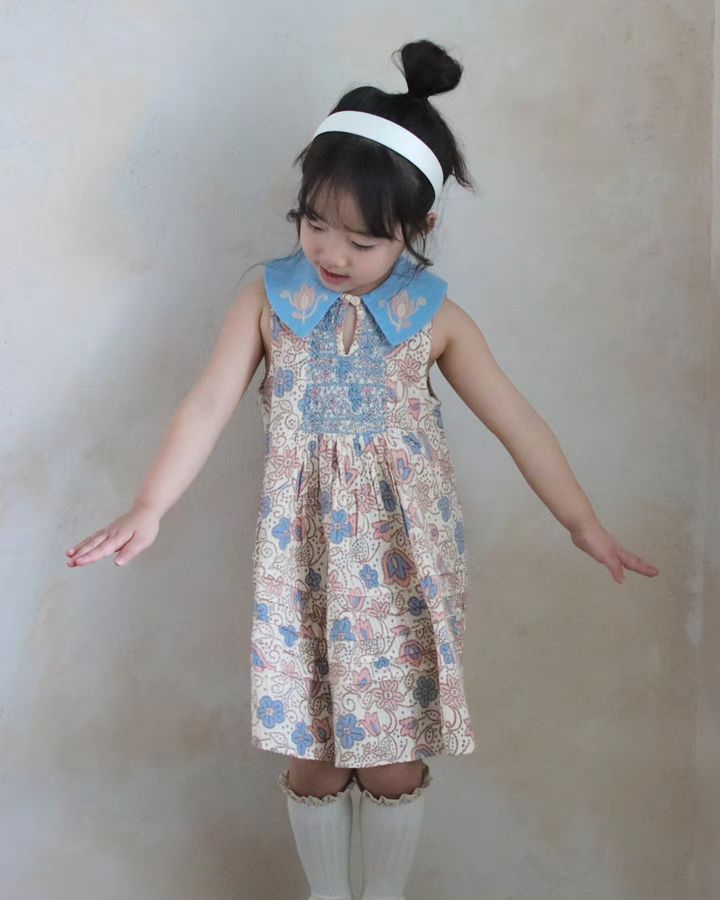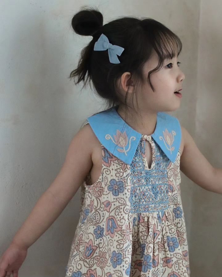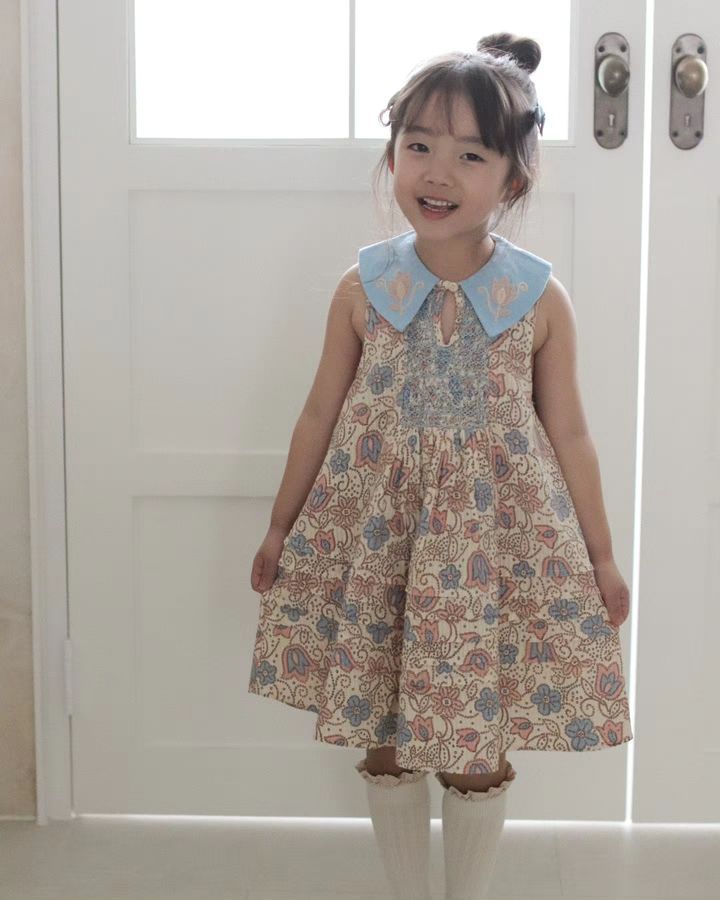 • 라이트 블루 자수 옷깃 원피스 [스팟]]