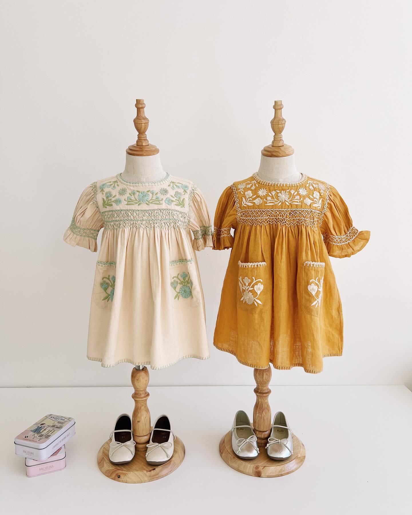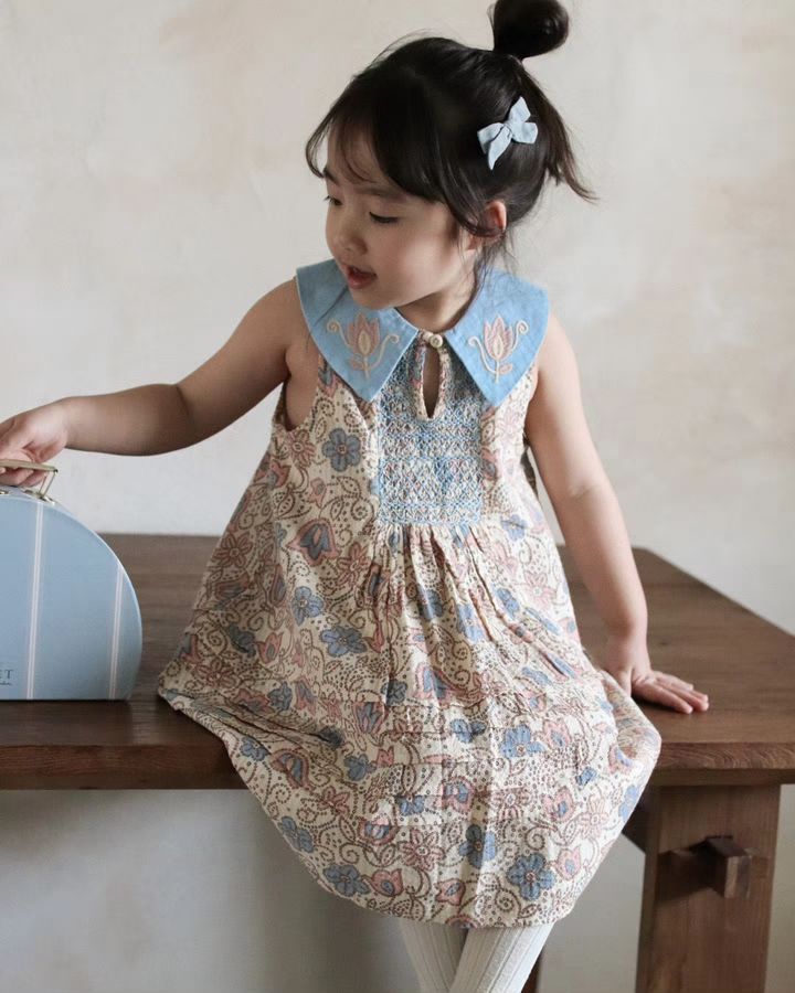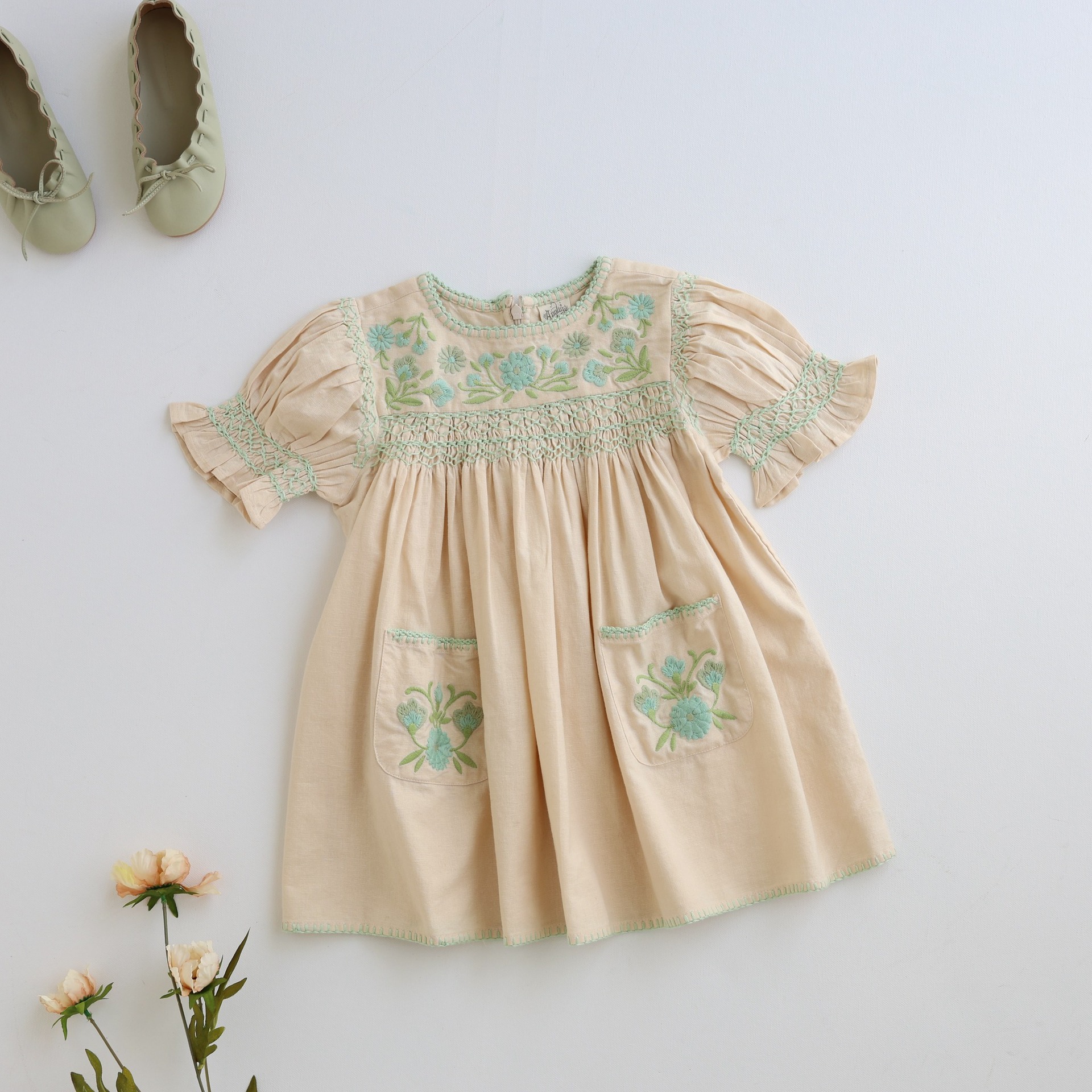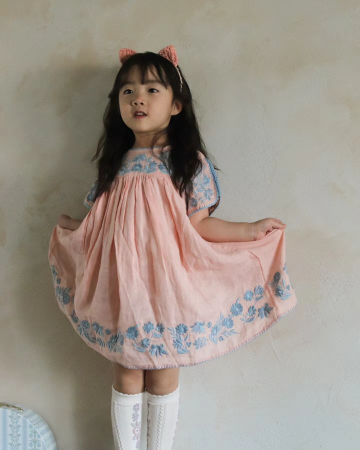 여아 드레스 2025 여름 신상품 전원풍 소녀 고급 자수 드레스 공주 드레스스토어 가기