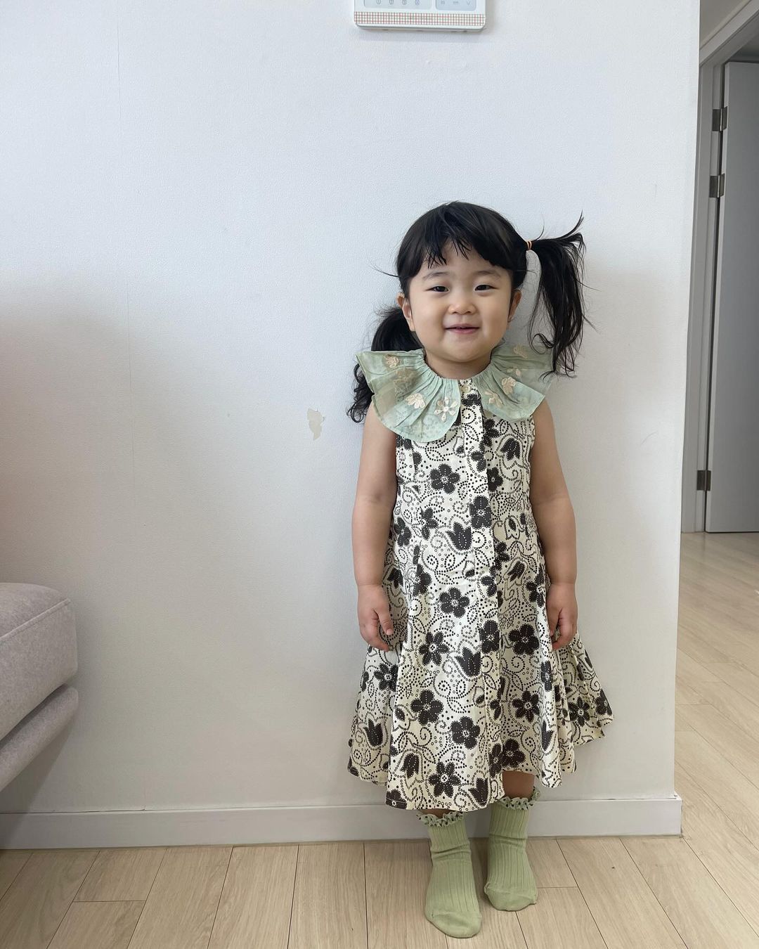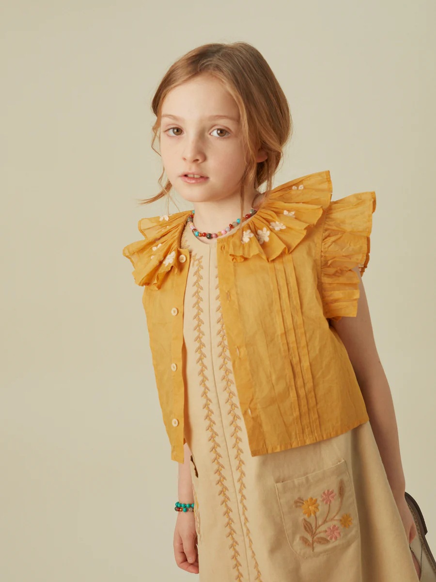 • 카레 컬러 꽃 옷깃 조끼 치마 [스팟]