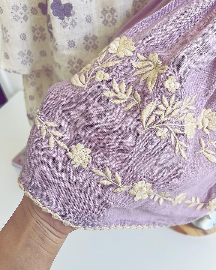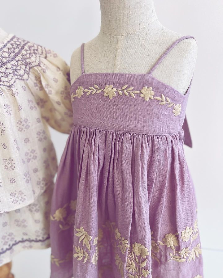 • 멜빵이있는 다로 보라색 자수 스커트 [스팟]
