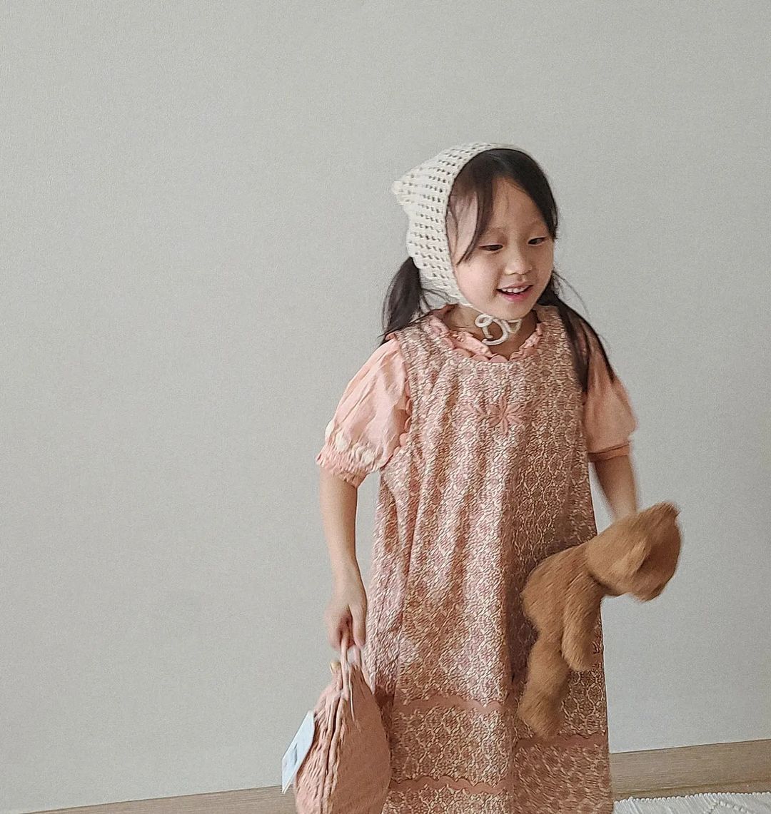 • 라이트 핑크 자수 꽃 조끼 스커트 [스팟]]