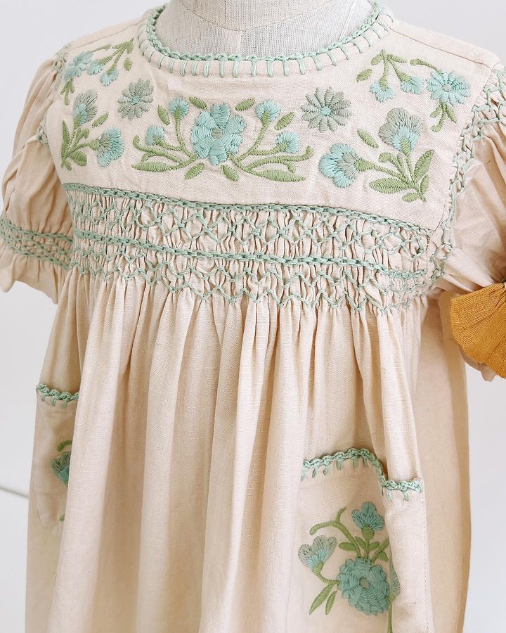 • 오프 화이트 대비 자수 원피스 [스팟]]