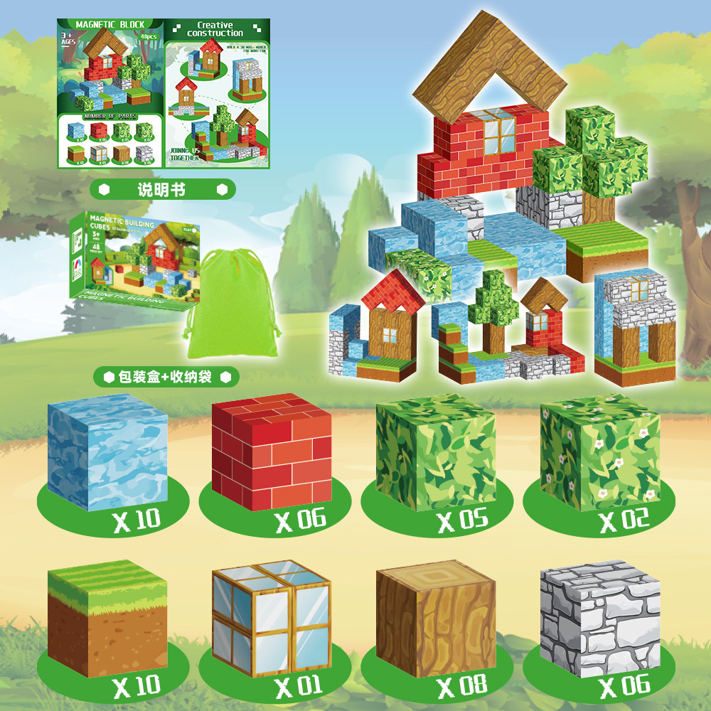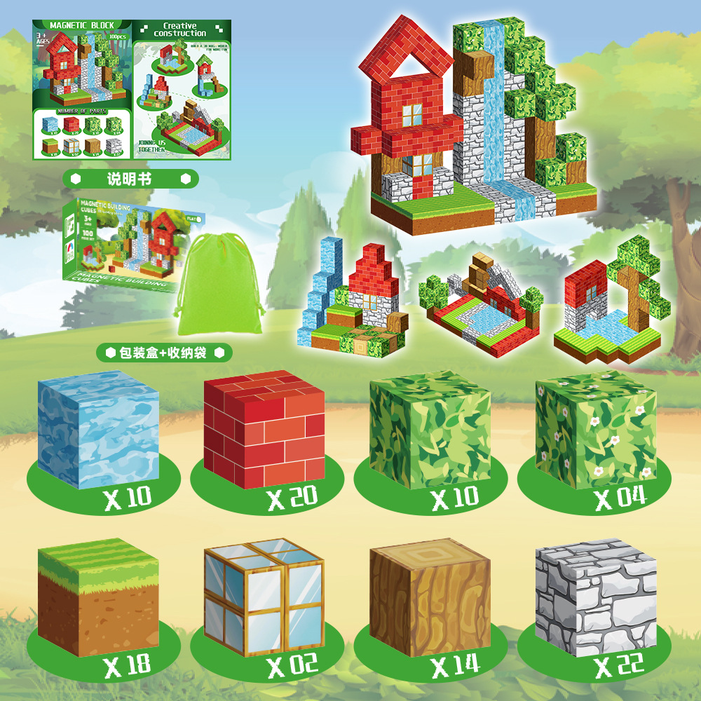 국경 간 자기 상자 강한 자기 기하학적 빌딩 블록 세계 게임 주변 어린이 퍼즐 미니 모델 장난감 만들기스토어 가기