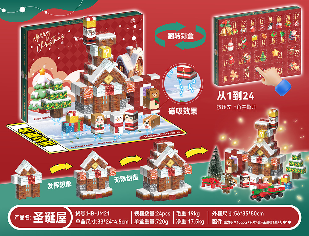 • 2.0cm 크리스마스 하우스 자석 블록 블라인드 박스 [자체 디자인 (1세트당 5-6개 블록)]