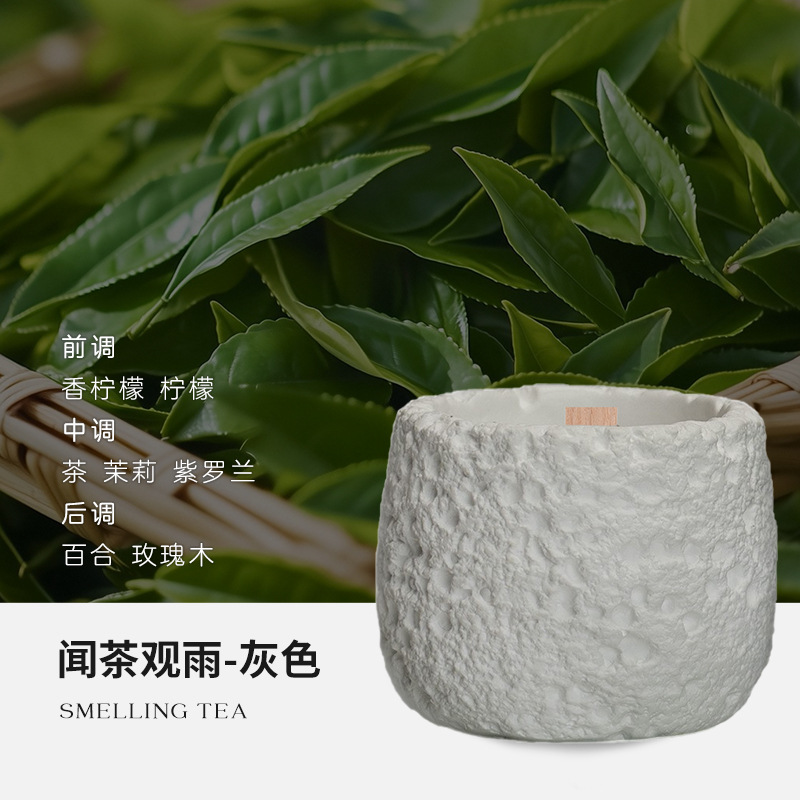 • 회색 찻잔 - 차를 맡으며 비를 감상하다