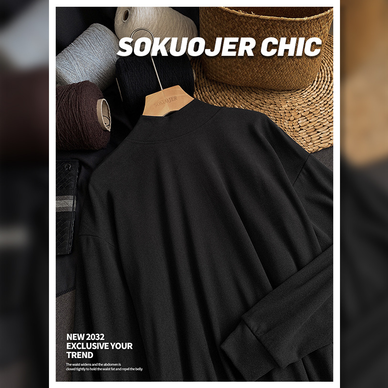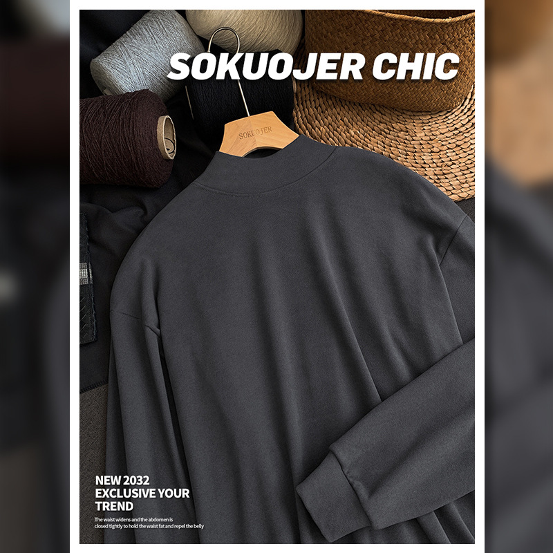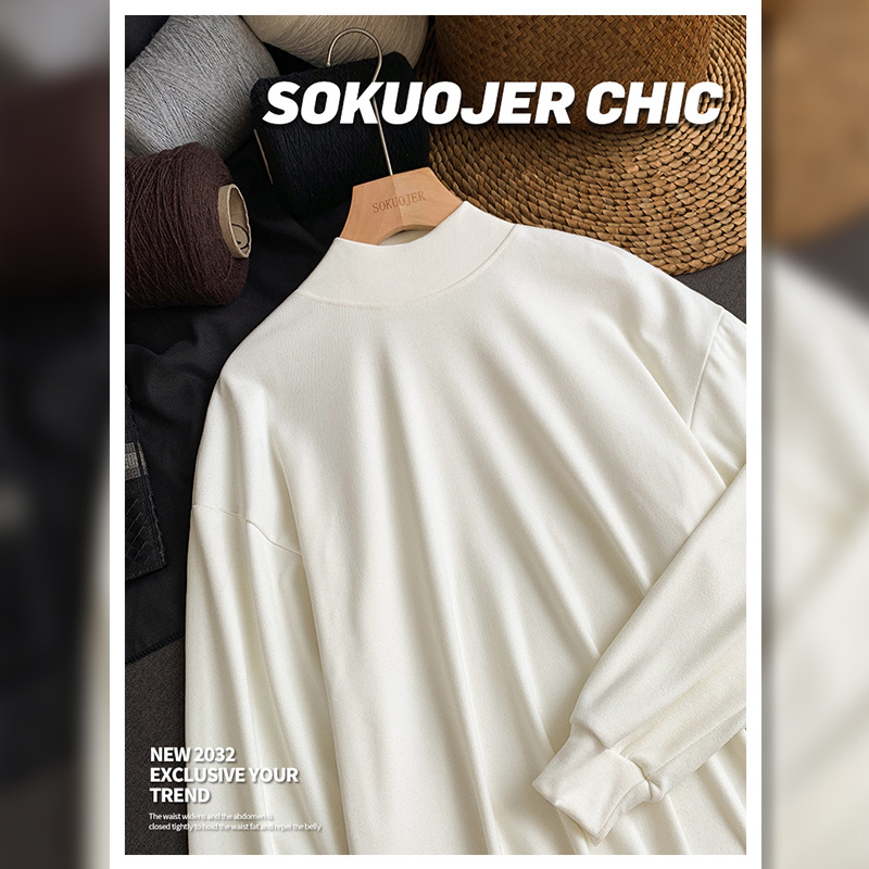 가을 겨울 남성용 고급 독일 벨벳 바닥 셔츠, 하이 칼라, 기모 대형 루즈 긴팔 티셔츠, 두꺼운 따뜻한 옷스토어 가기
