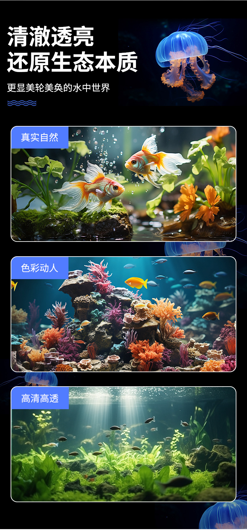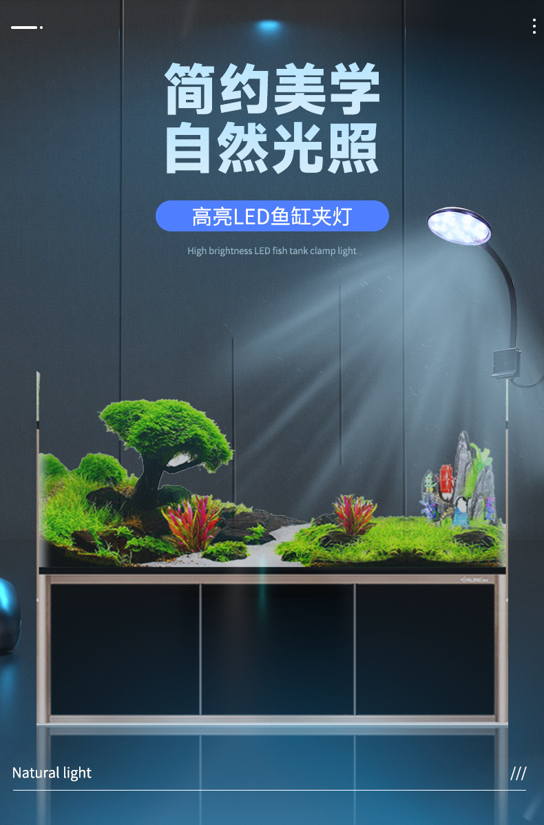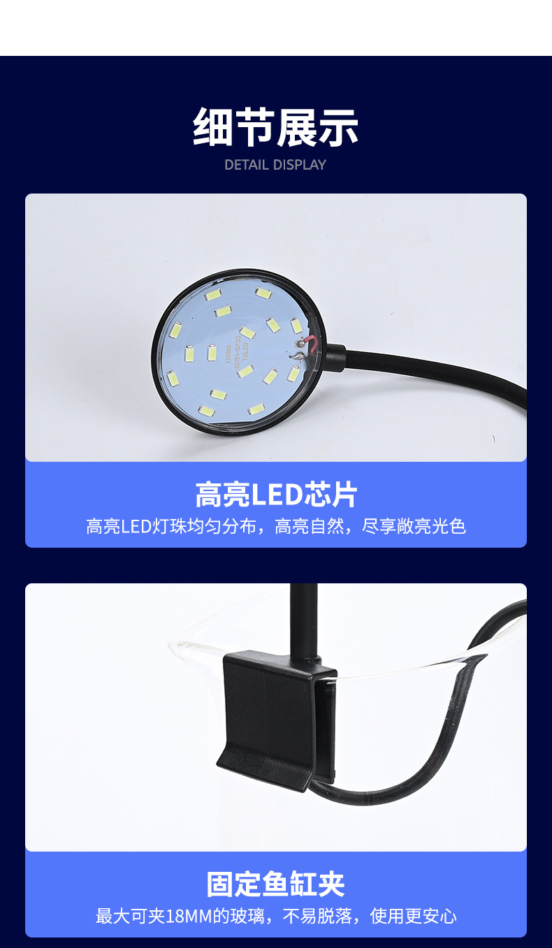 어항 스포트라이트, 소형 어항 조명, 클립형 조명, 수초 조명, LED 조명, 디밍 가능 수족관 보조 조명, 블루라이트, 색상 강화, USB스토어 가기