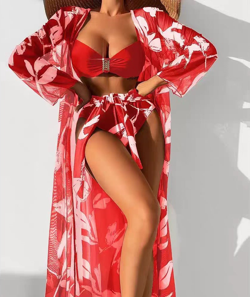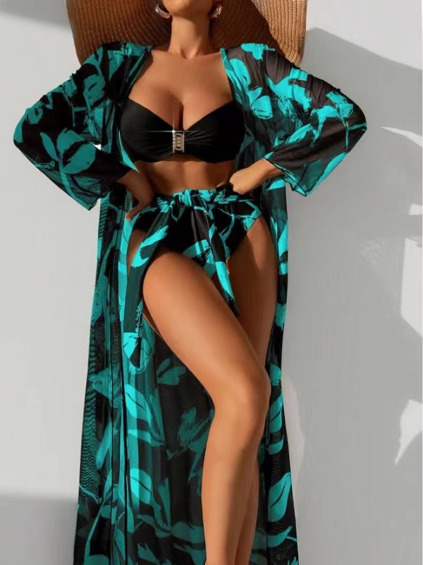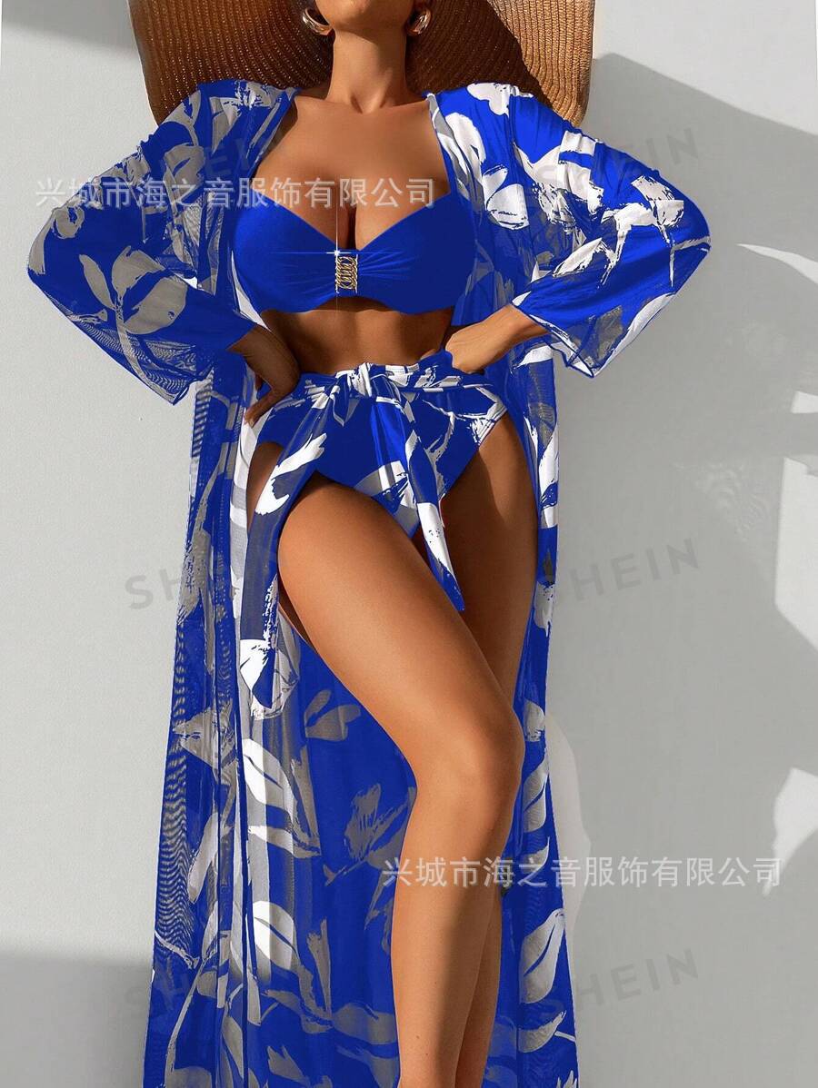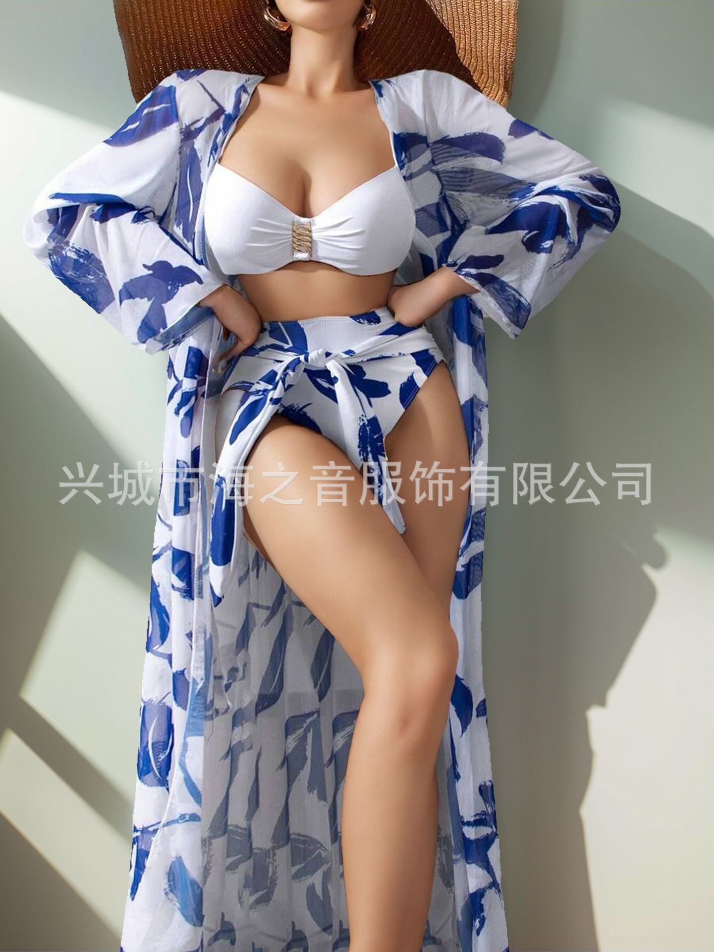 국경 간 수영복 3 피스 여성 비키니 긴 셔츠 높은 허리 대외 무역 새로운 2024 유럽 및 미국 수영복 분할 비키니스토어 가기